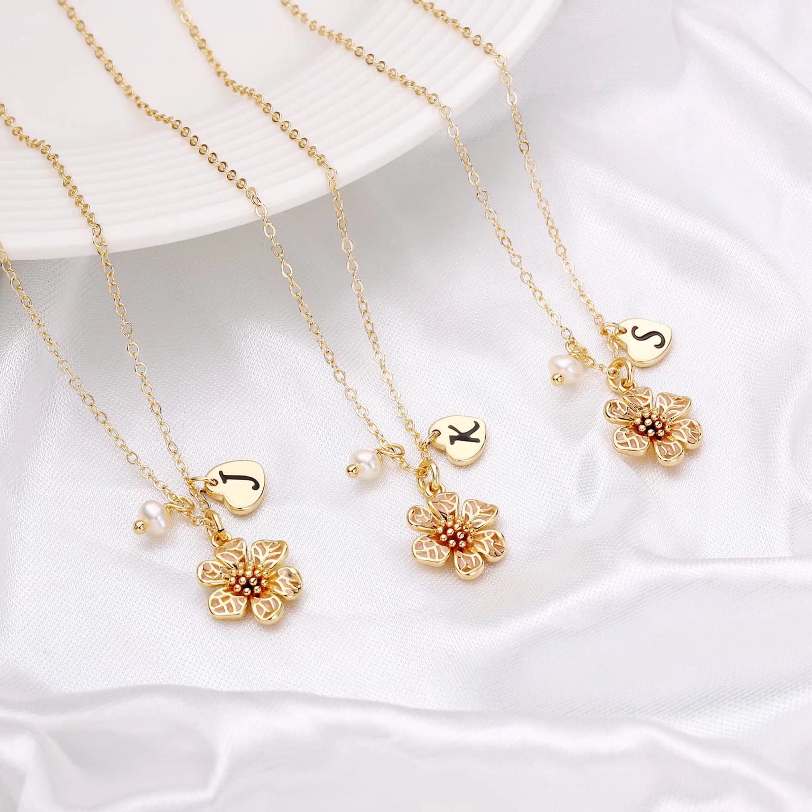 Turandoss Flower Girl Gifts, Heart Initial Pearl A Necklace Flower Girl Proposal Dainty Letter Necklace Gifts From Bride, Bridesmaid Wedding Christmas Gift for Girls Flowers Necklaces