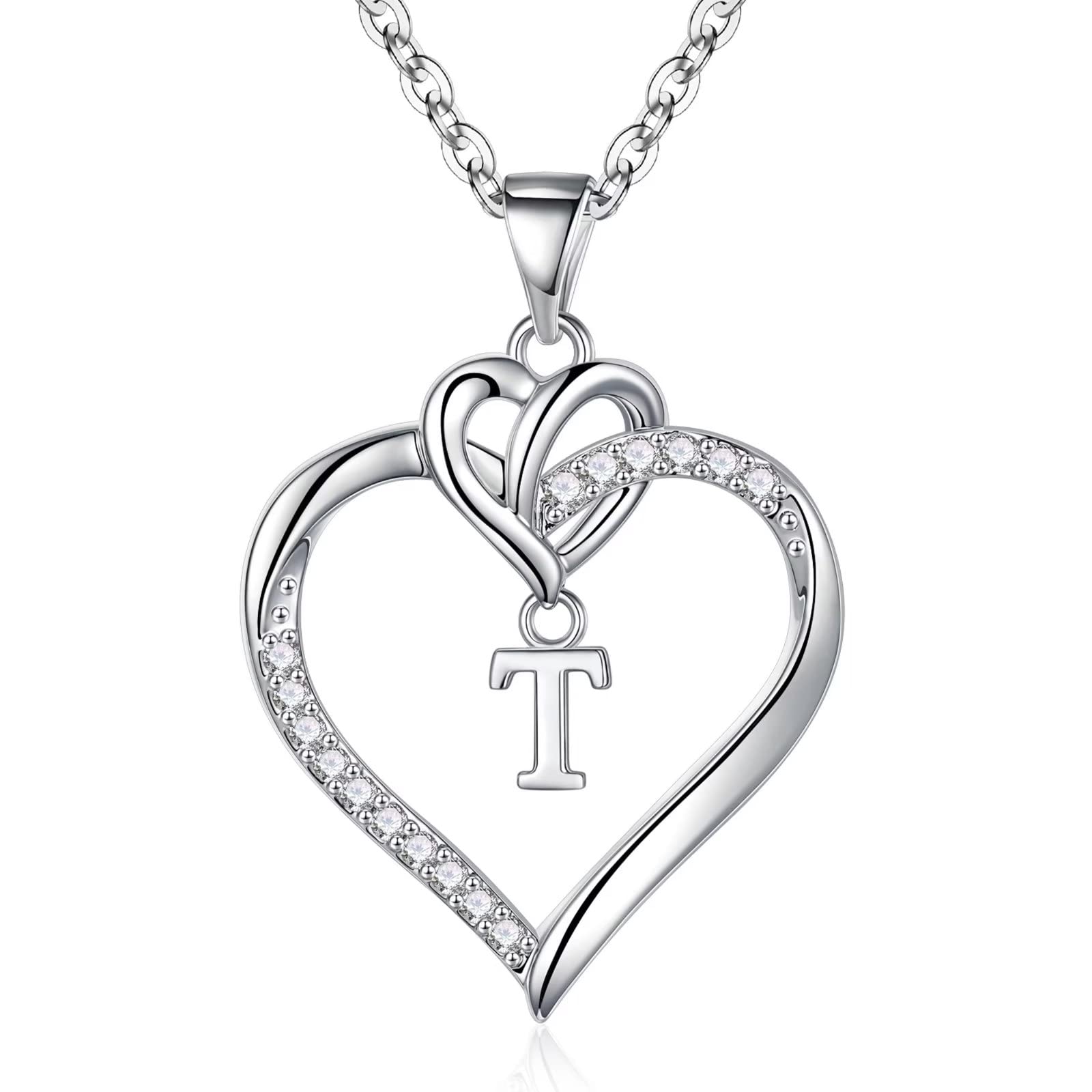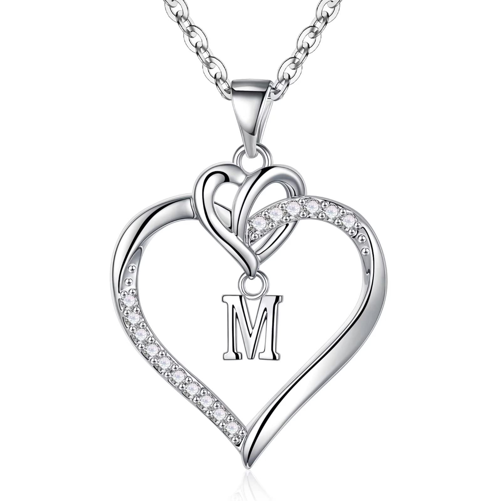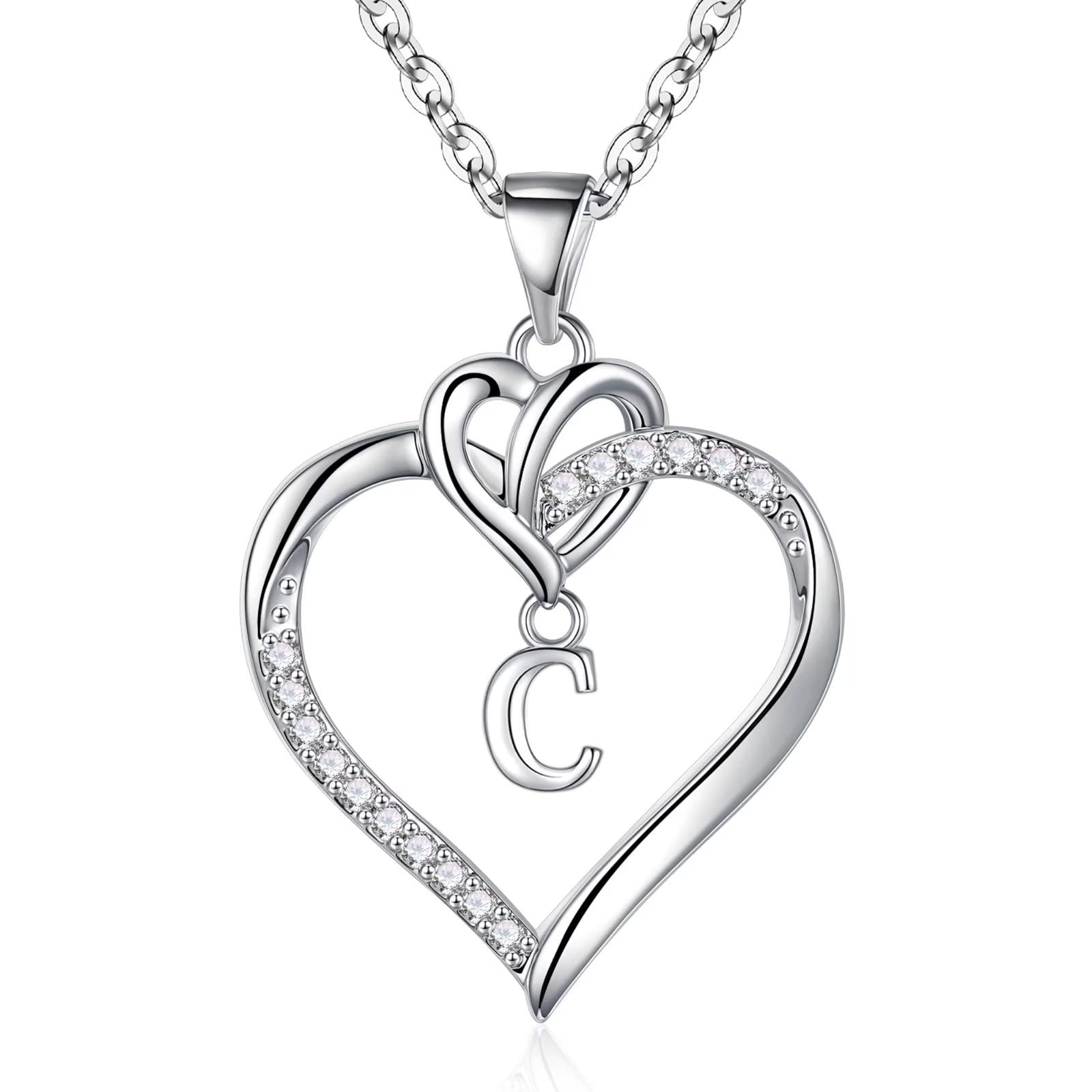Turandoss 14K White Gold Plated Cz Initial Love Heart Pendant Necklaces for Women Girls Letter A-Z Pendant Chain Graduation Wedding Birthday Jewelry Gifts for Teen Kids Mom Wife Bride Age