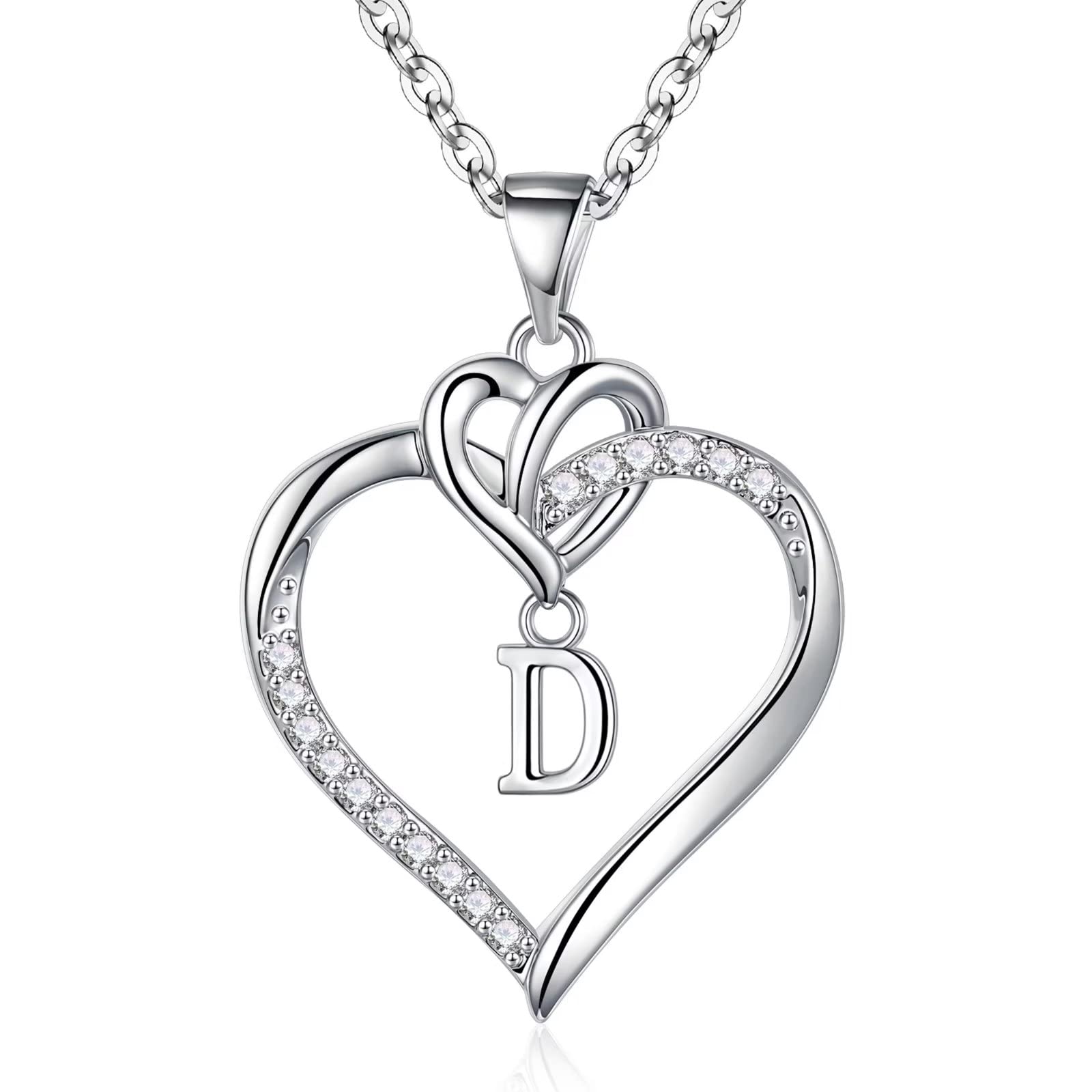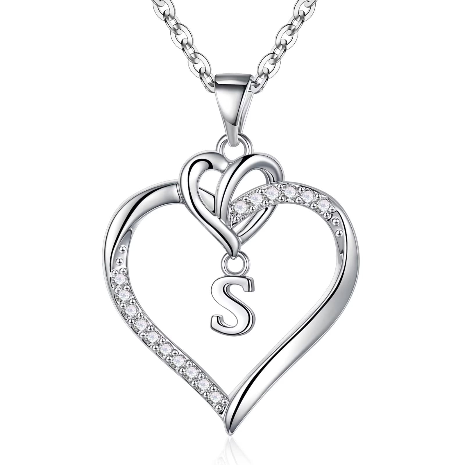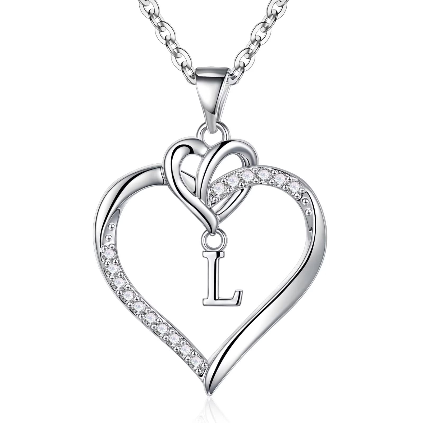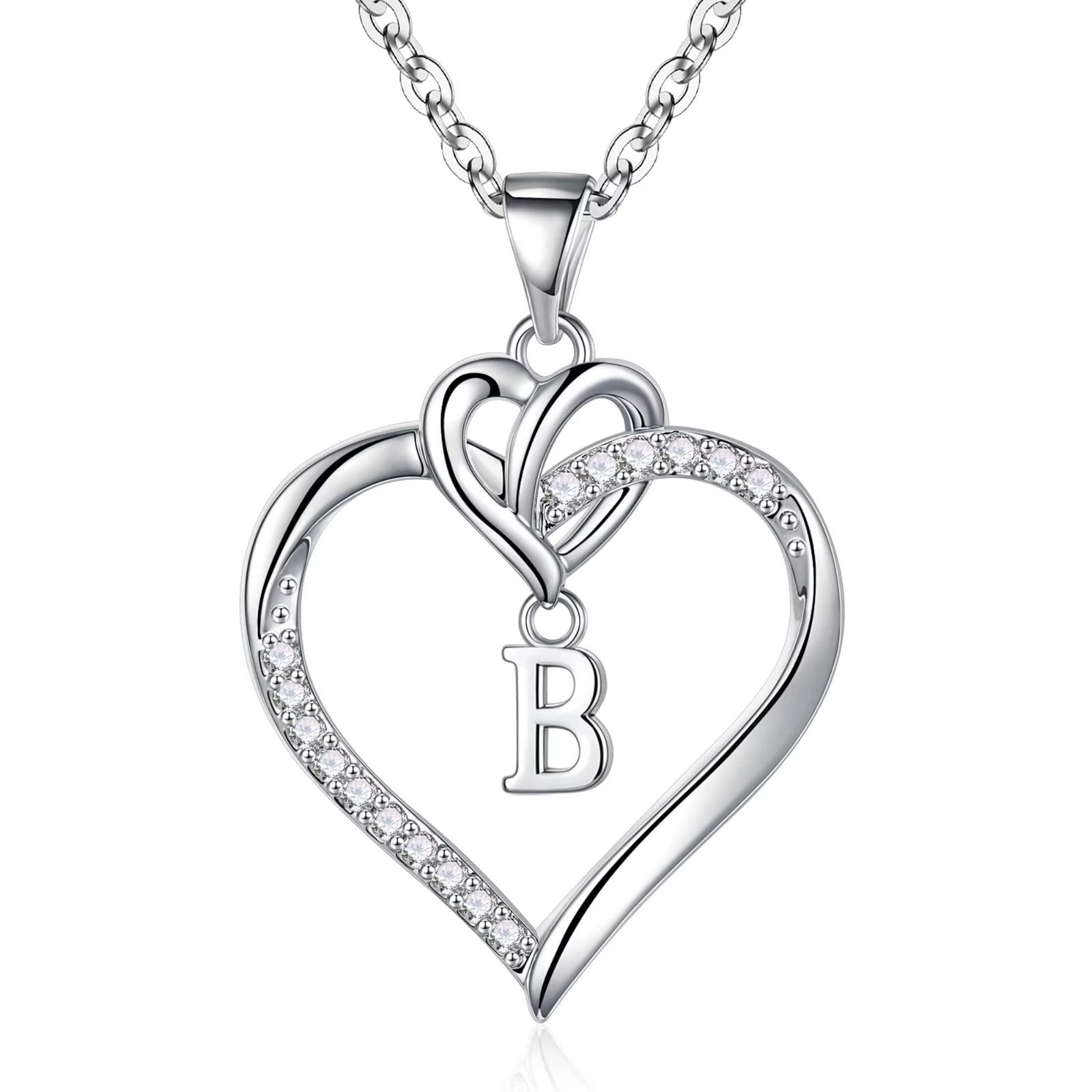 Turandoss 14K White Gold Plated Cz Initial Love Heart Pendant Necklaces for Women Girls Letter A-Z Pendant Chain Graduation Wedding Birthday Jewelry Gifts for Teen Kids Mom Wife Bride Age