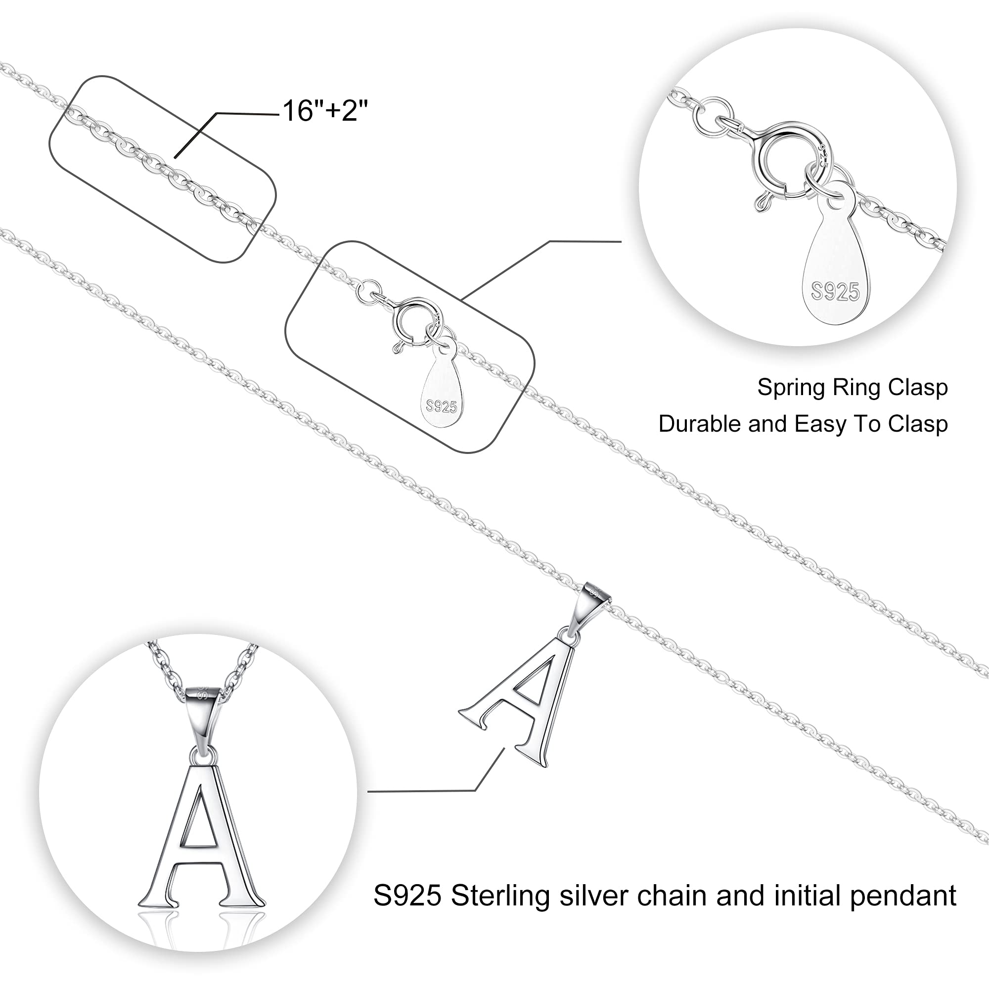 Turandoss S925 Sterling Silver Initial Necklaces for Women Girls, Dainty Hypoallergenic Tiny Letter Initial Pendant Necklaces for Women, Trend Jewelry Birthday Gifts for Women Girls Fashion