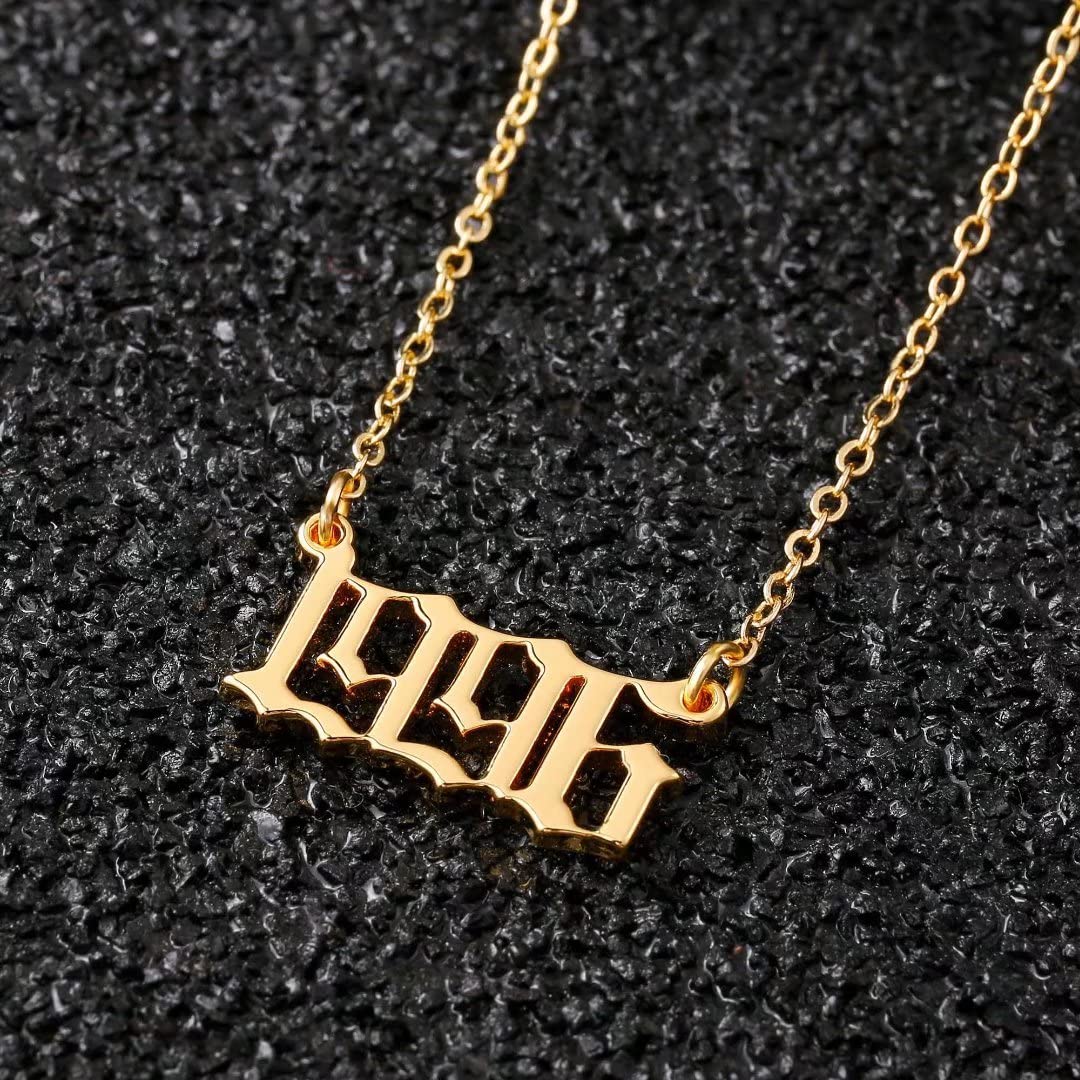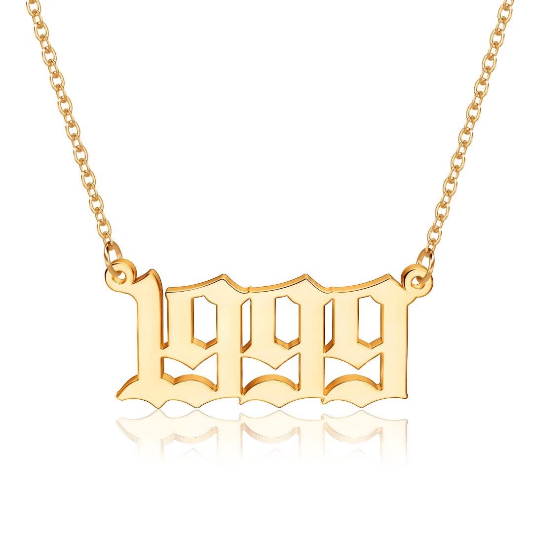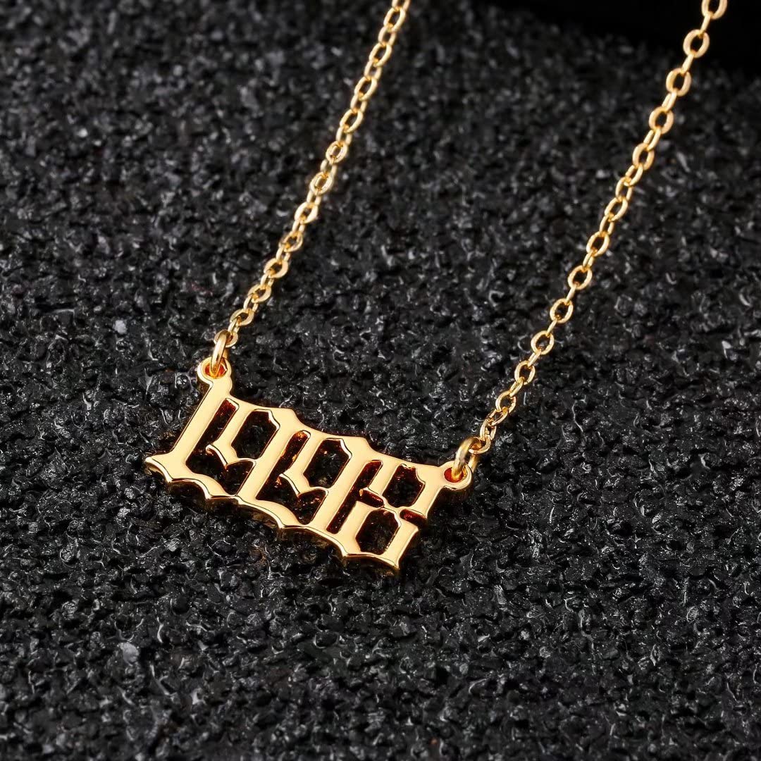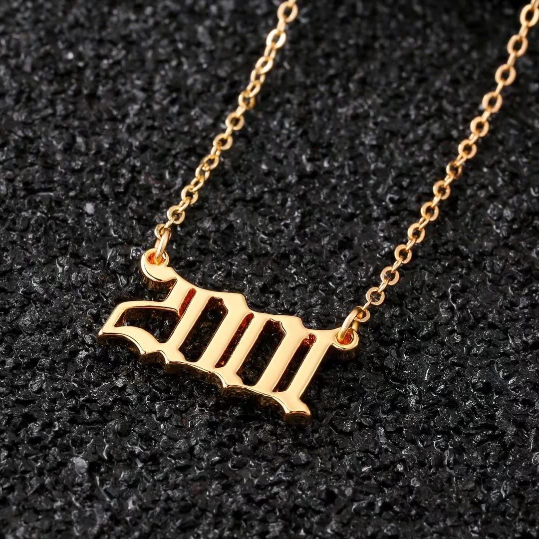 Turandoss 2000 Necklace Birth Year Necklace, Teen Girls Gifts Old English Birth Year Number Pendant 14K Gold Plated Necklace Gifts for Women Birthday Anniversary Friends Jewelry