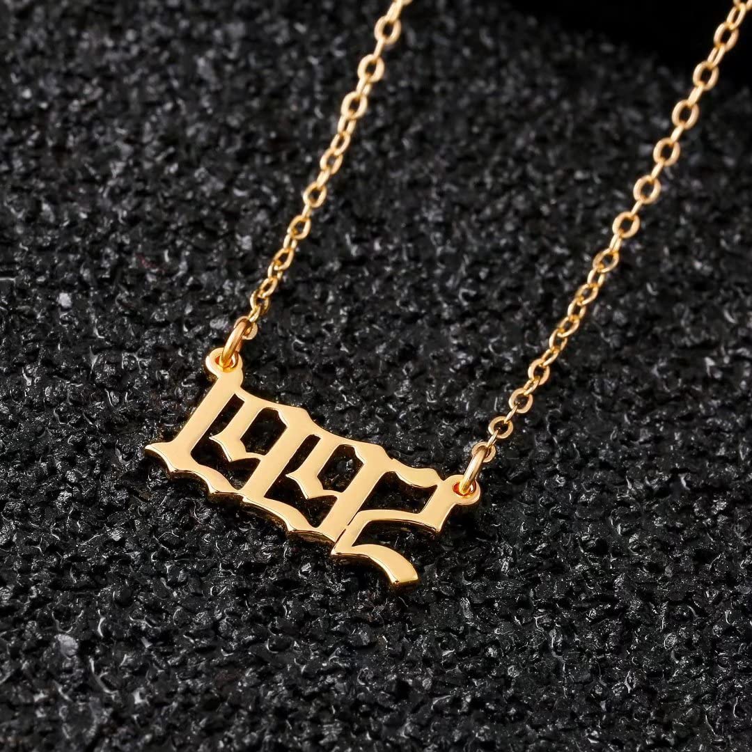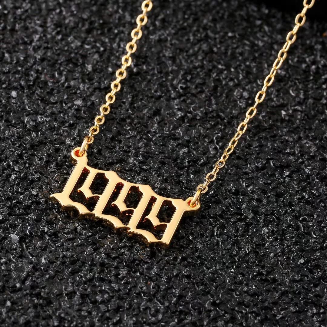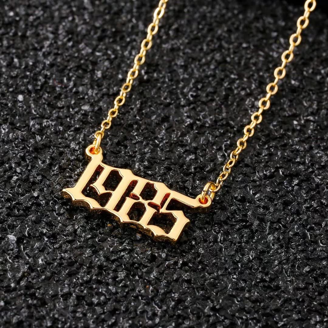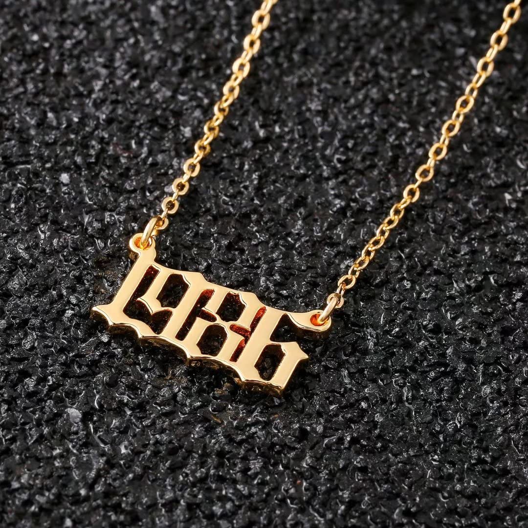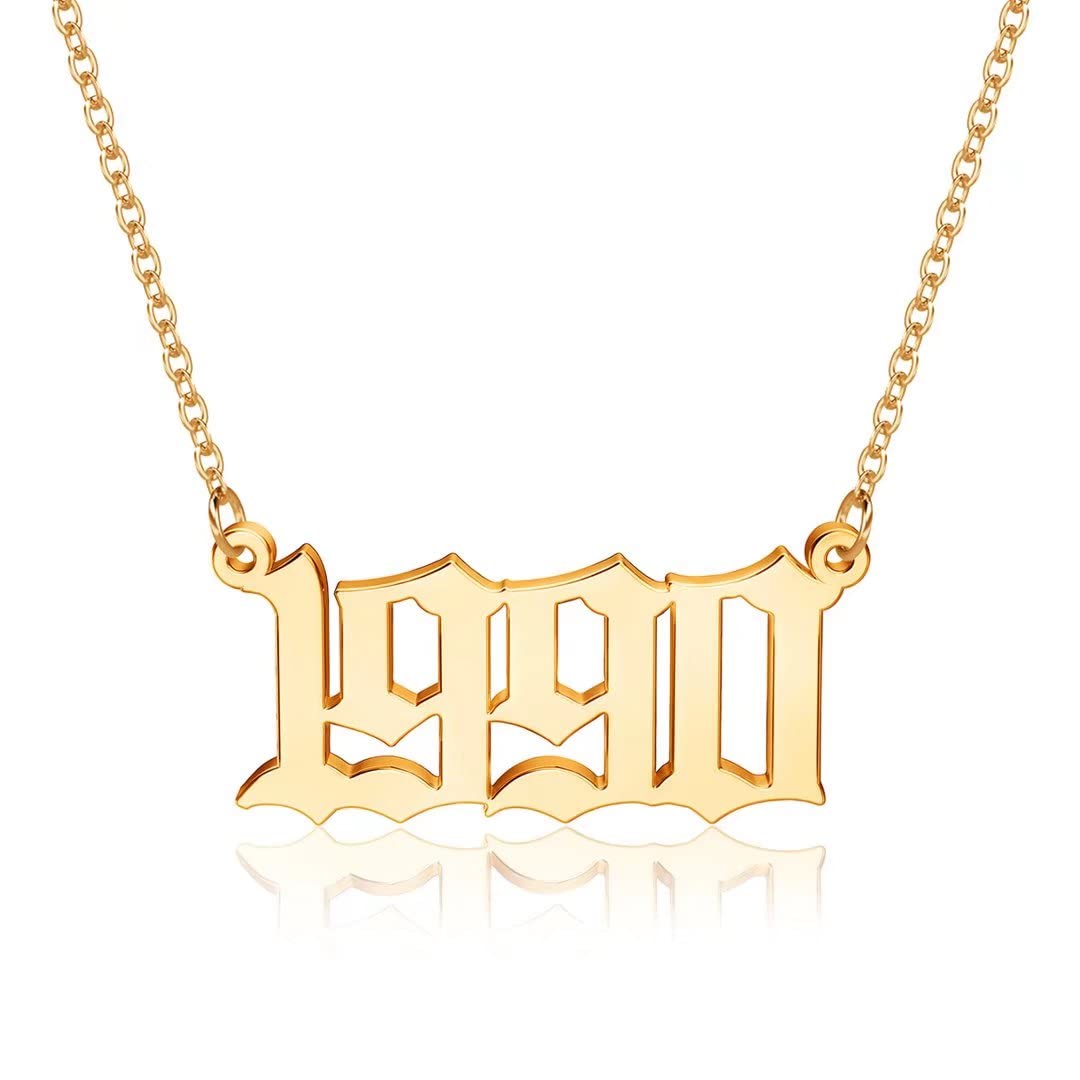 Turandoss 2000 Necklace Birth Year Necklace, Teen Girls Gifts Old English Birth Year Number Pendant 14K Gold Plated Necklace Gifts for Women Birthday Anniversary Friends Jewelry