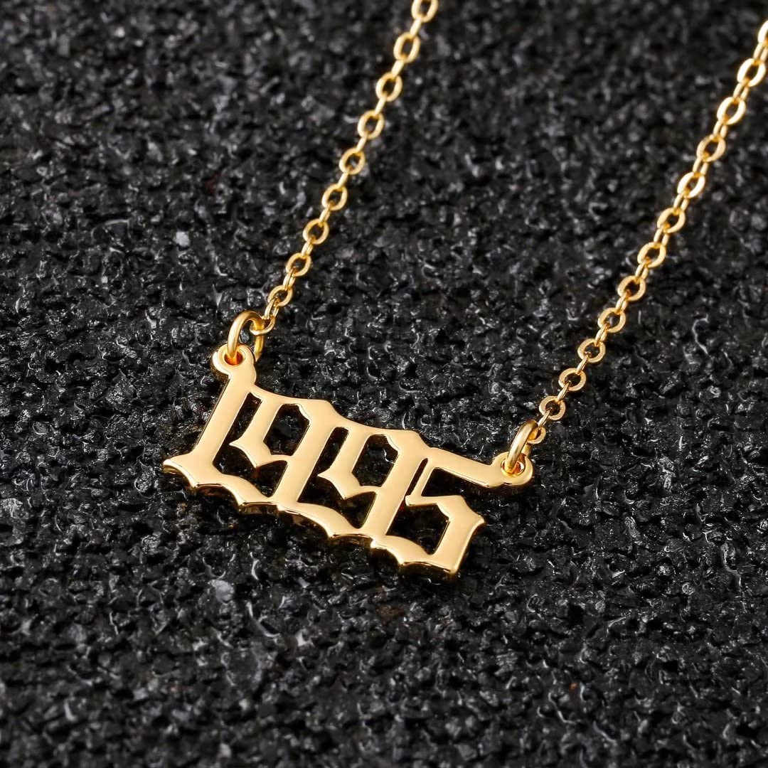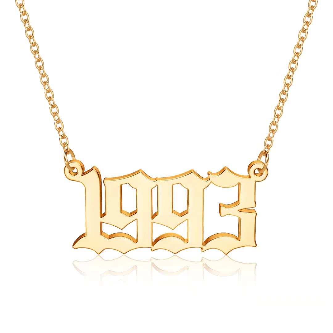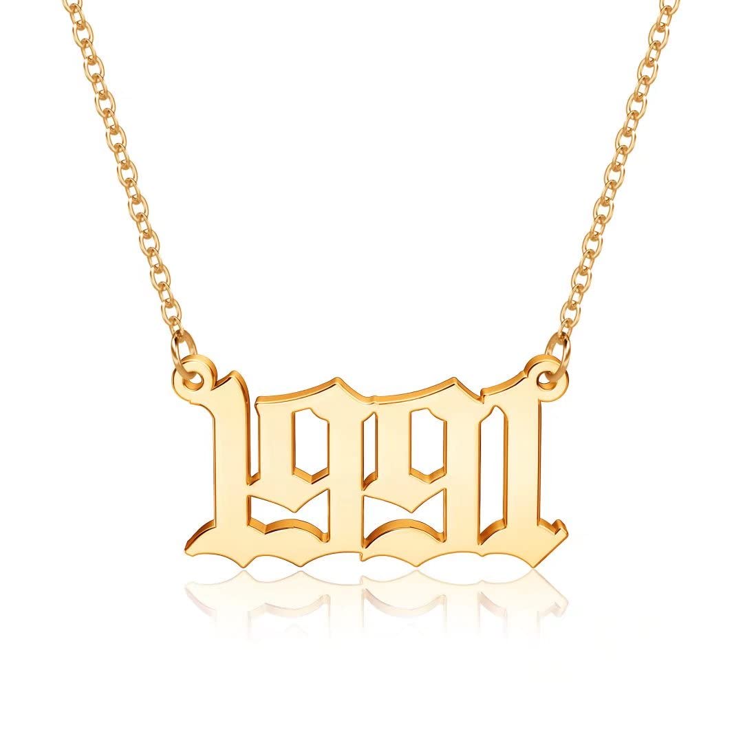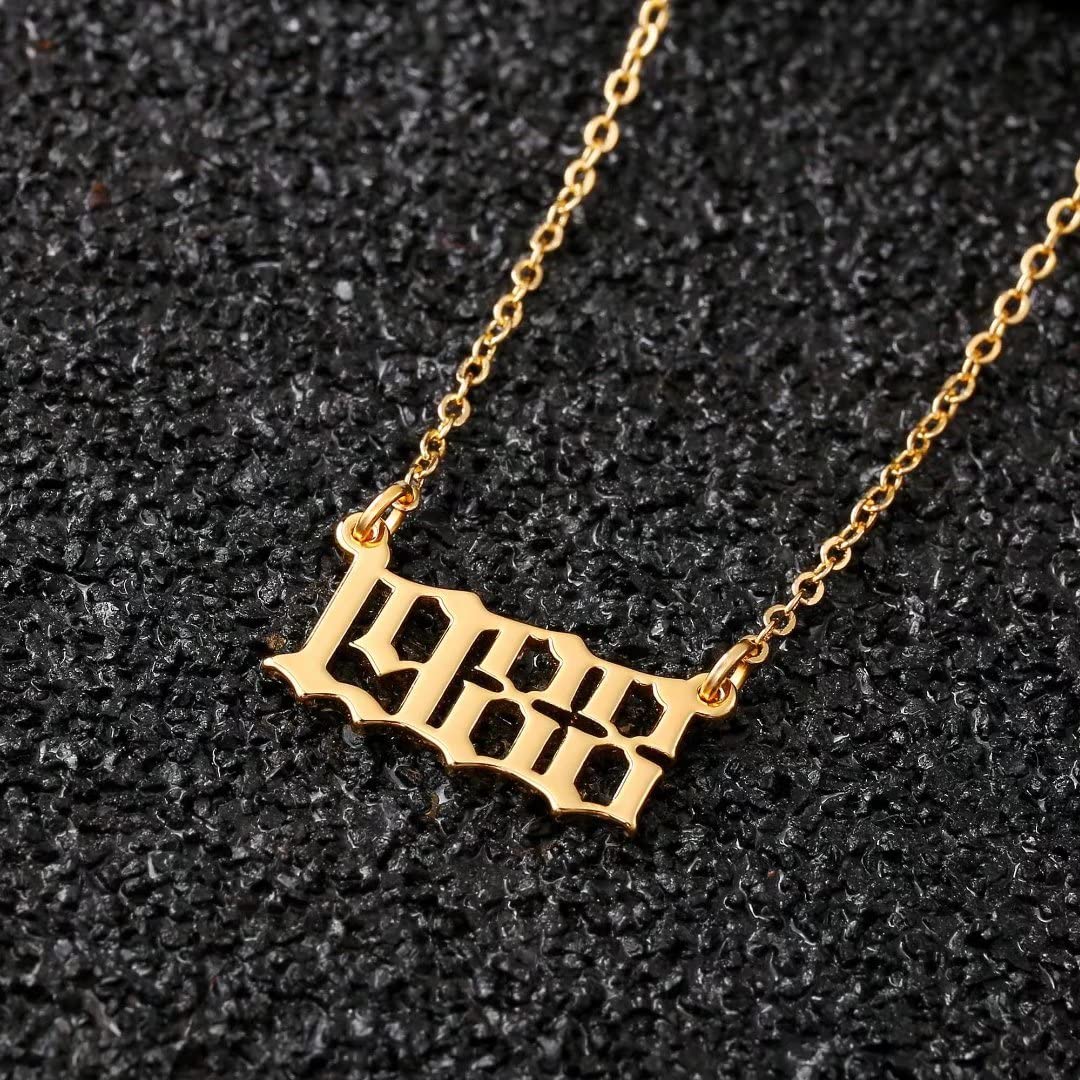Turandoss 2000 Necklace Birth Year Necklace, Teen Girls Gifts Old English Birth Year Number Pendant 14K Gold Plated Necklace Gifts for Women Birthday Anniversary Friends Jewelry