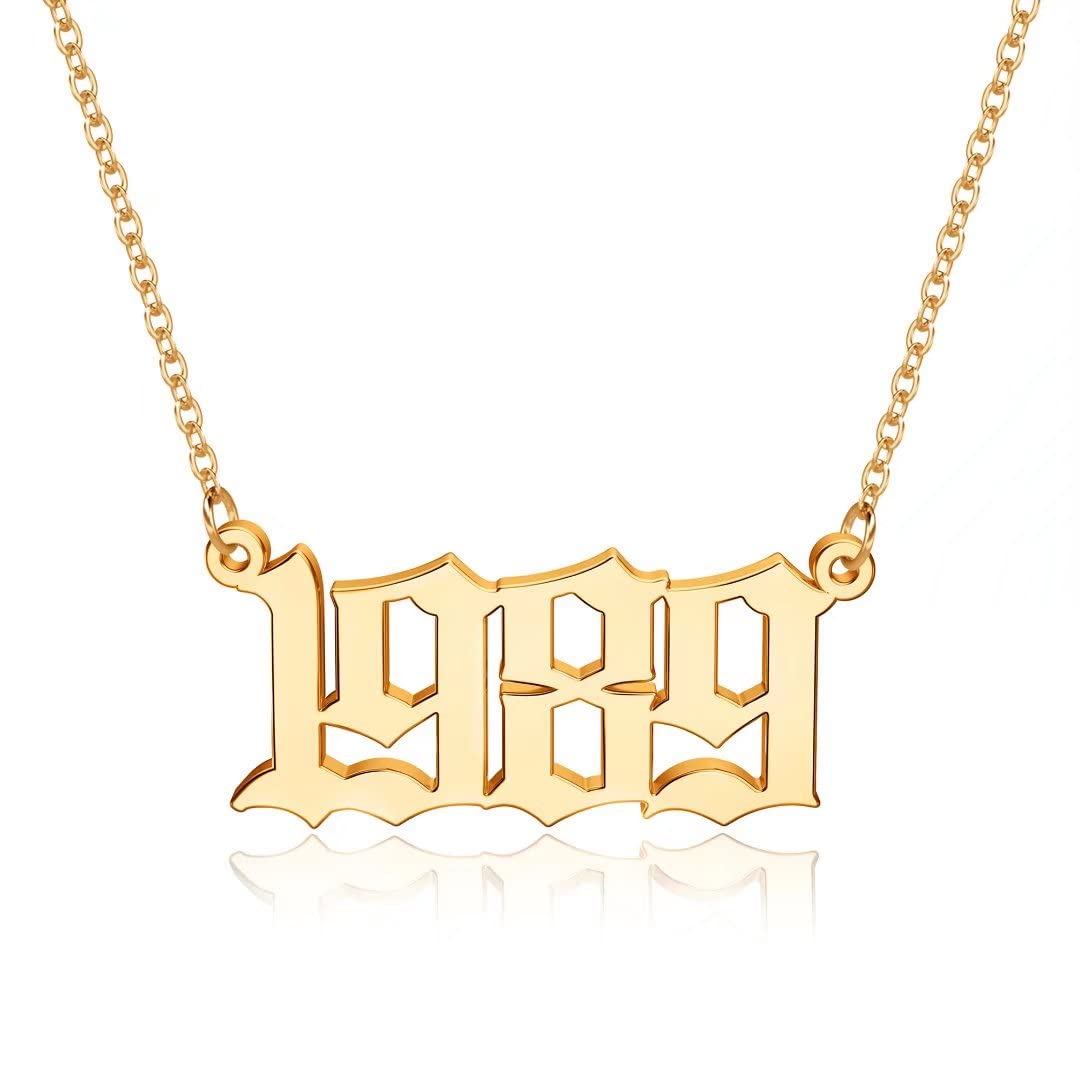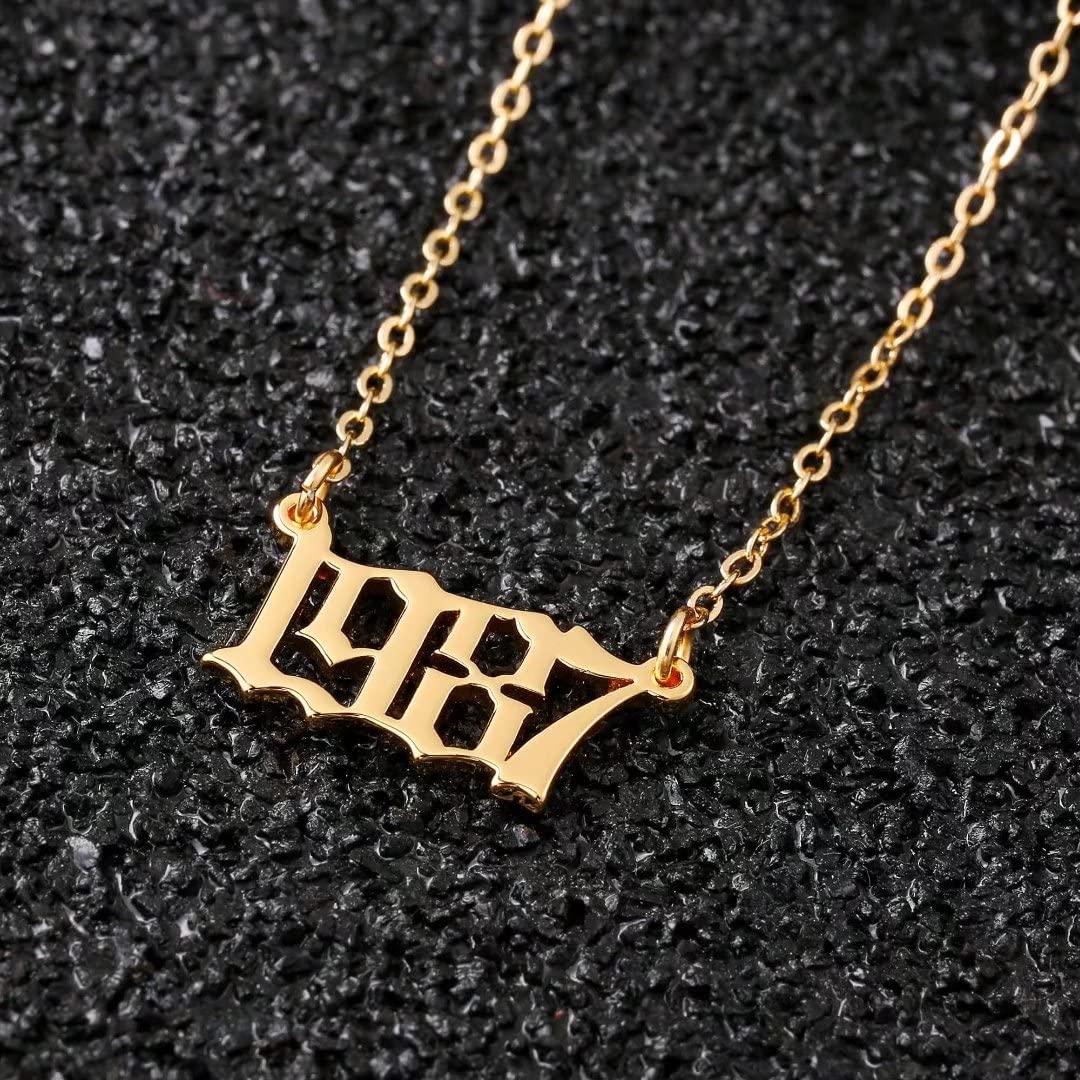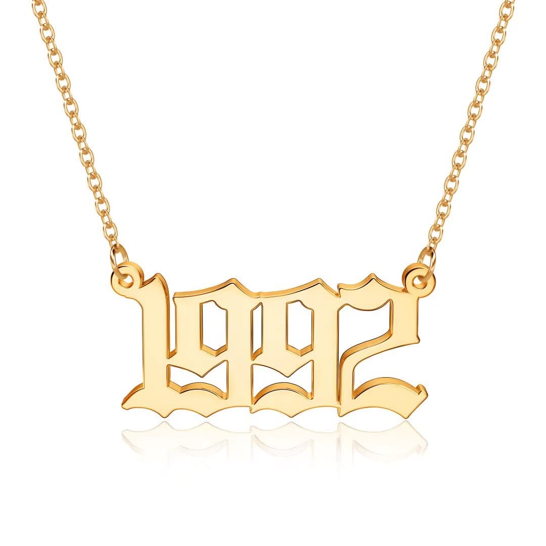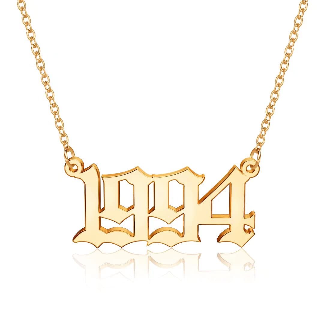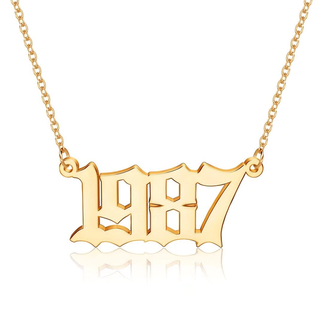 Turandoss 2000 Necklace Birth Year Necklace, Teen Girls Gifts Old English Birth Year Number Pendant 14K Gold Plated Necklace Gifts for Women Birthday Anniversary Friends Jewelry
