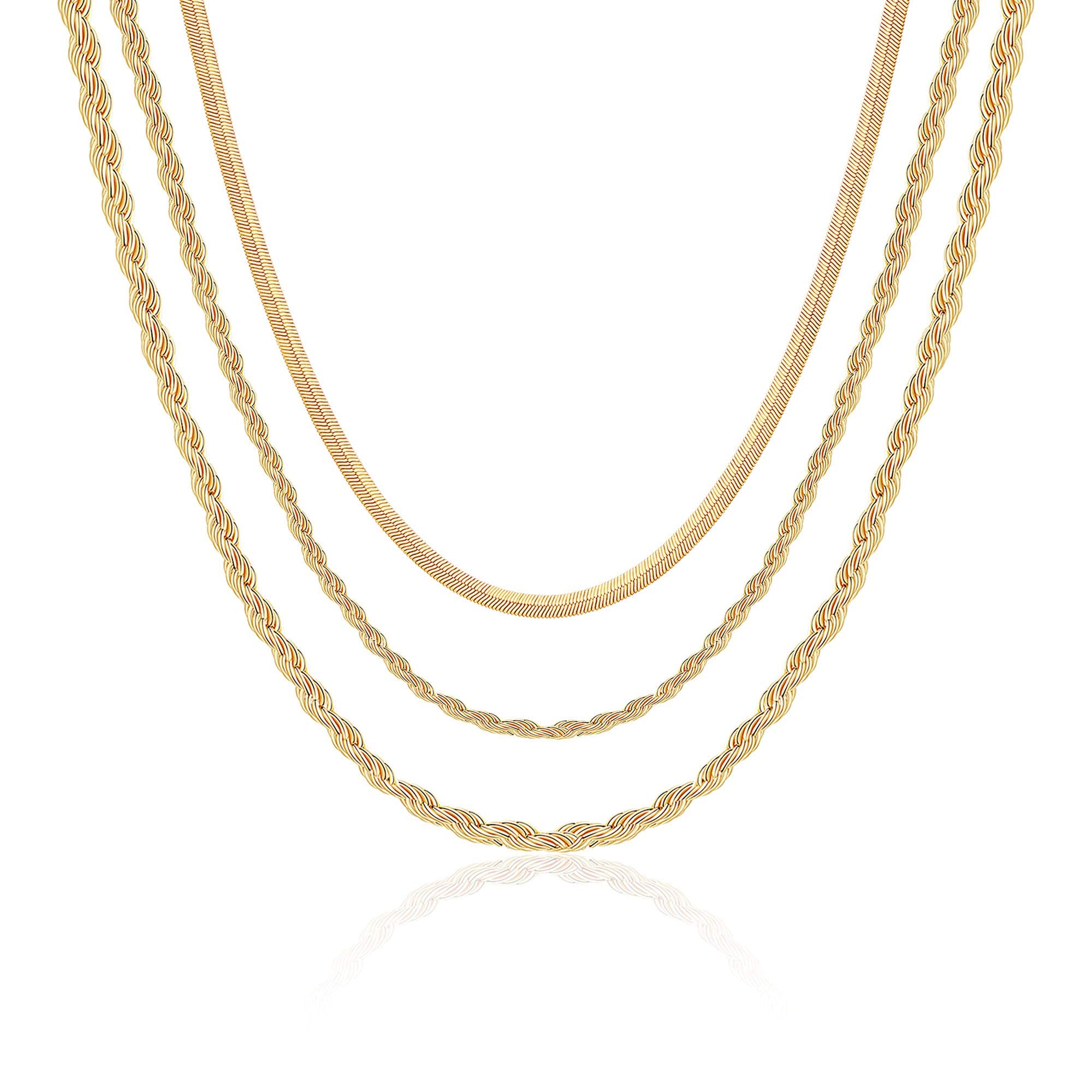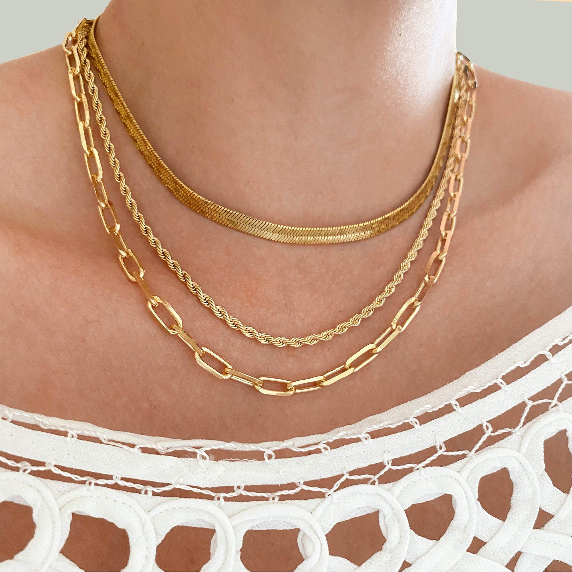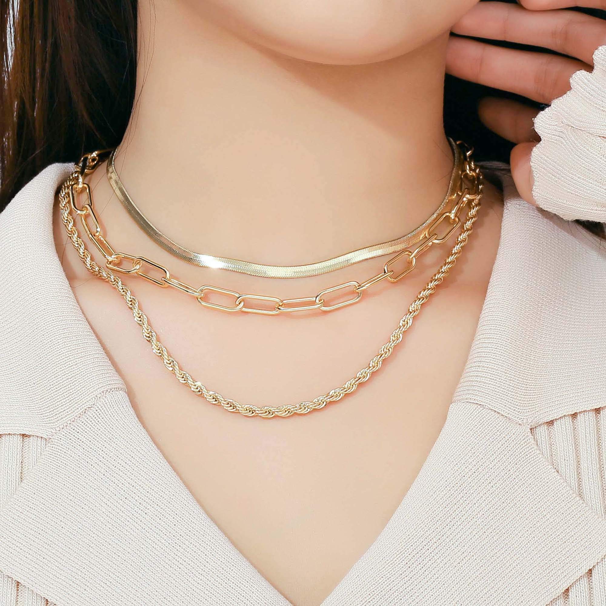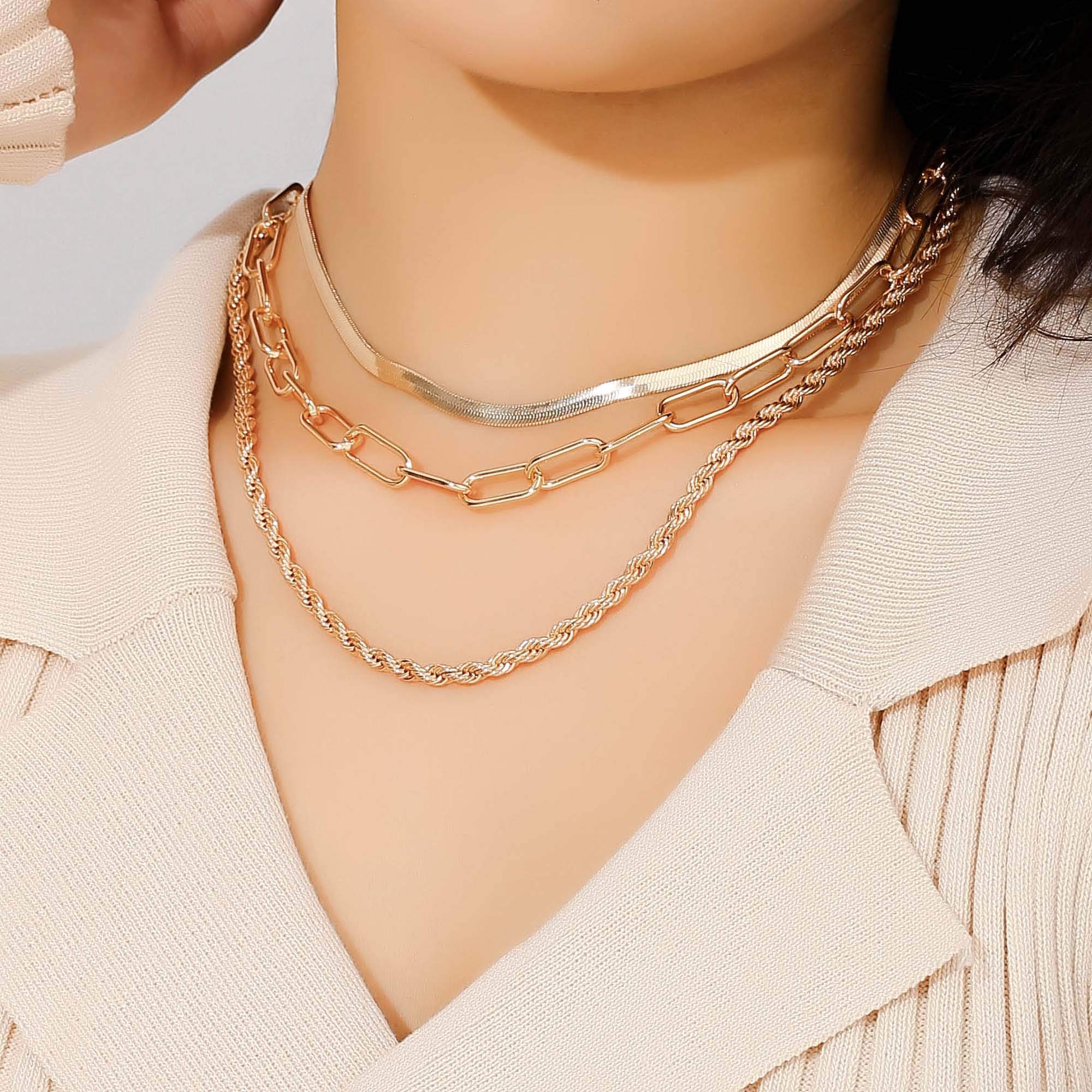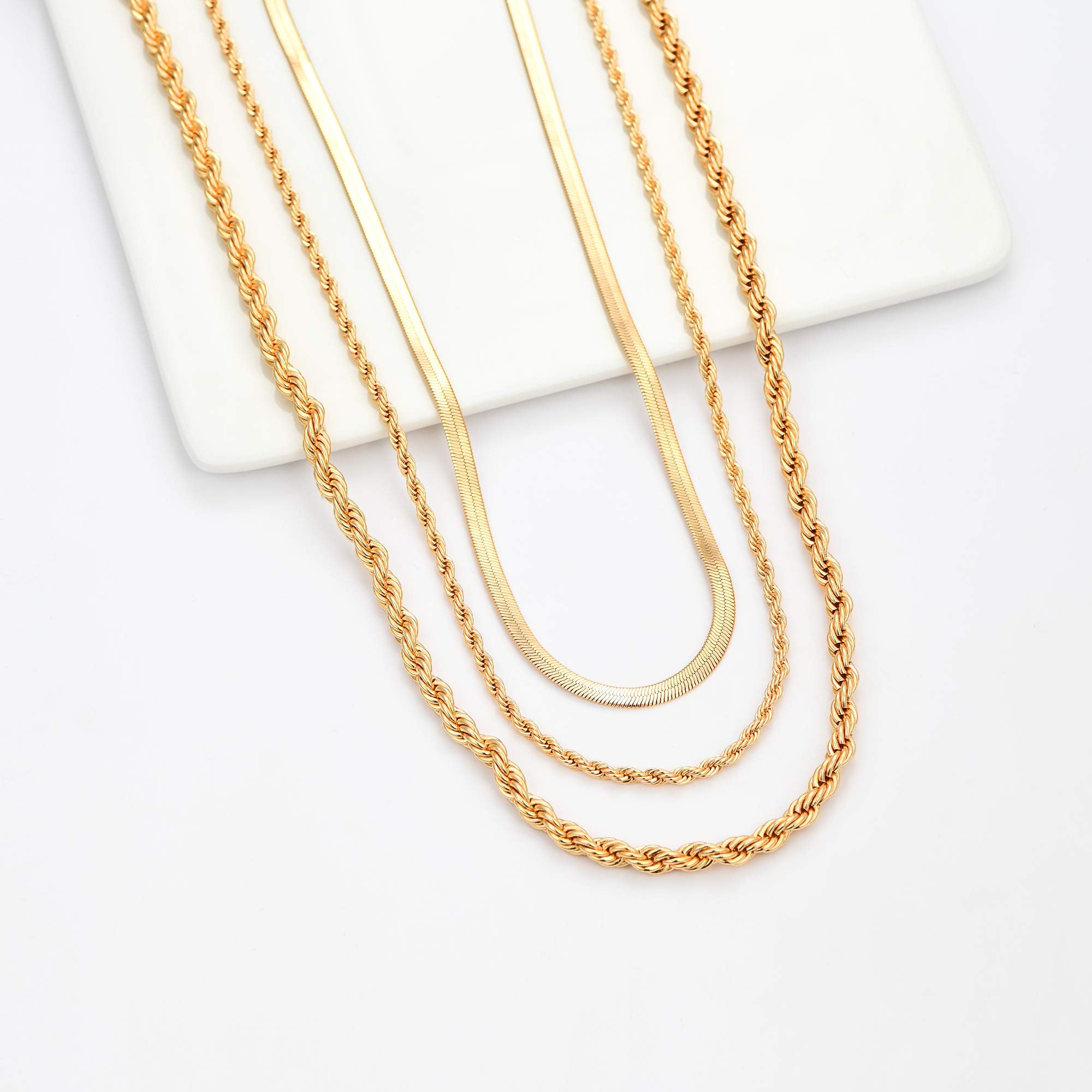 Layered Choker Necklaces for Women, 14K Gold Plated Gold Twisted Rope Chain Chunky Stack Necklace Stack Snake Herringbone Chain Necklaces for Women Gold Jewelry Set Gifts