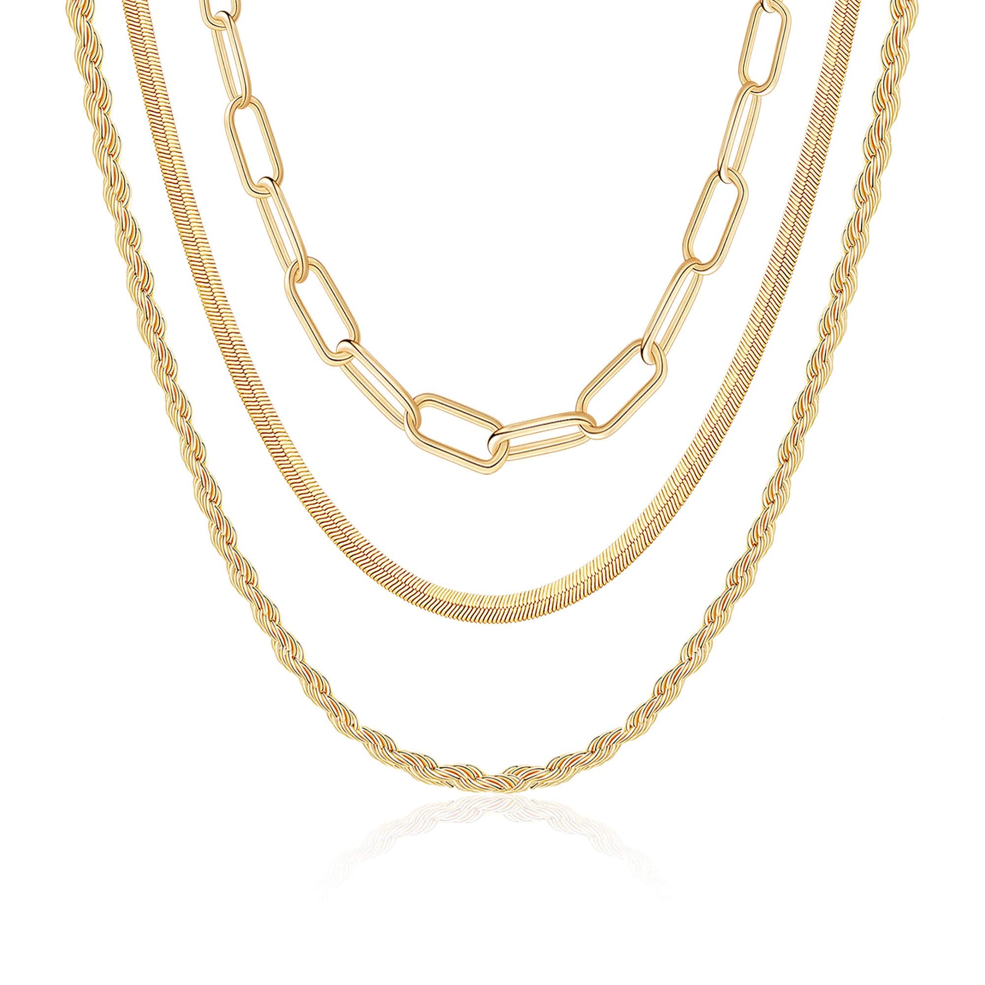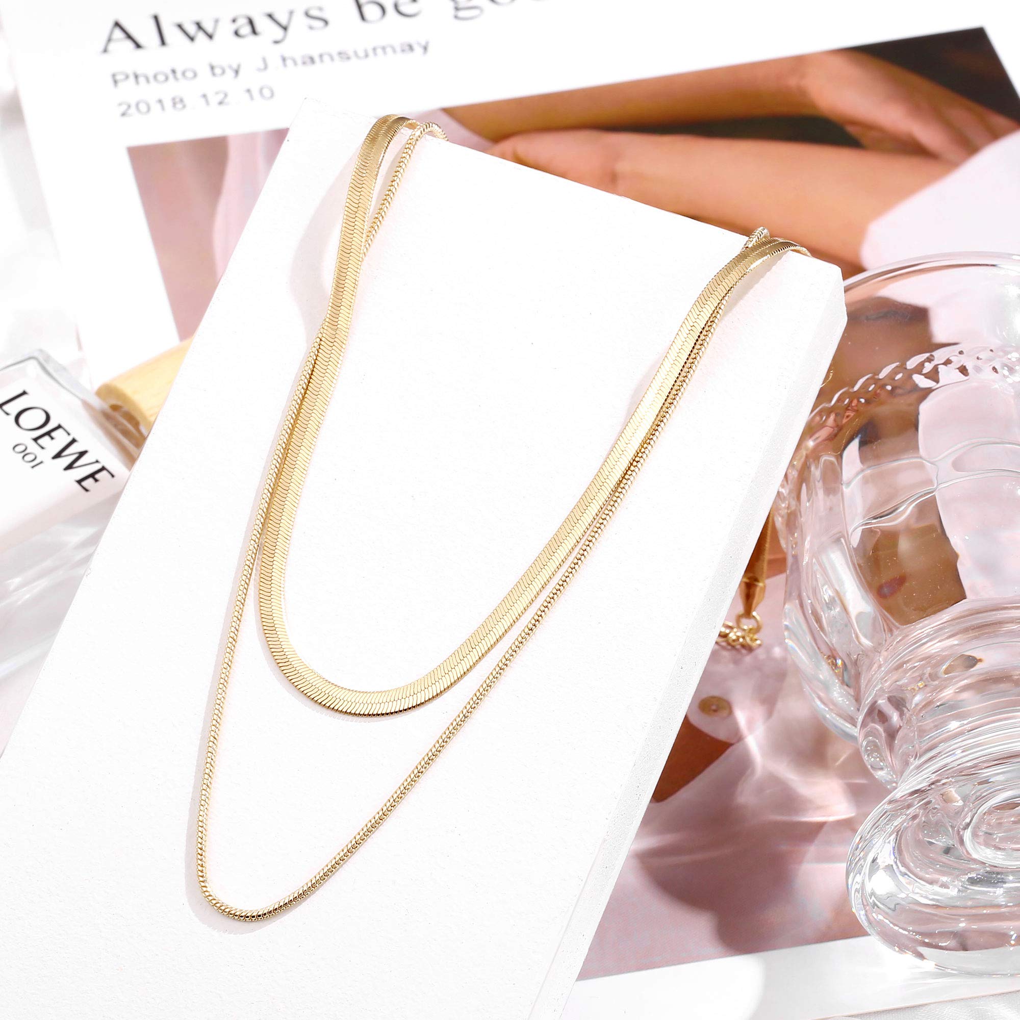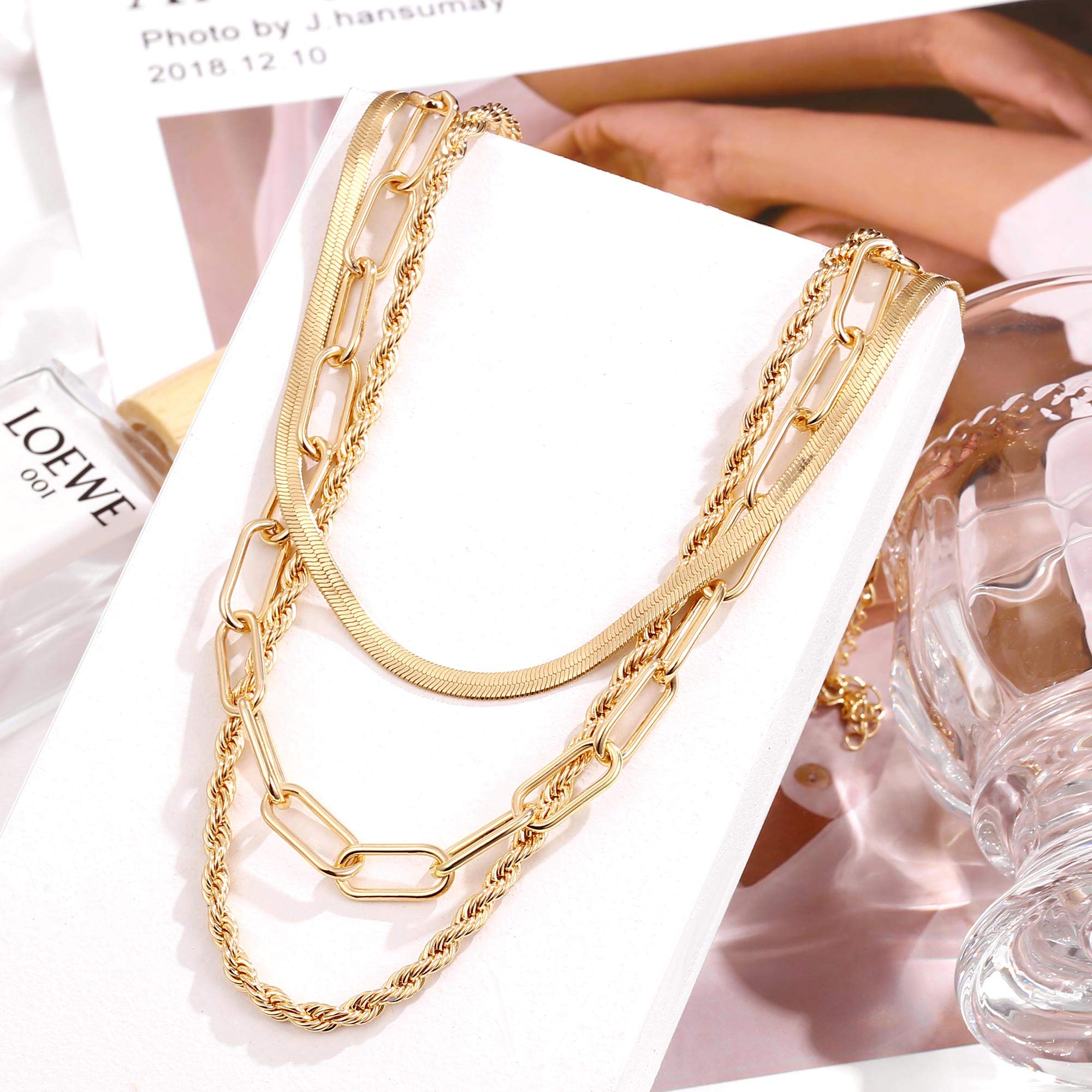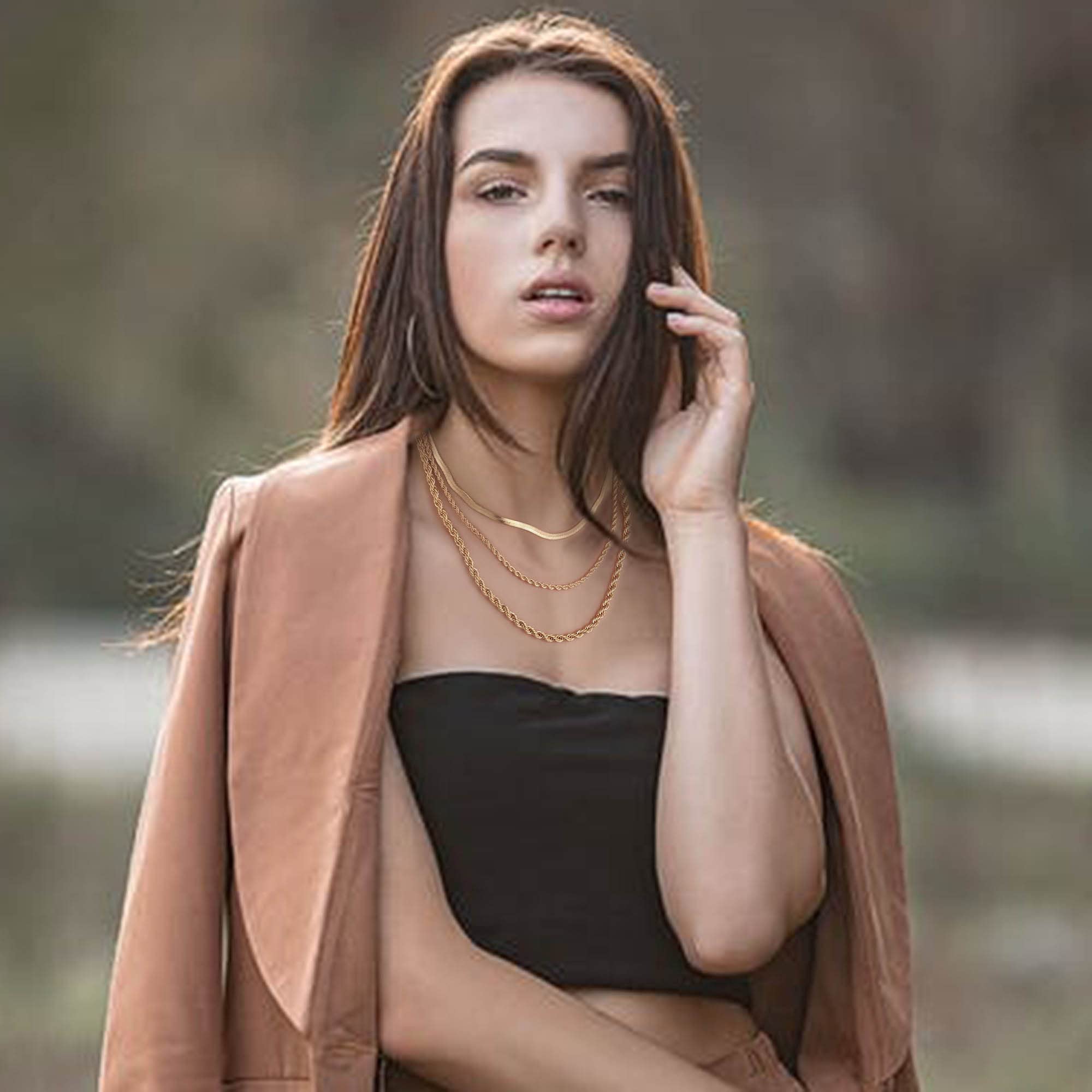 Layered Choker Necklaces for Women, 14K Gold Plated Gold Twisted Rope Chain Chunky Stack Necklace Stack Snake Herringbone Chain Necklaces for Women Gold Jewelry Set Gifts