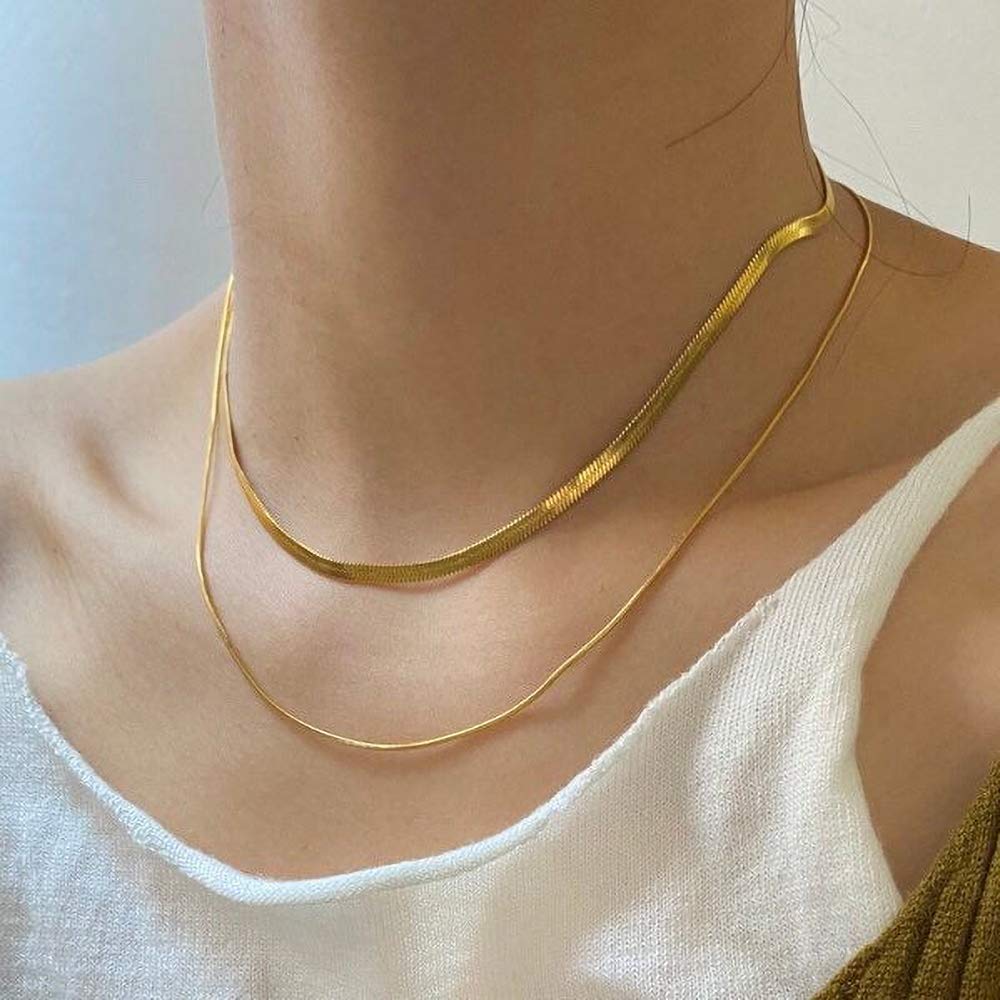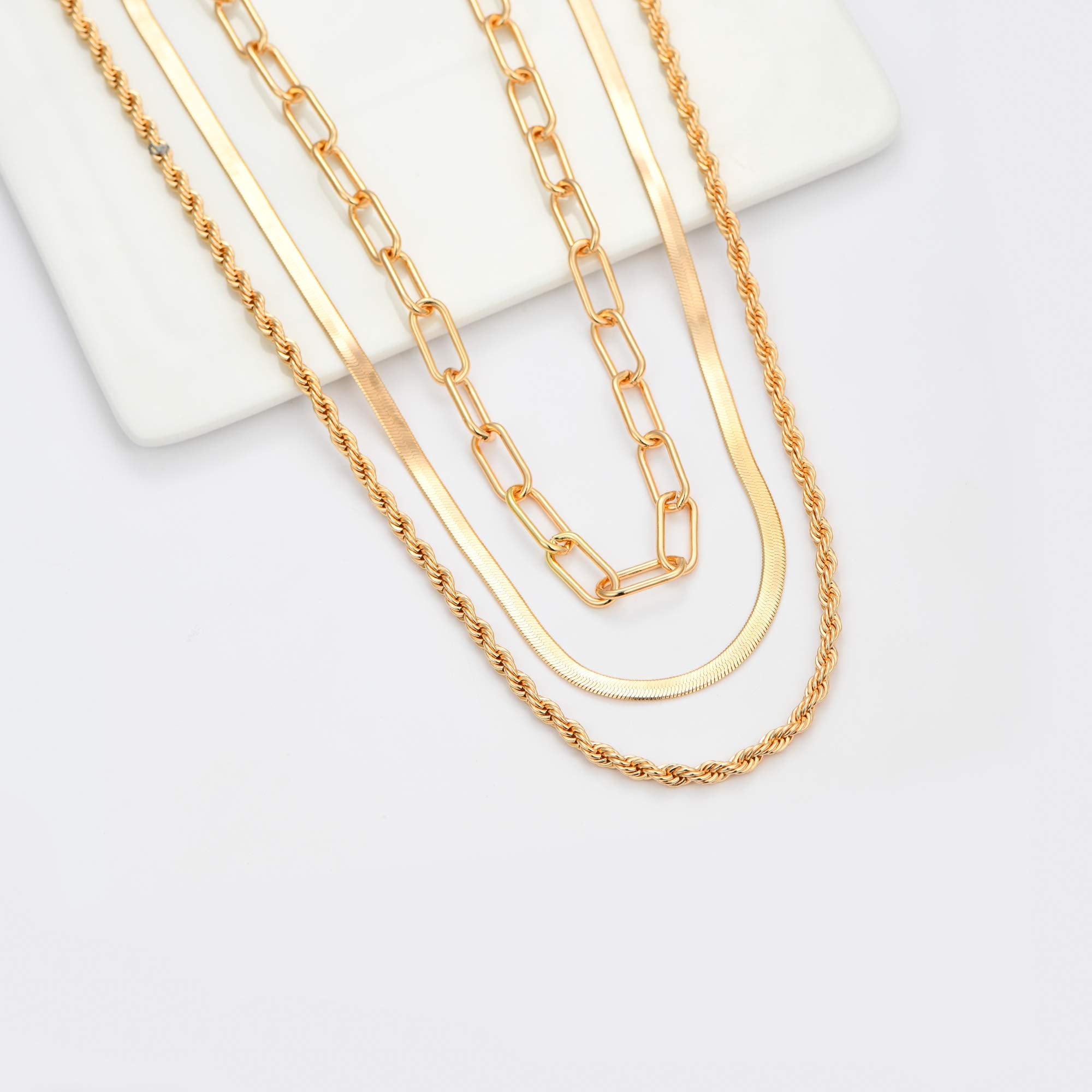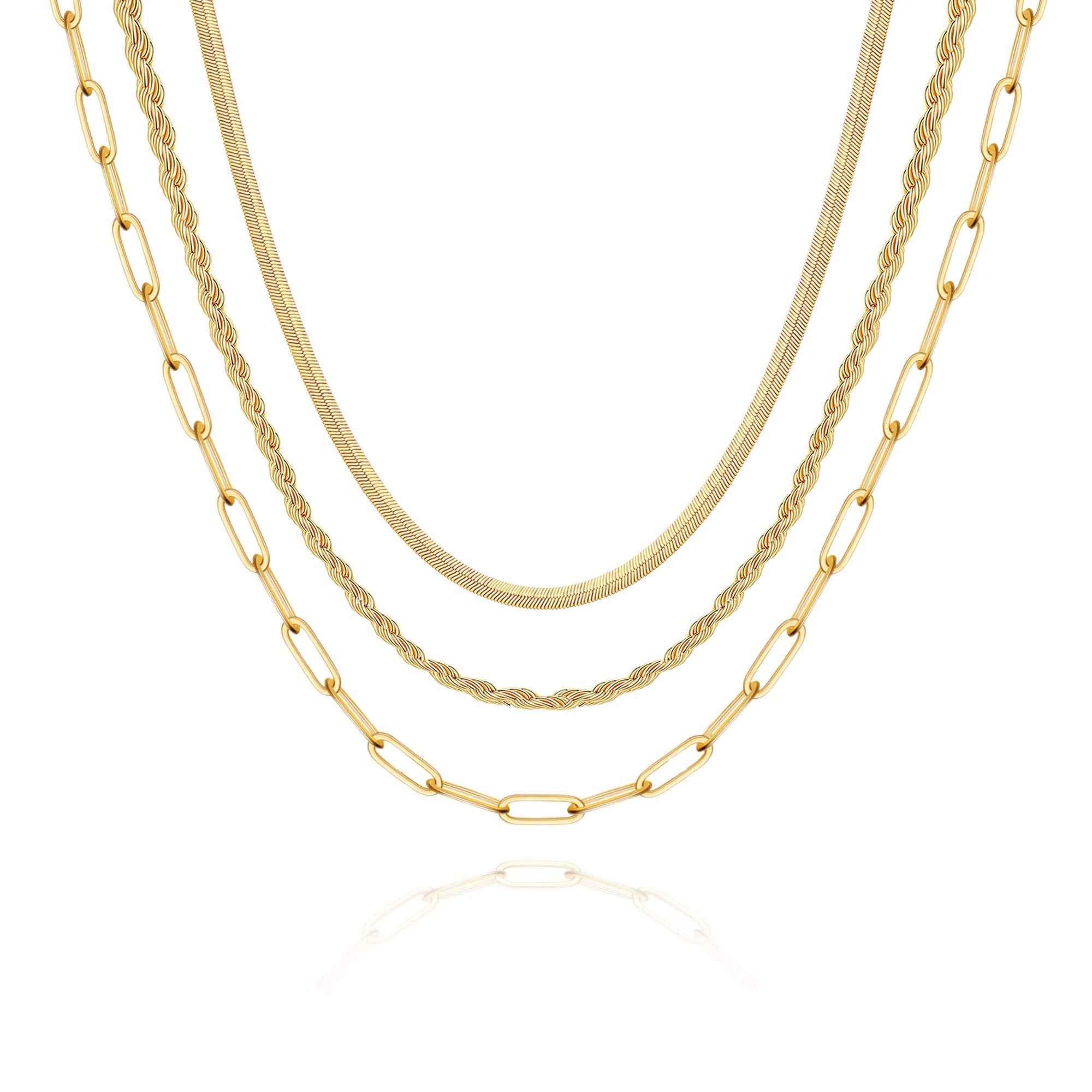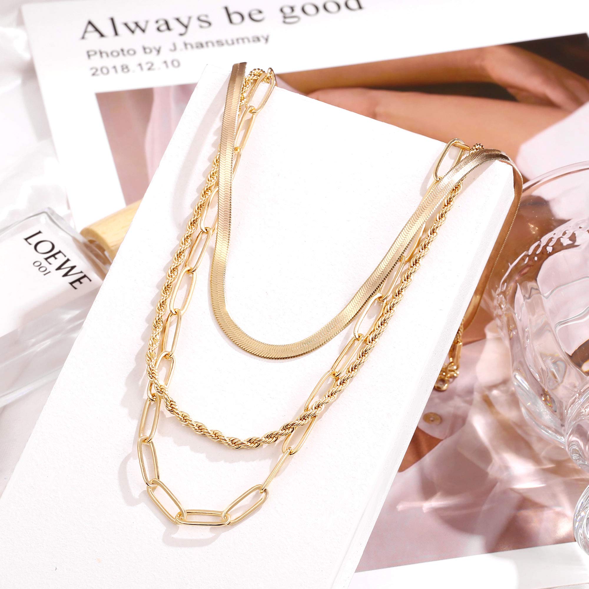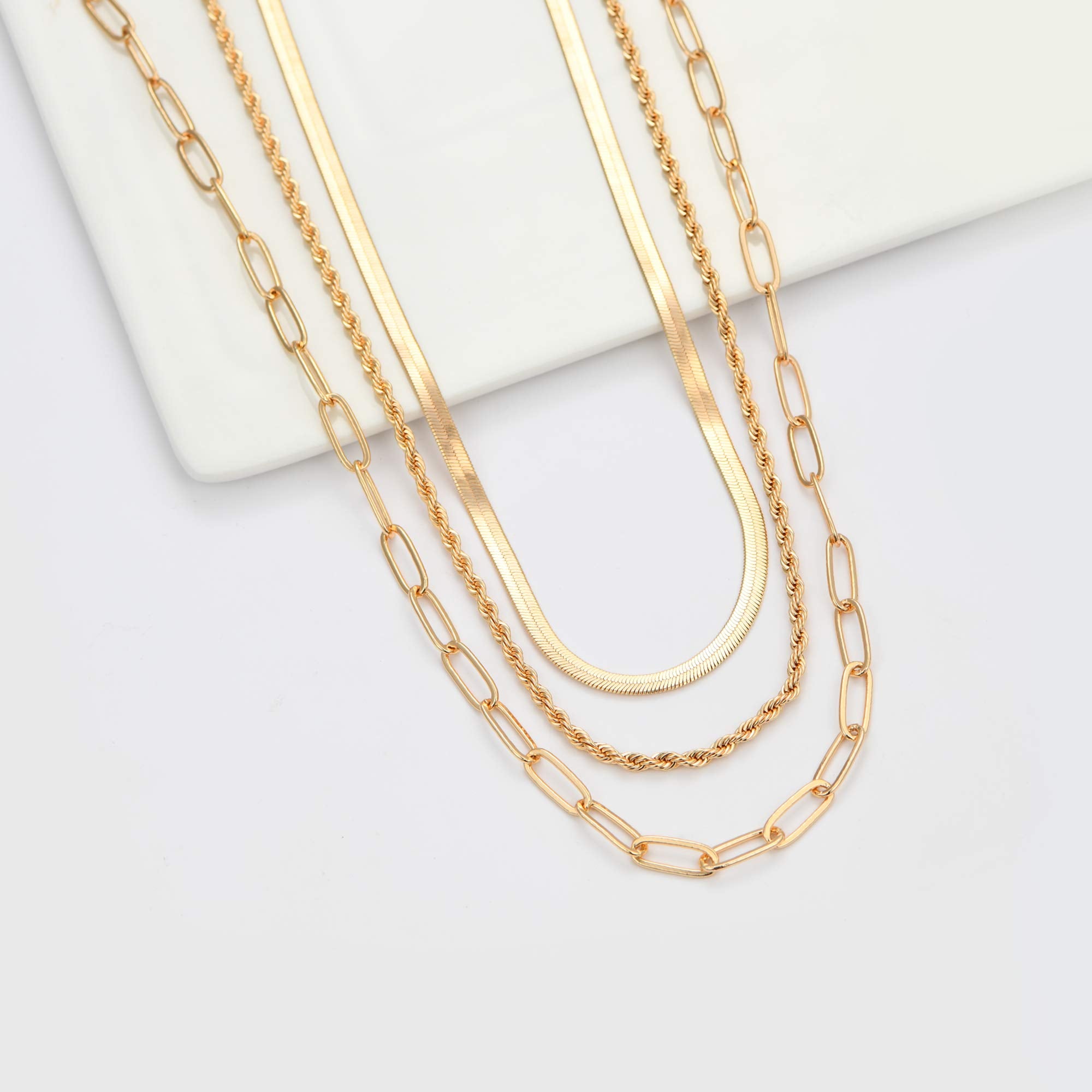 Layered Choker Necklaces for Women, 14K Gold Plated Gold Twisted Rope Chain Chunky Stack Necklace Stack Snake Herringbone Chain Necklaces for Women Gold Jewelry Set Gifts