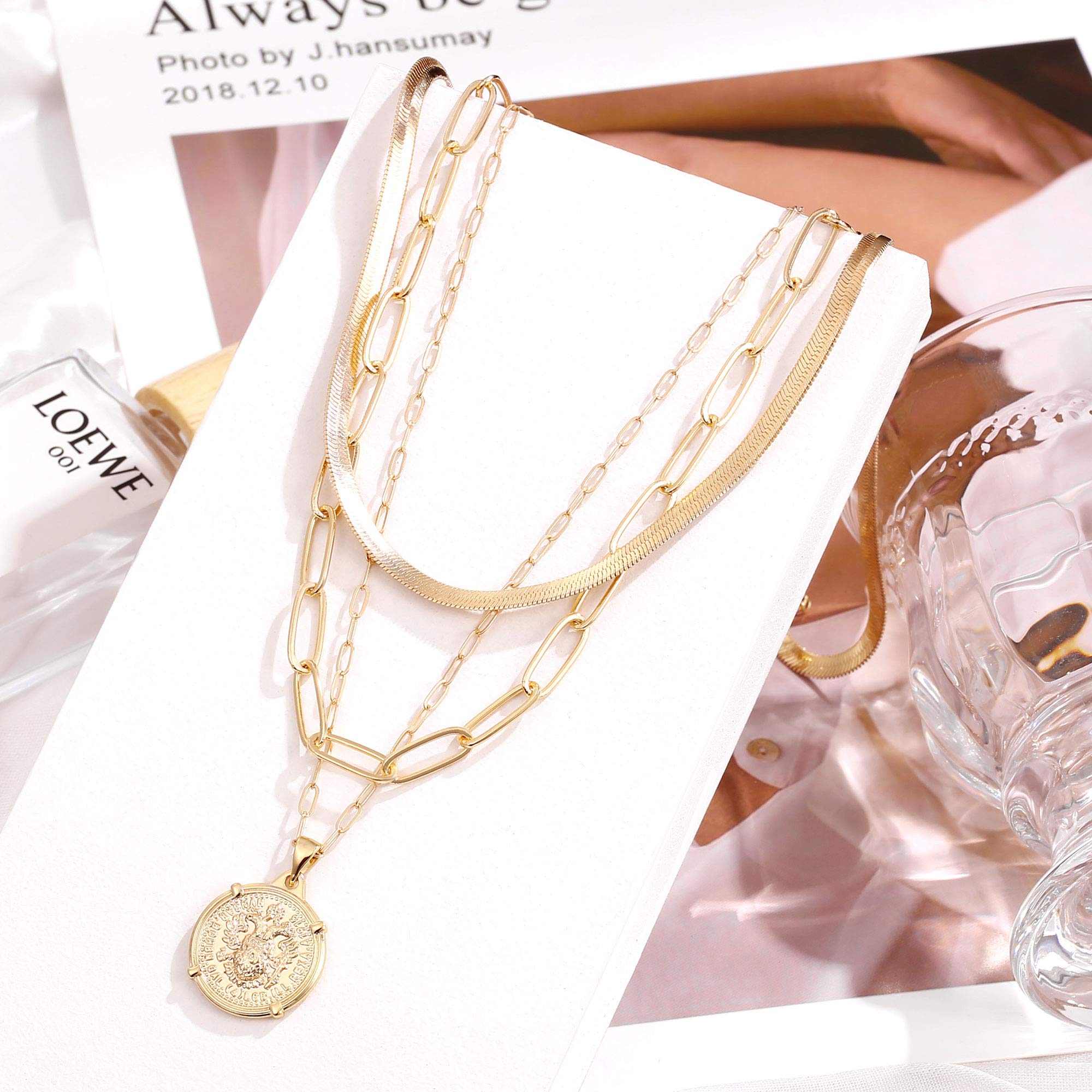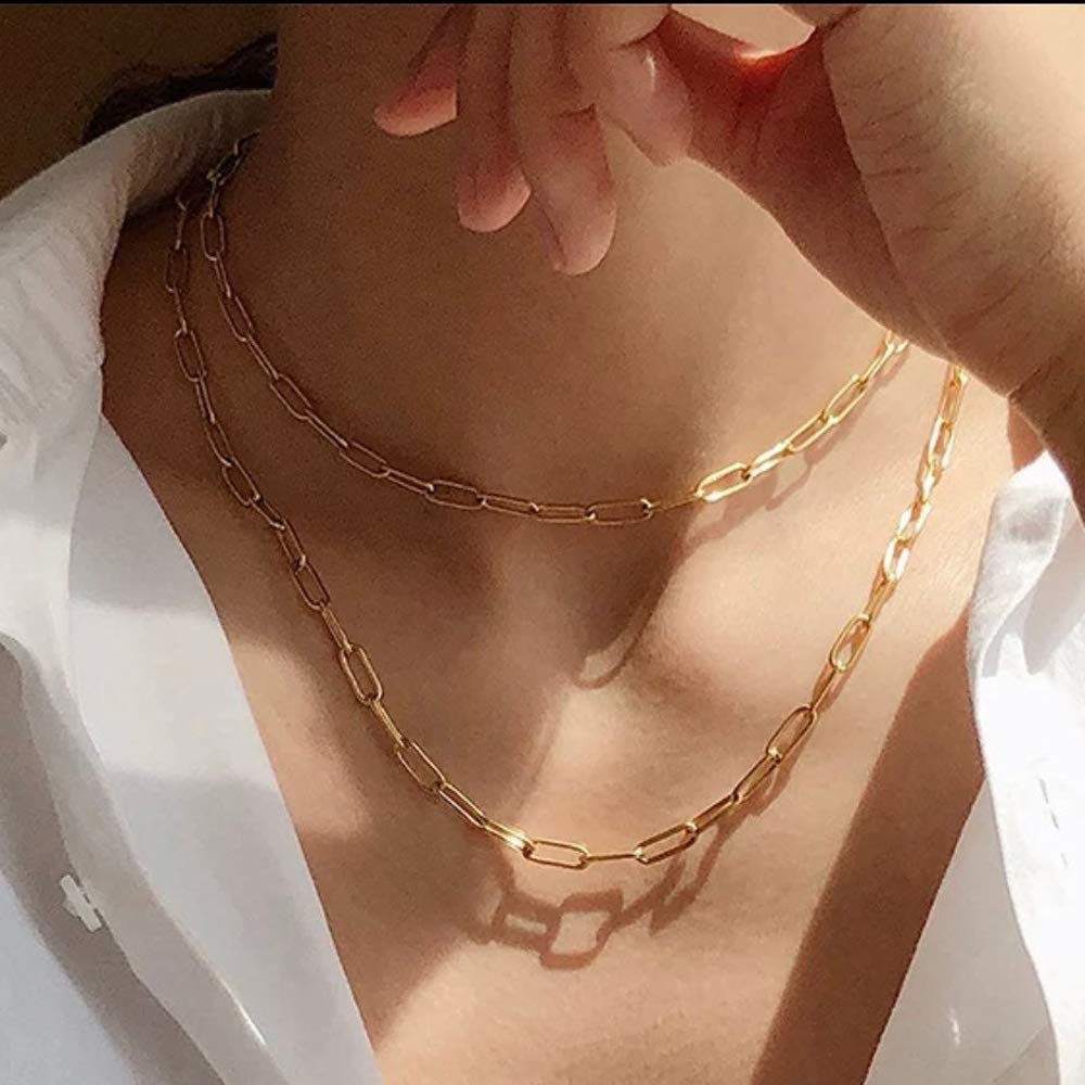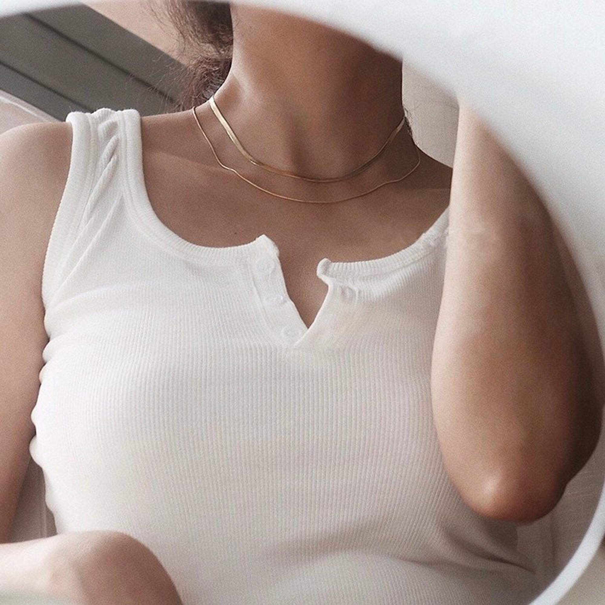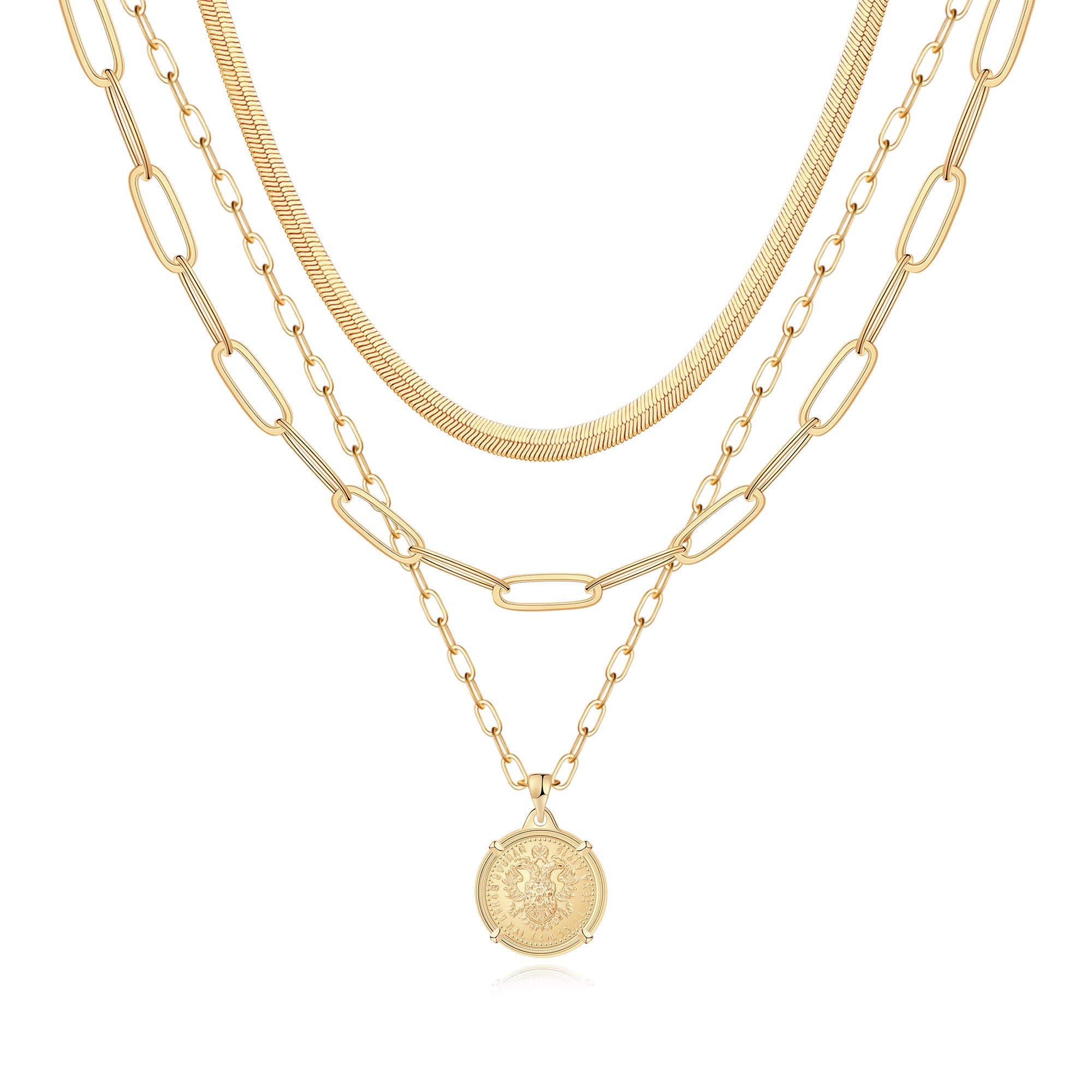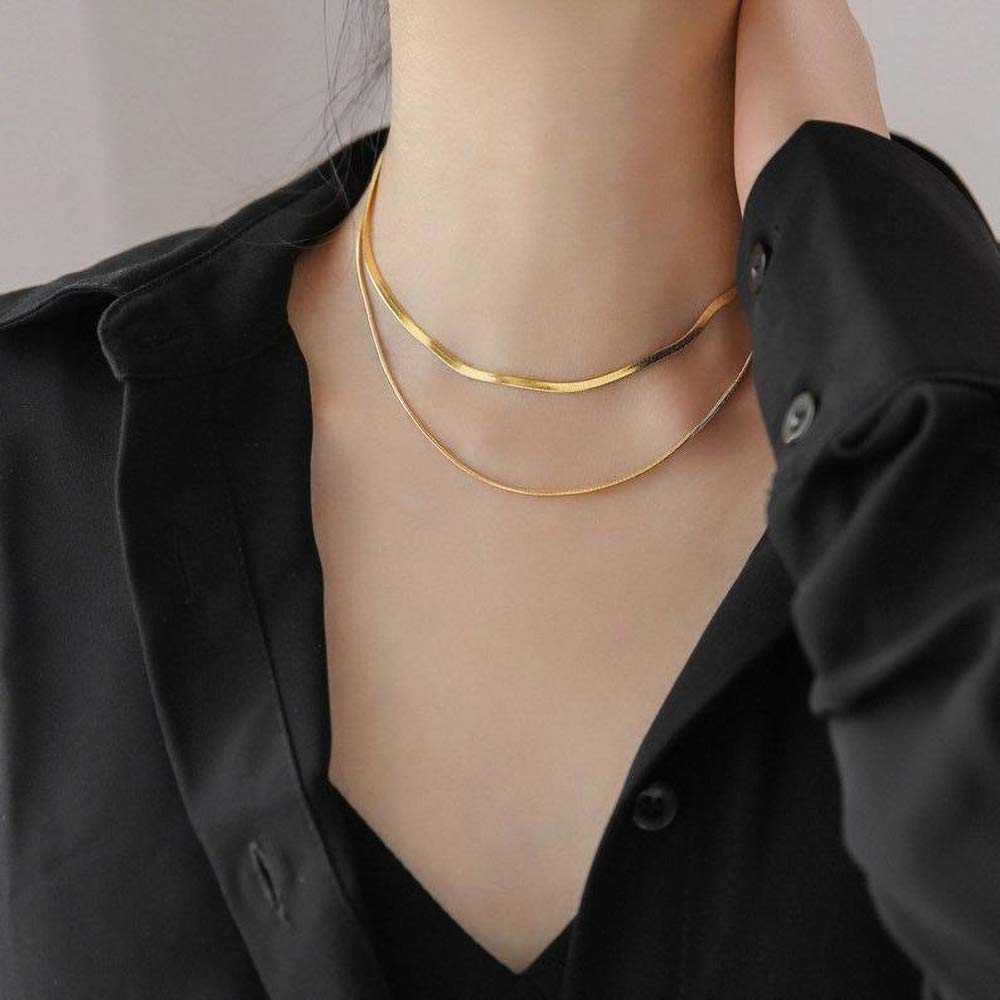 Layered Choker Necklaces for Women, 14K Gold Plated Gold Twisted Rope Chain Chunky Stack Necklace Stack Snake Herringbone Chain Necklaces for Women Gold Jewelry Set Gifts