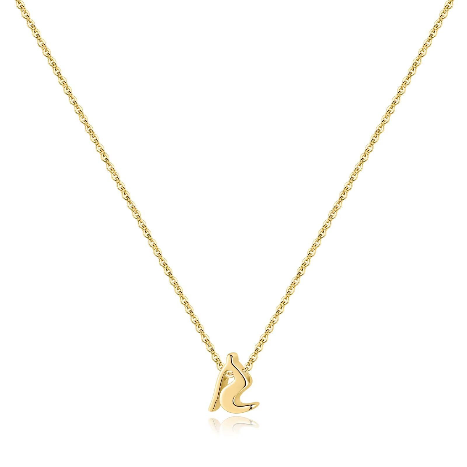 Turandoss 925 Sterling Silver Initial Necklace for Women Girls, Dainty Simple Letter A Gold Gold Cursive Initial Necklace for Women, Valentines Mother¡¯S Day Birthday Christmas Gifts Jewelry
