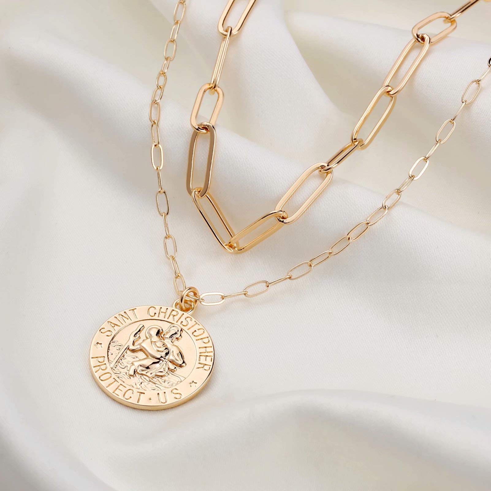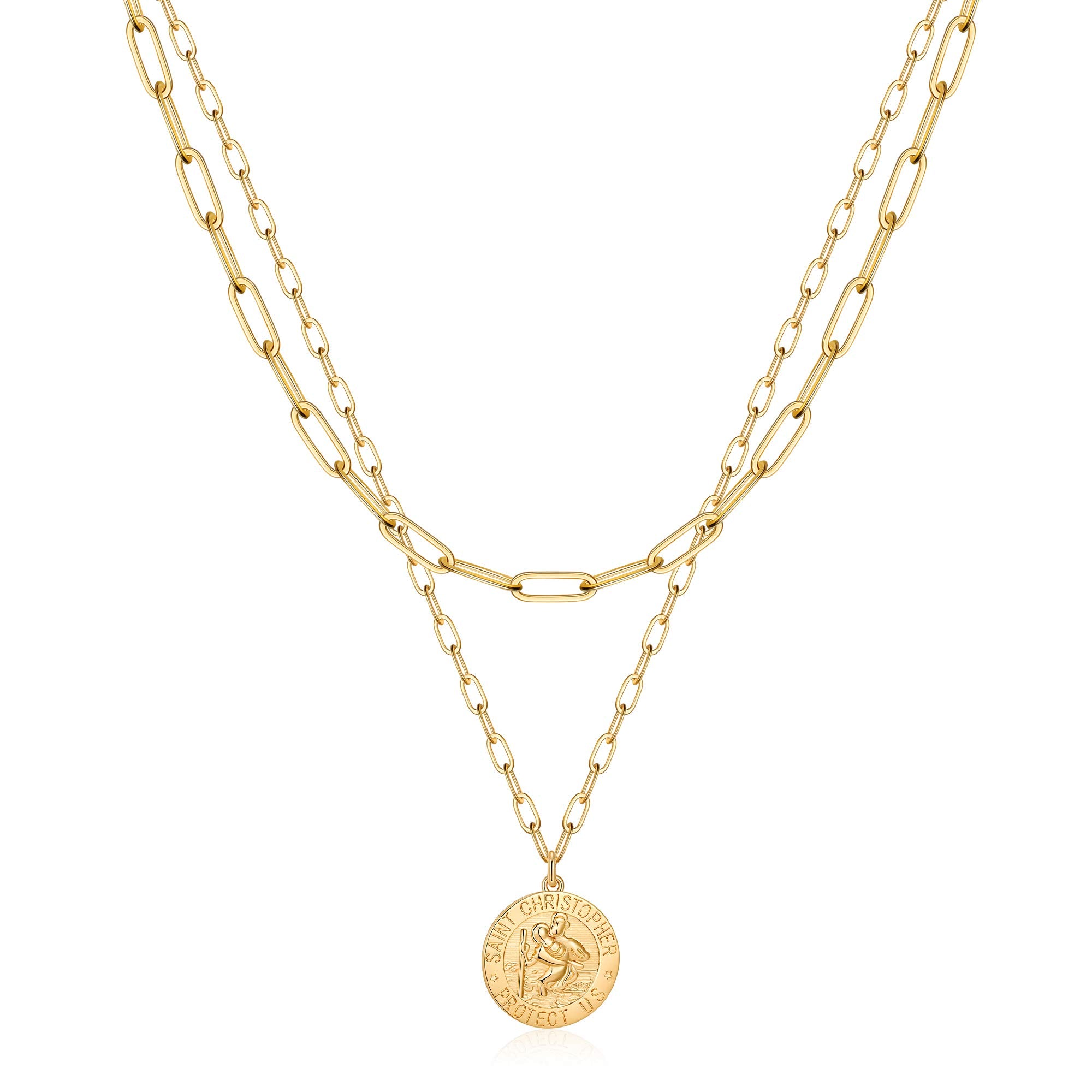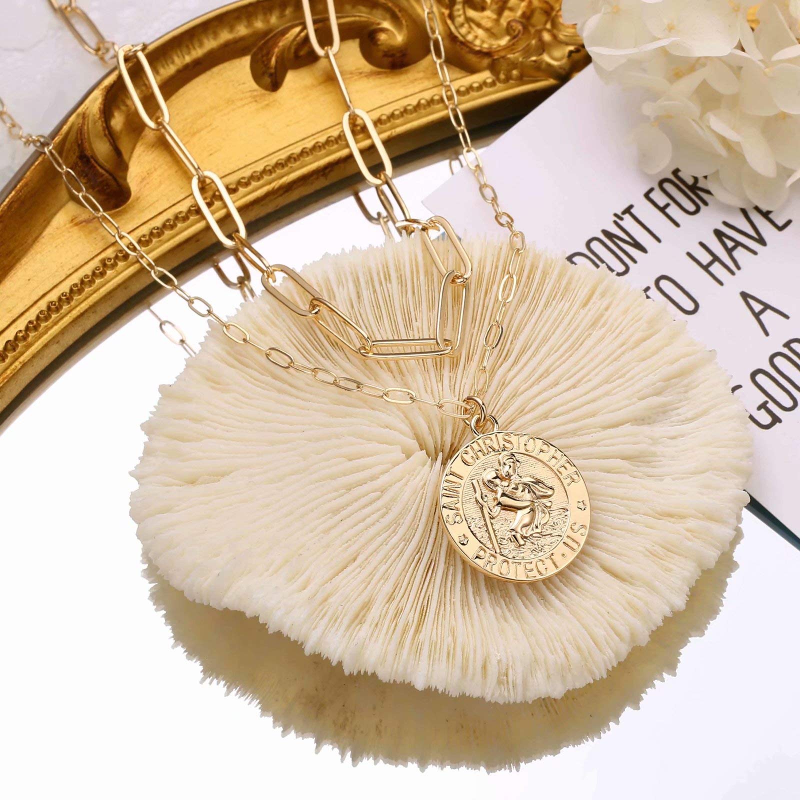 Turandoss 14K Gold Plated Triangle Layered Necklaces for Women, 14K Gold Plated Triangle Bar Multi Disc Layered Choker Necklace for Women