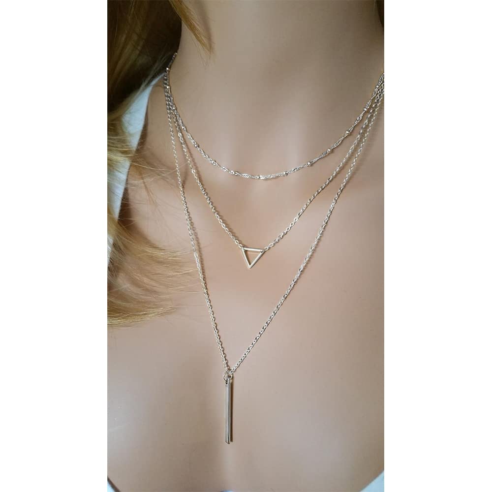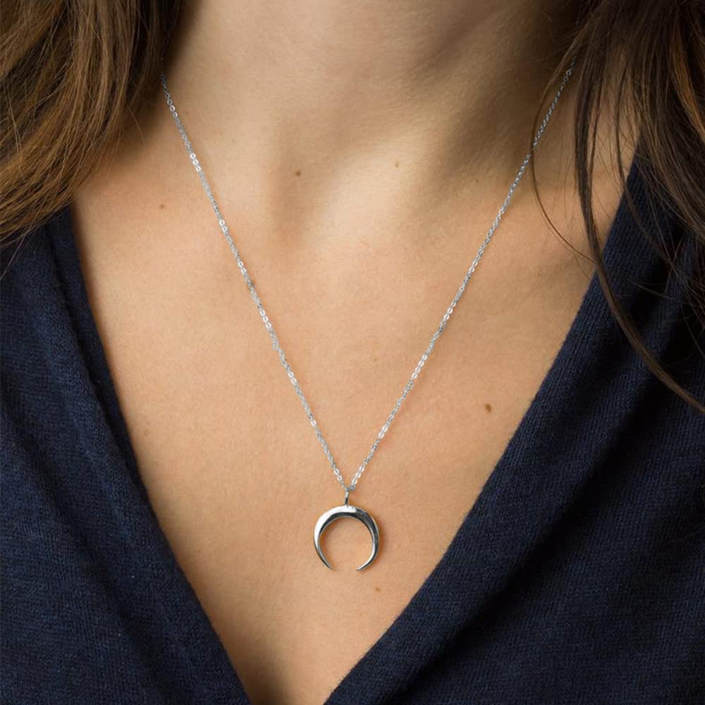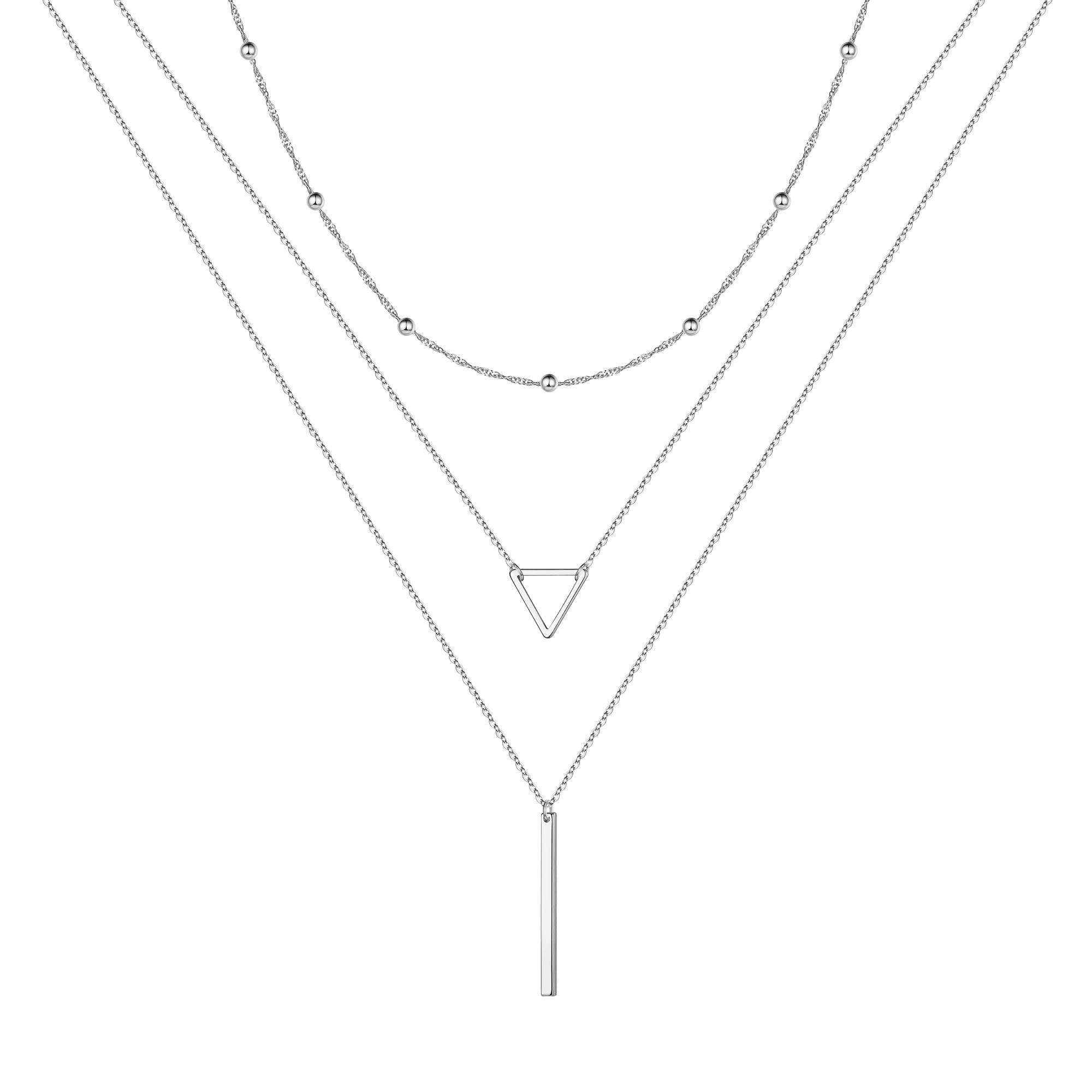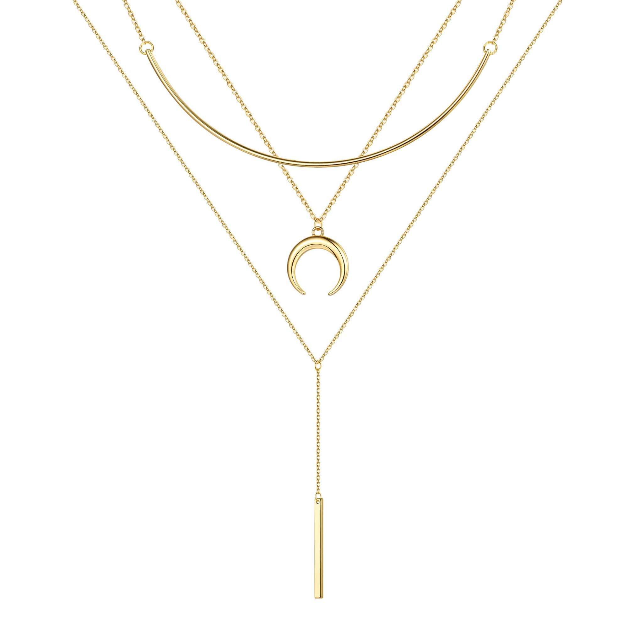 Turandoss Layered Silver Necklace for Women - 14K-White-Gold-Plated Crescent Layered Choker Necklace for Women Layering Necklace Silver Necklace for Women Silver Jewelry
