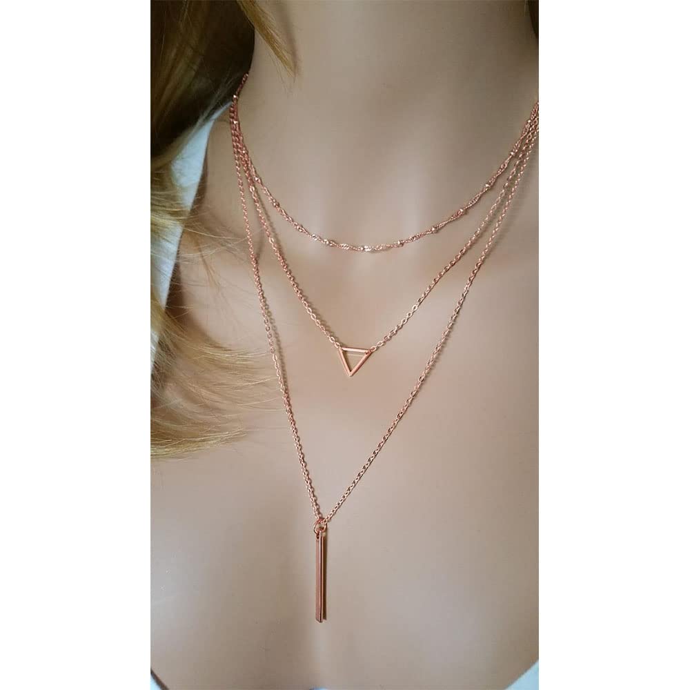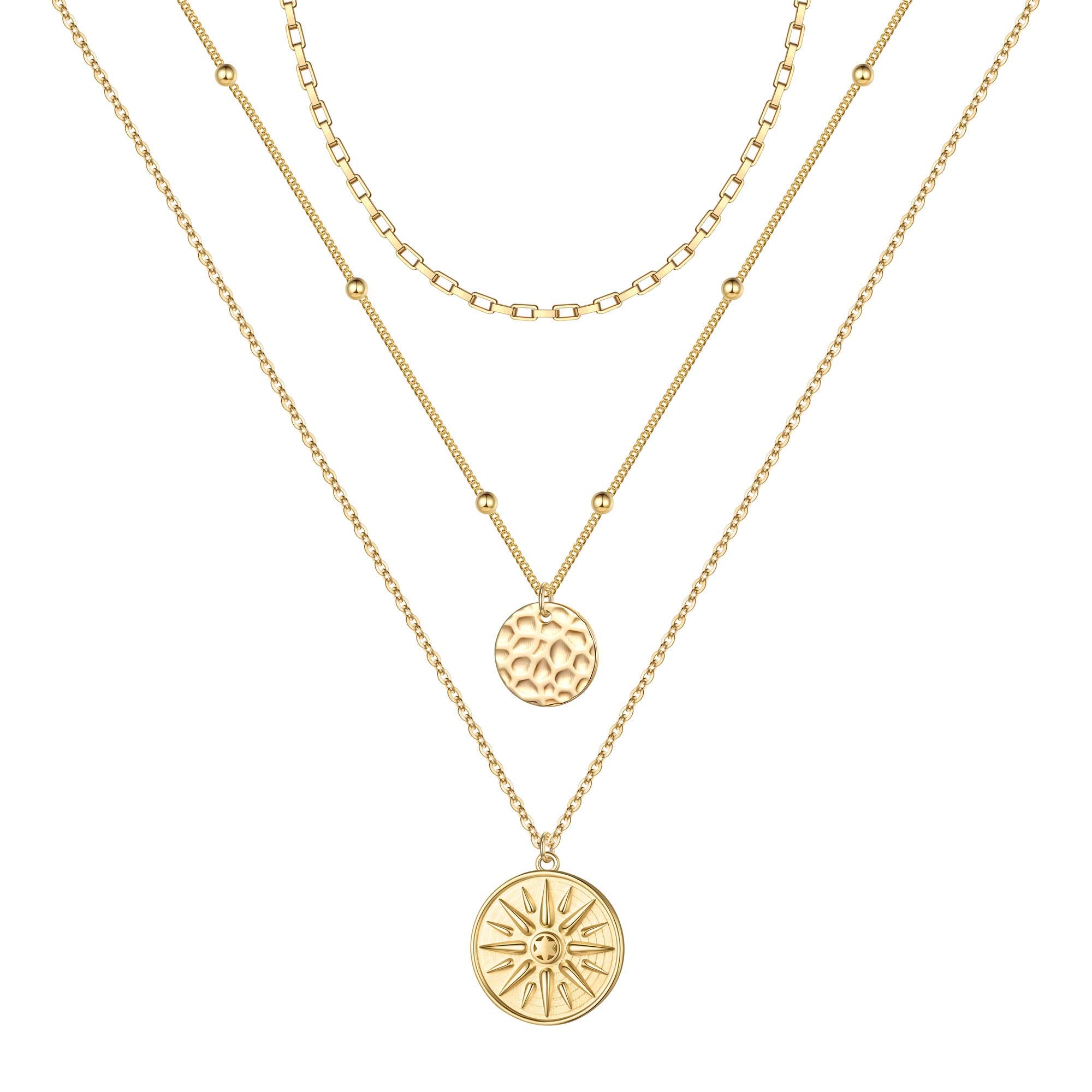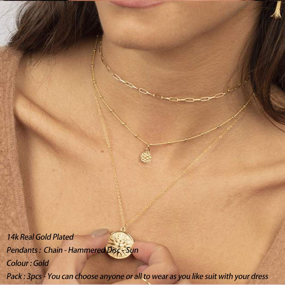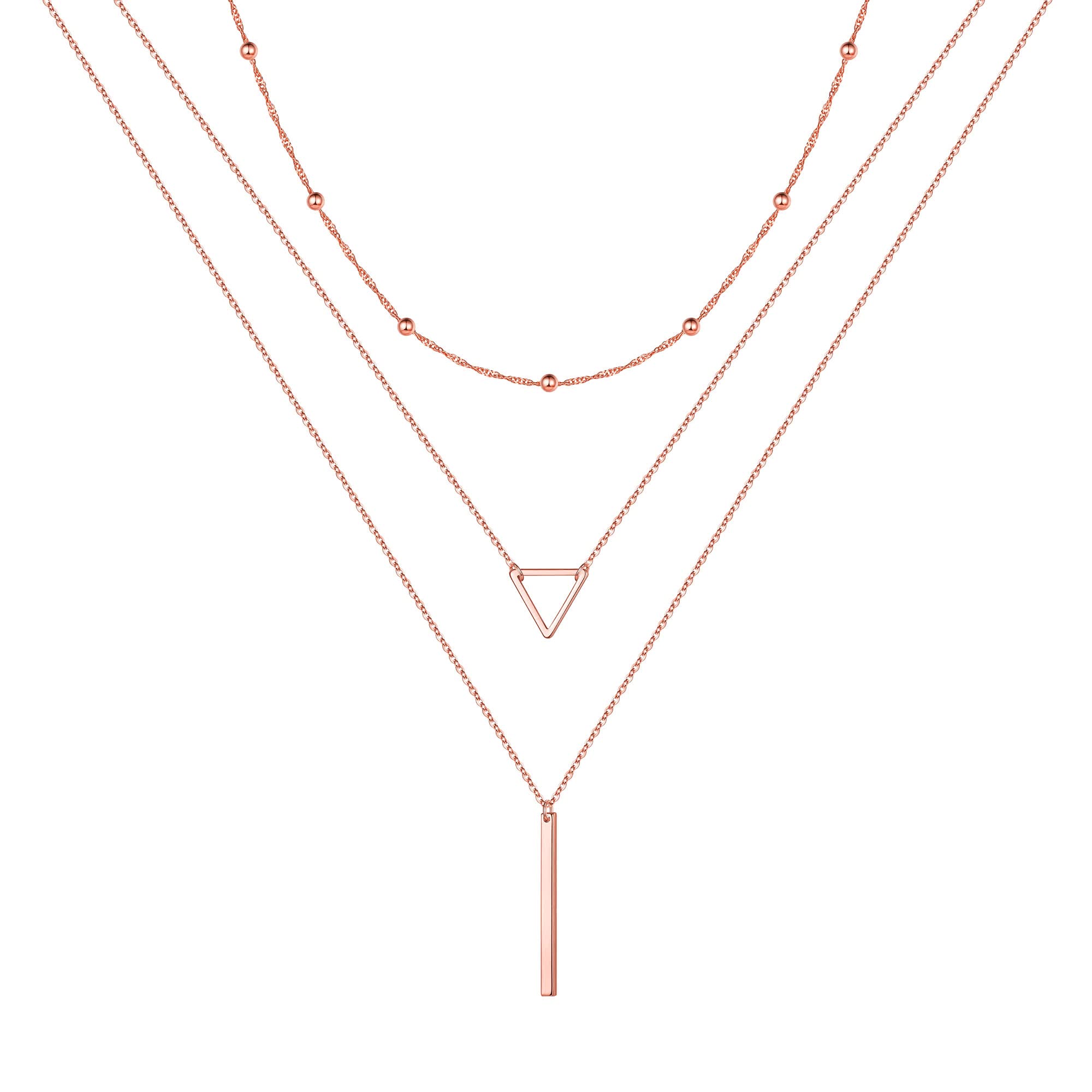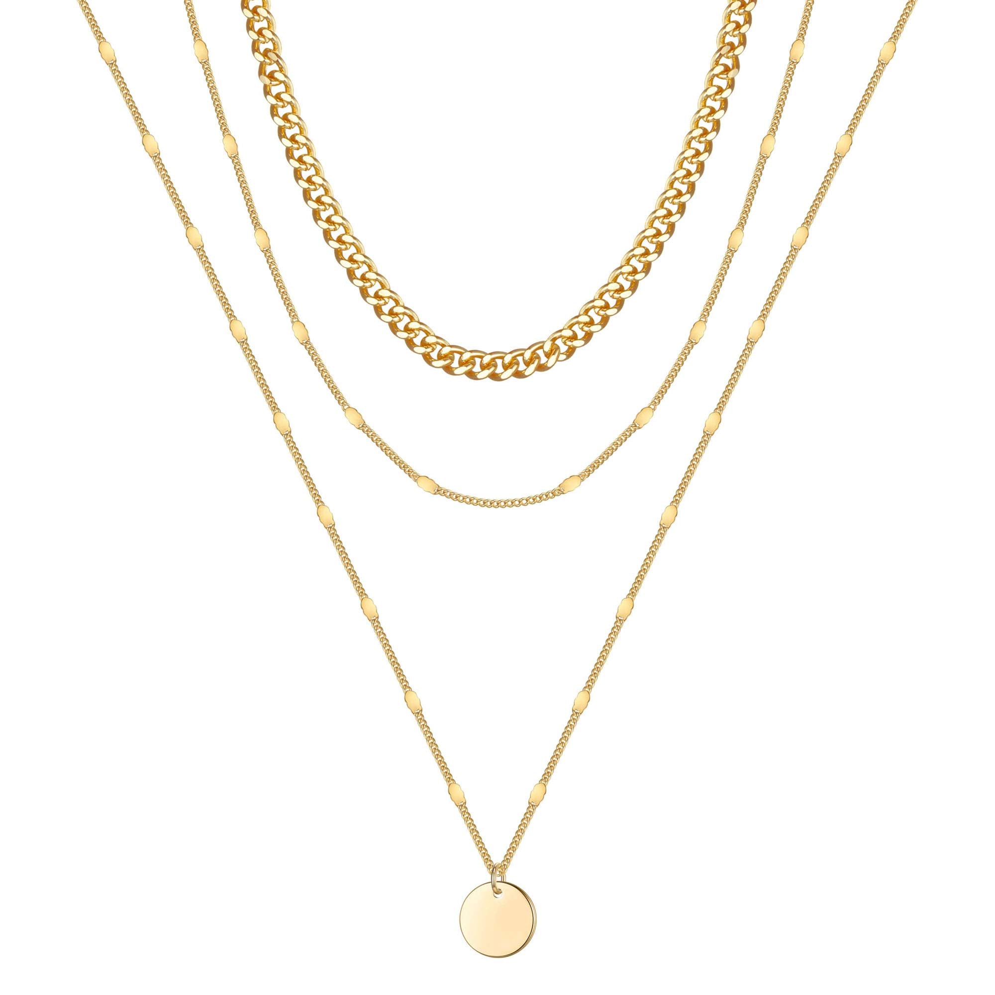 Turandoss Layered Silver Necklace for Women - 14K-White-Gold-Plated Crescent Layered Choker Necklace for Women Layering Necklace Silver Necklace for Women Silver Jewelry