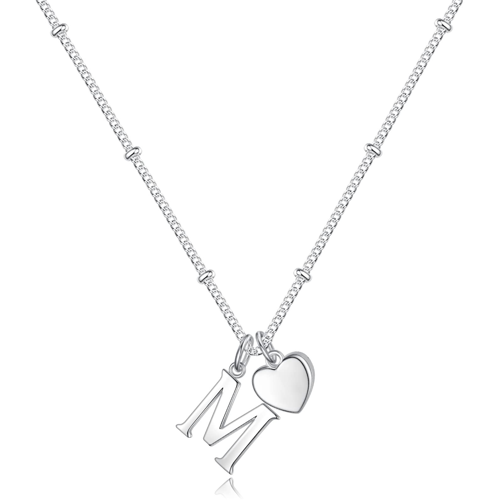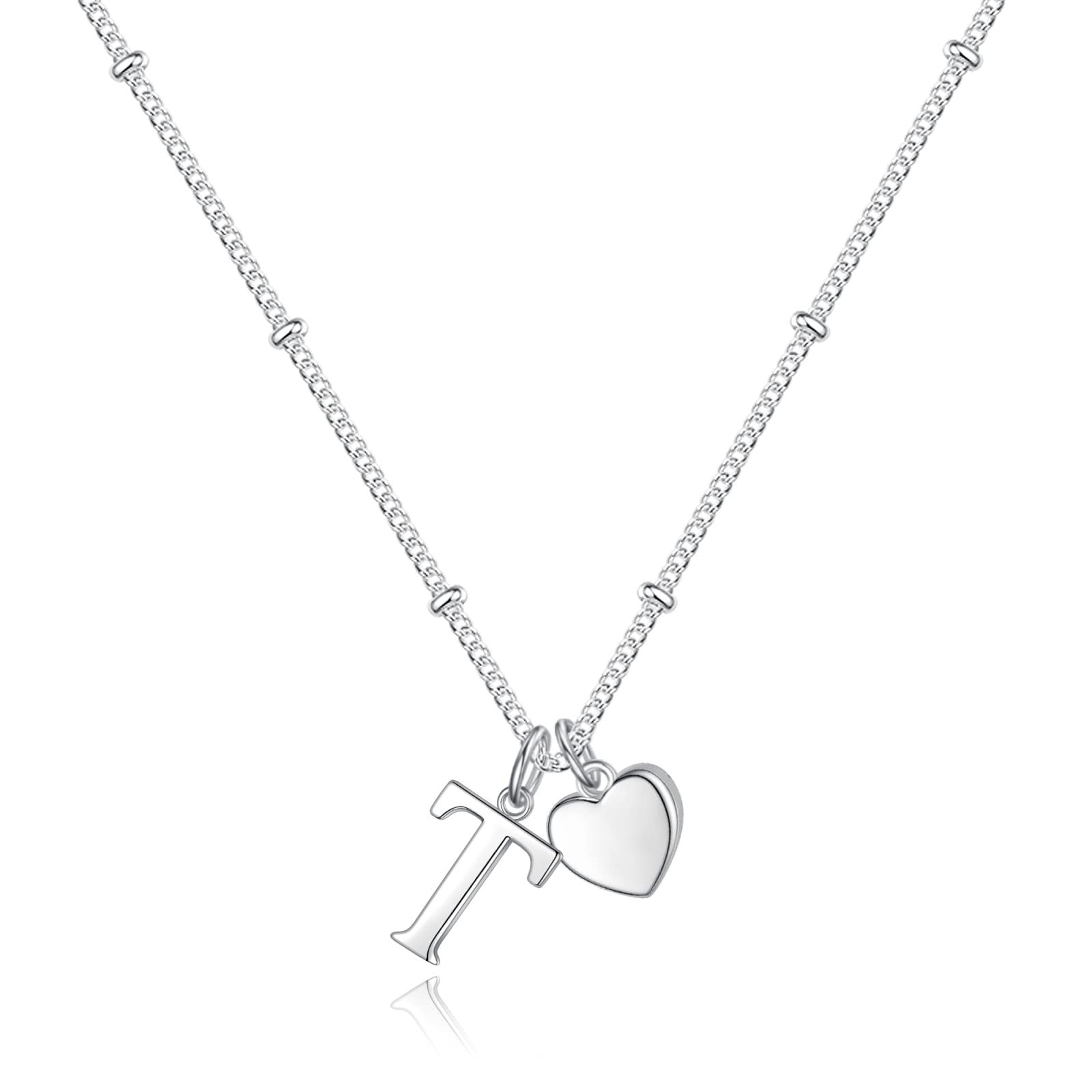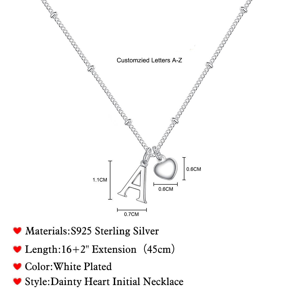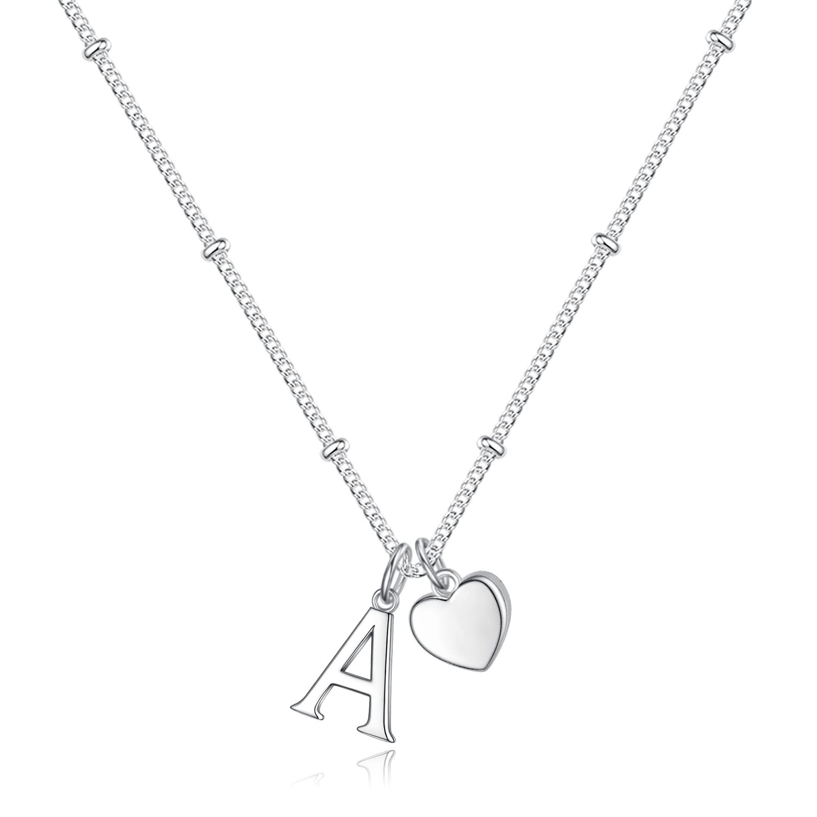 Turandoss Silver Plated Silver Dainty Heart Chain Necklaces for Women Girls, Simple Pendant Charm Initial Necklace, Tiny Letter A Jewelry Gifts for Women Girls Birthday Ideas