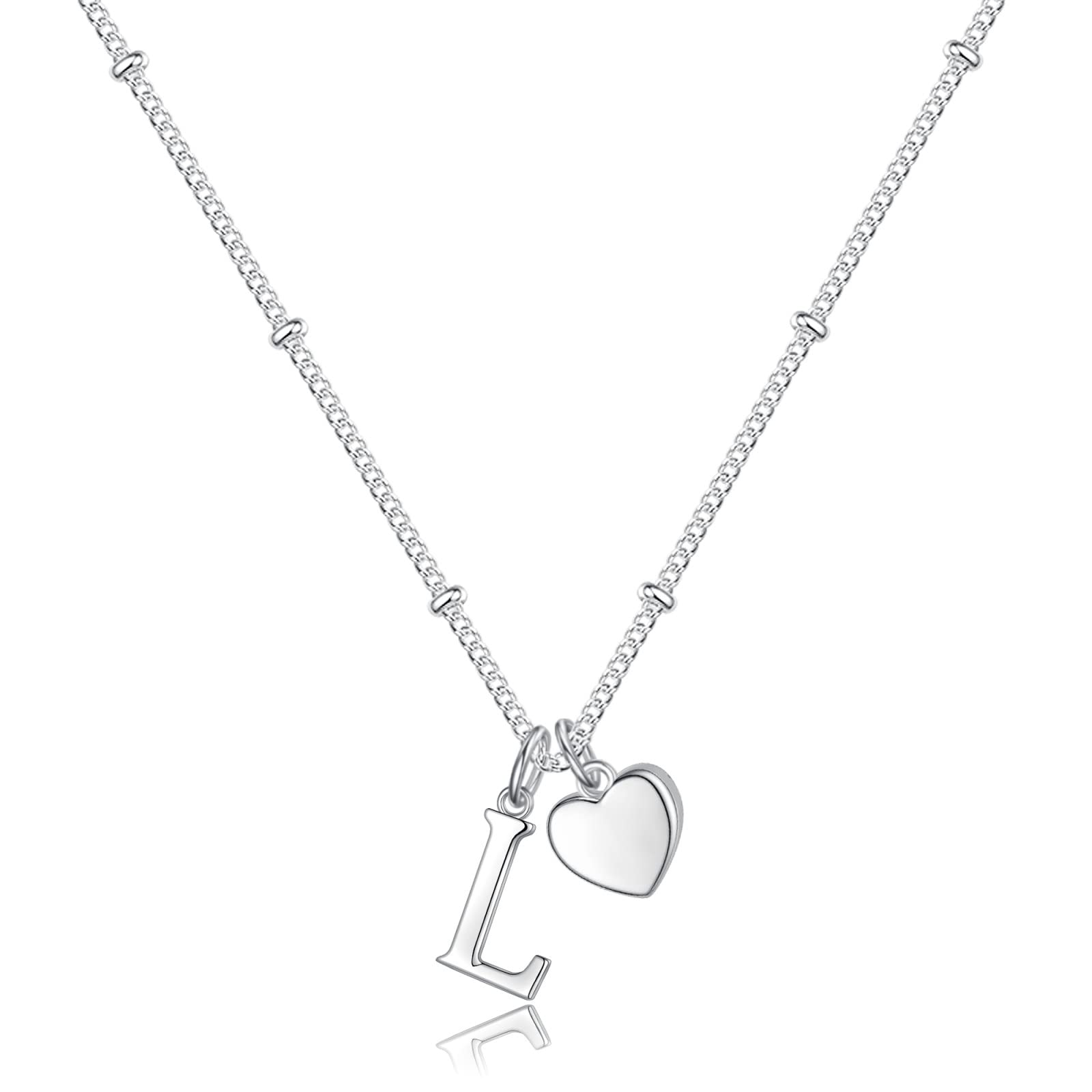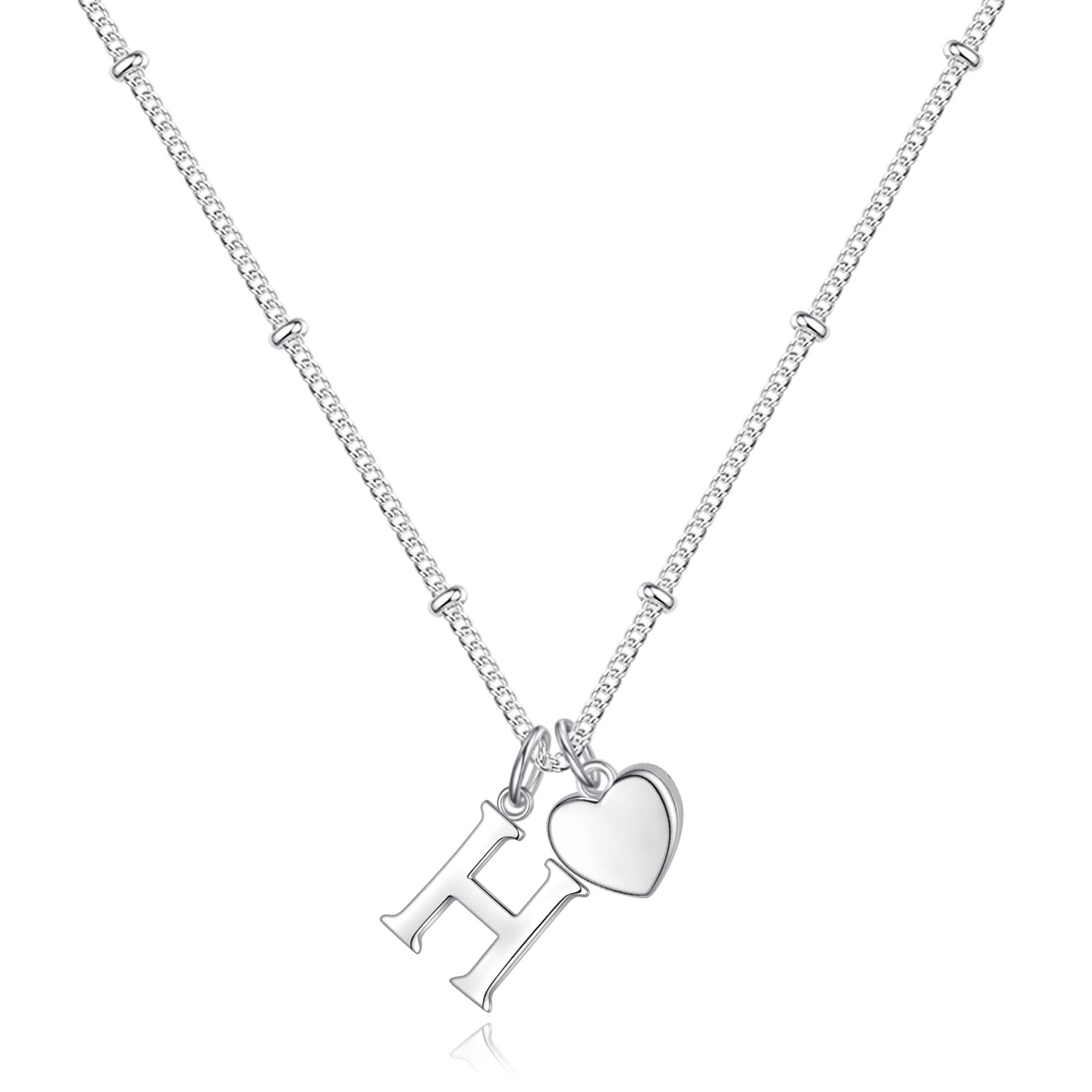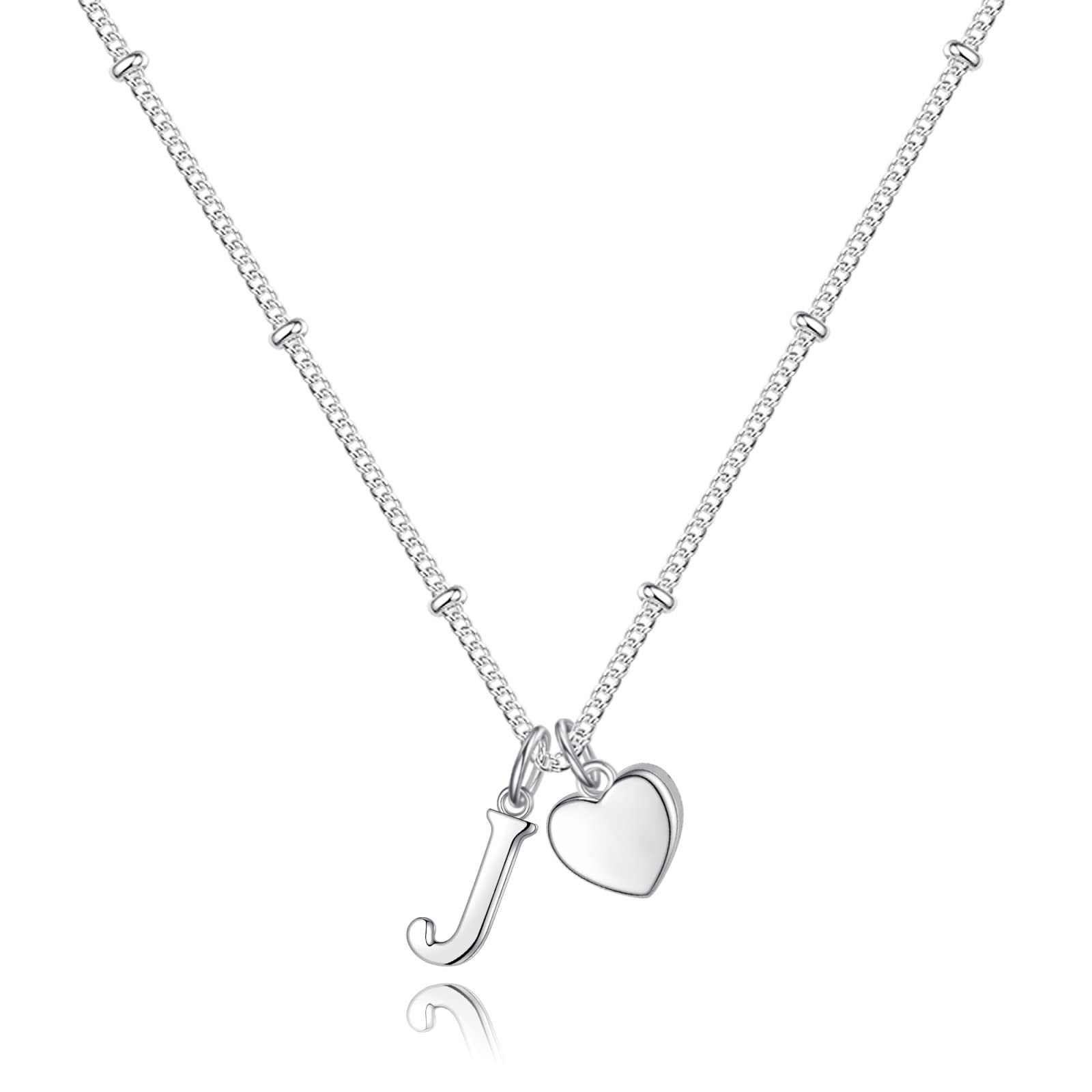 Turandoss Silver Plated Silver Dainty Heart Chain Necklaces for Women Girls, Simple Pendant Charm Initial Necklace, Tiny Letter A Jewelry Gifts for Women Girls Birthday Ideas