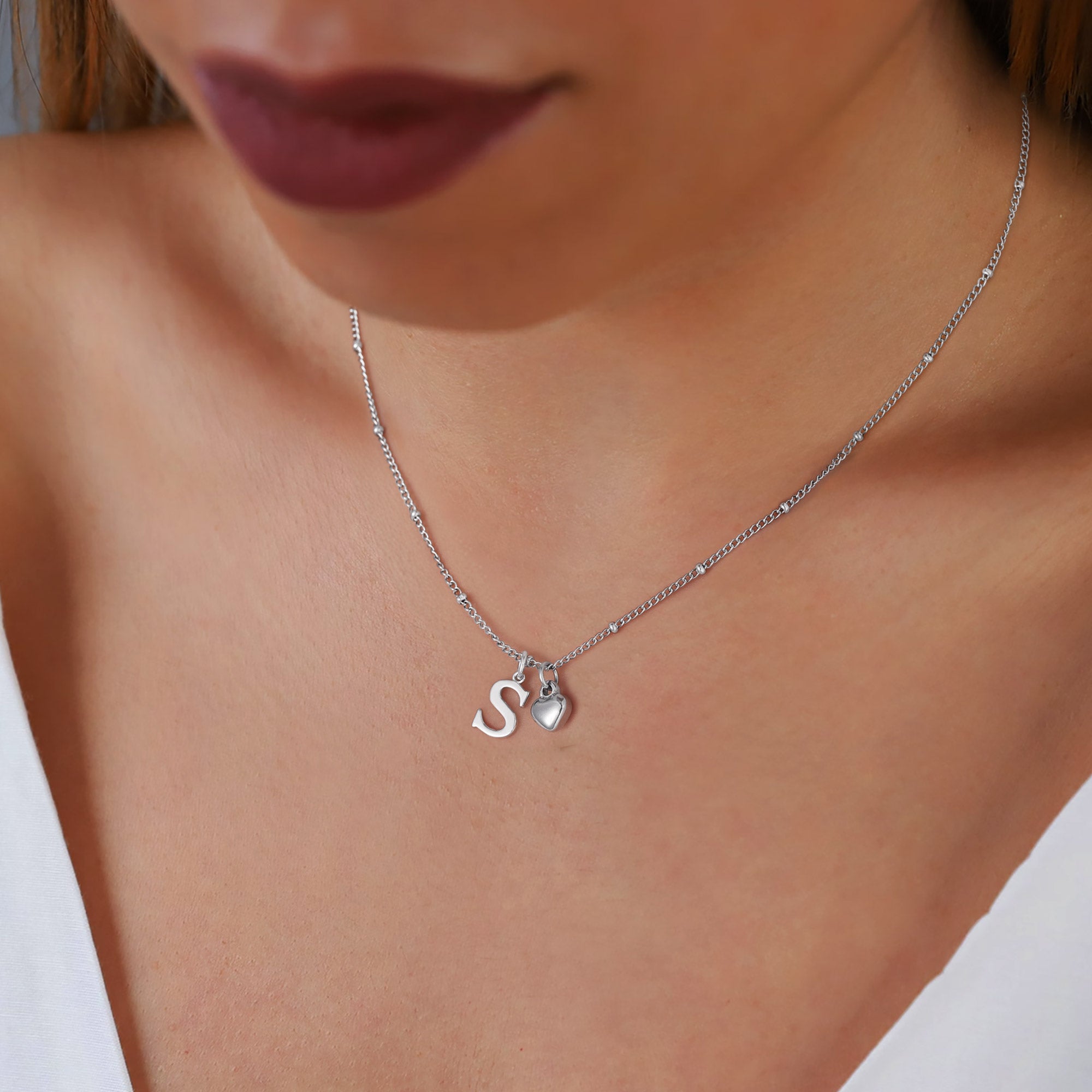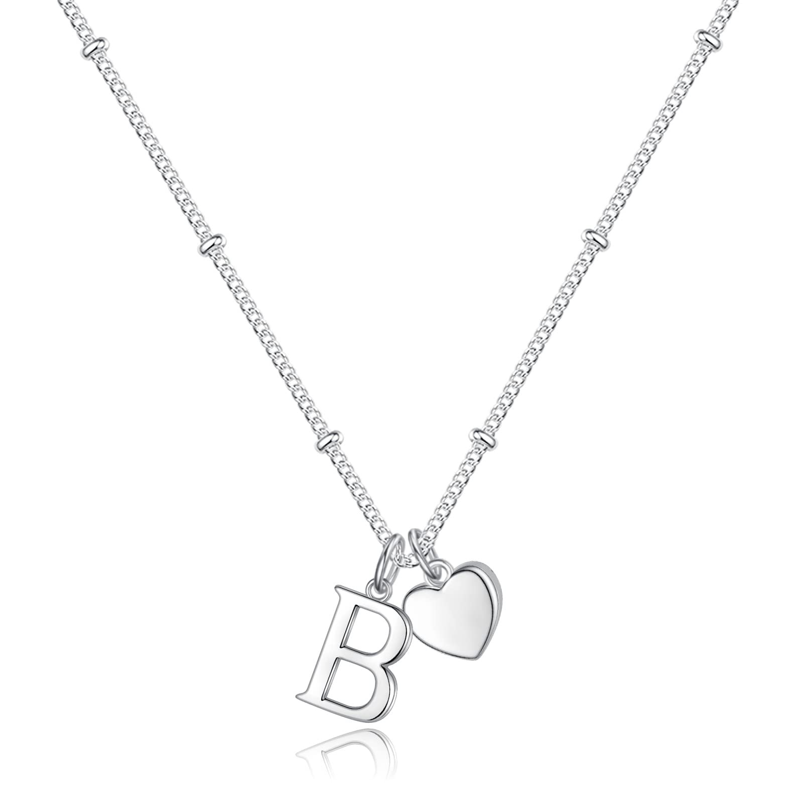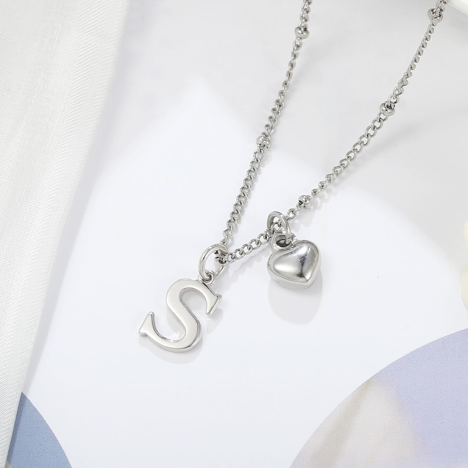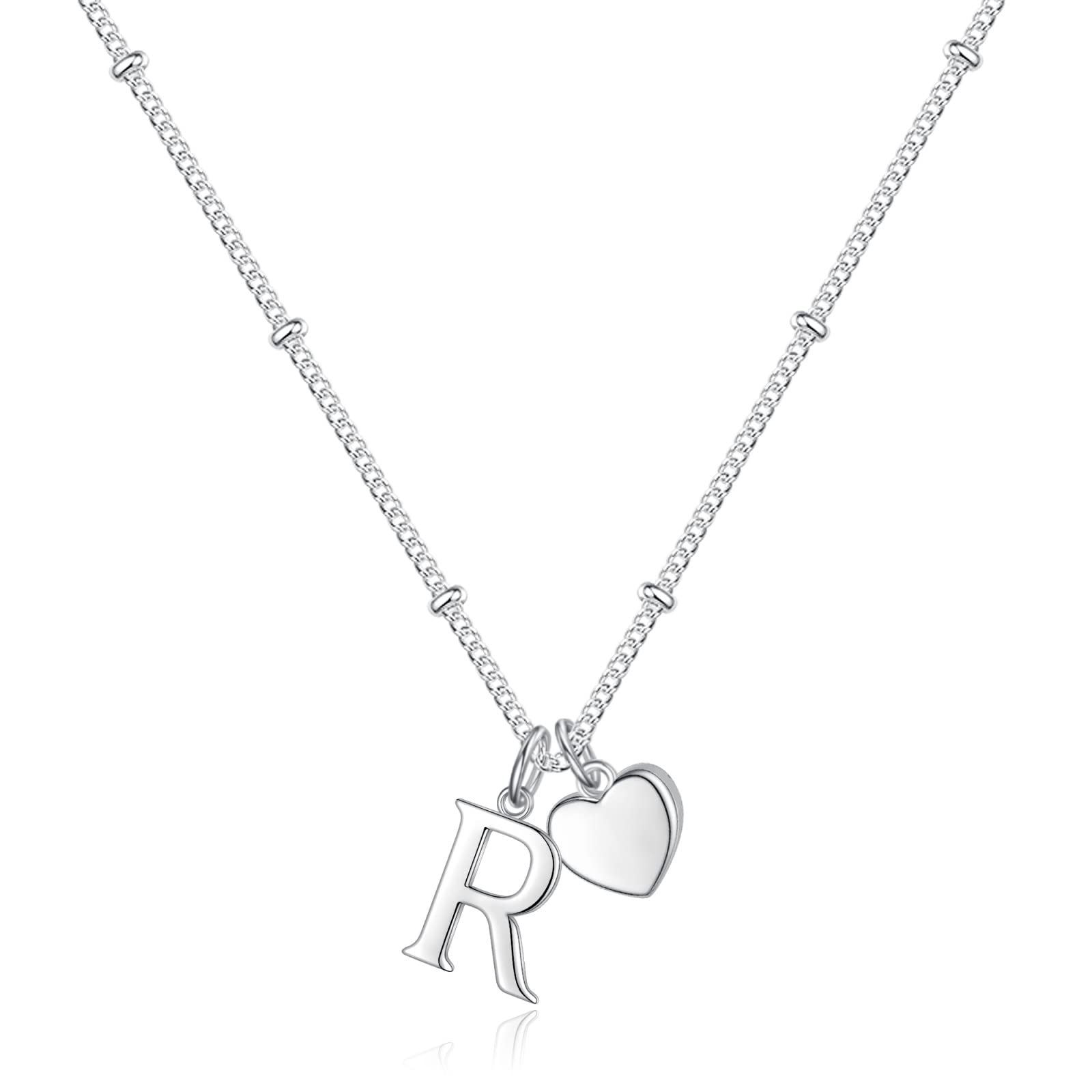 Turandoss Silver Plated Silver Dainty Heart Chain Necklaces for Women Girls, Simple Pendant Charm Initial Necklace, Tiny Letter A Jewelry Gifts for Women Girls Birthday Ideas
