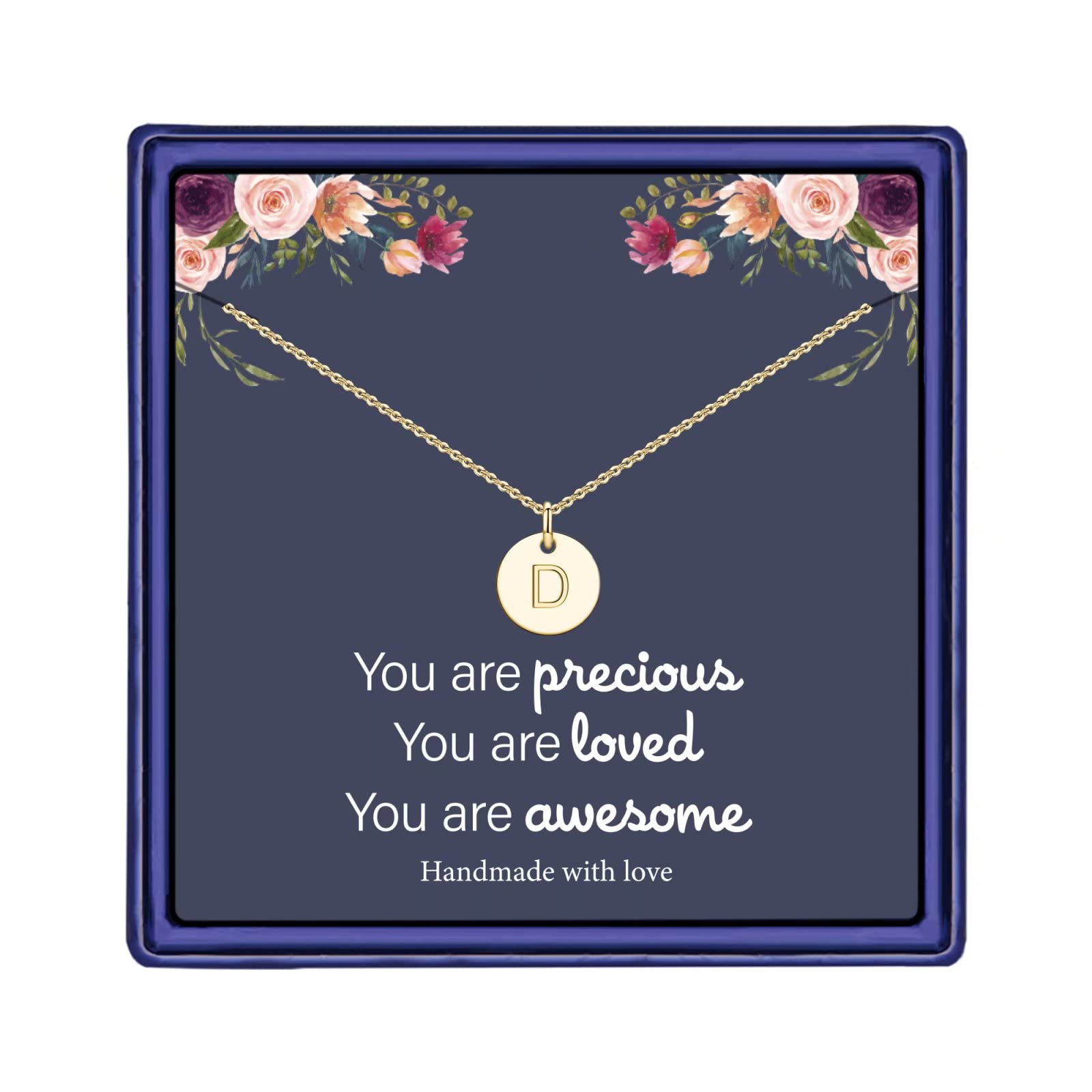 Turandoss Dainty Disc Pendant 14K Gold Plated Tiny Initial Necklace for Women Girls Letter A-Z Cute Jewelry Personalized Birthday Gifts Gifts for Women Her Wife