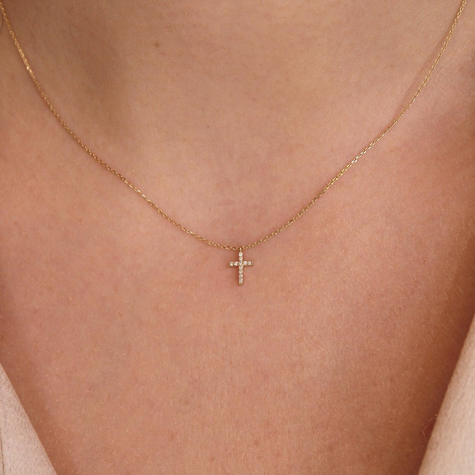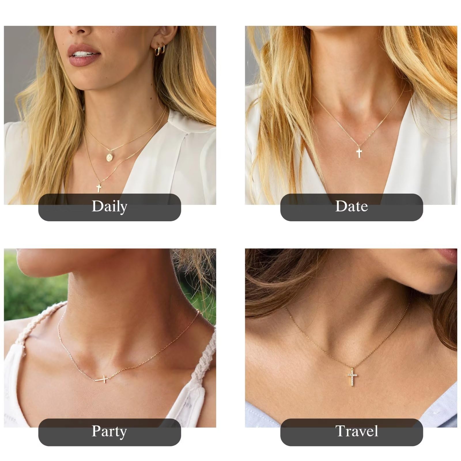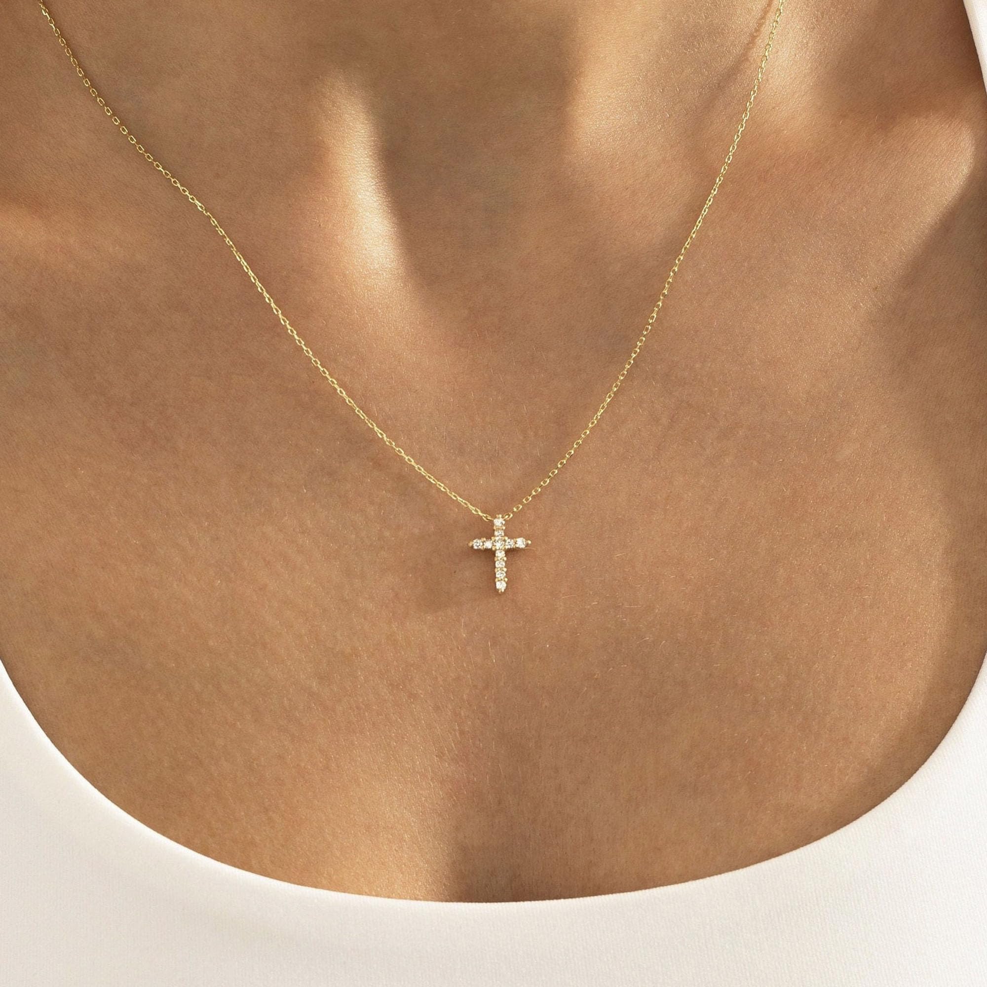 Turandoss 14K Gold Plated Dainty Tiny Cross Pendant Necklace Women Faith Jewelry Trendy Personalizedt First Communion Christian Religious Baptism Gifts for Her Girls