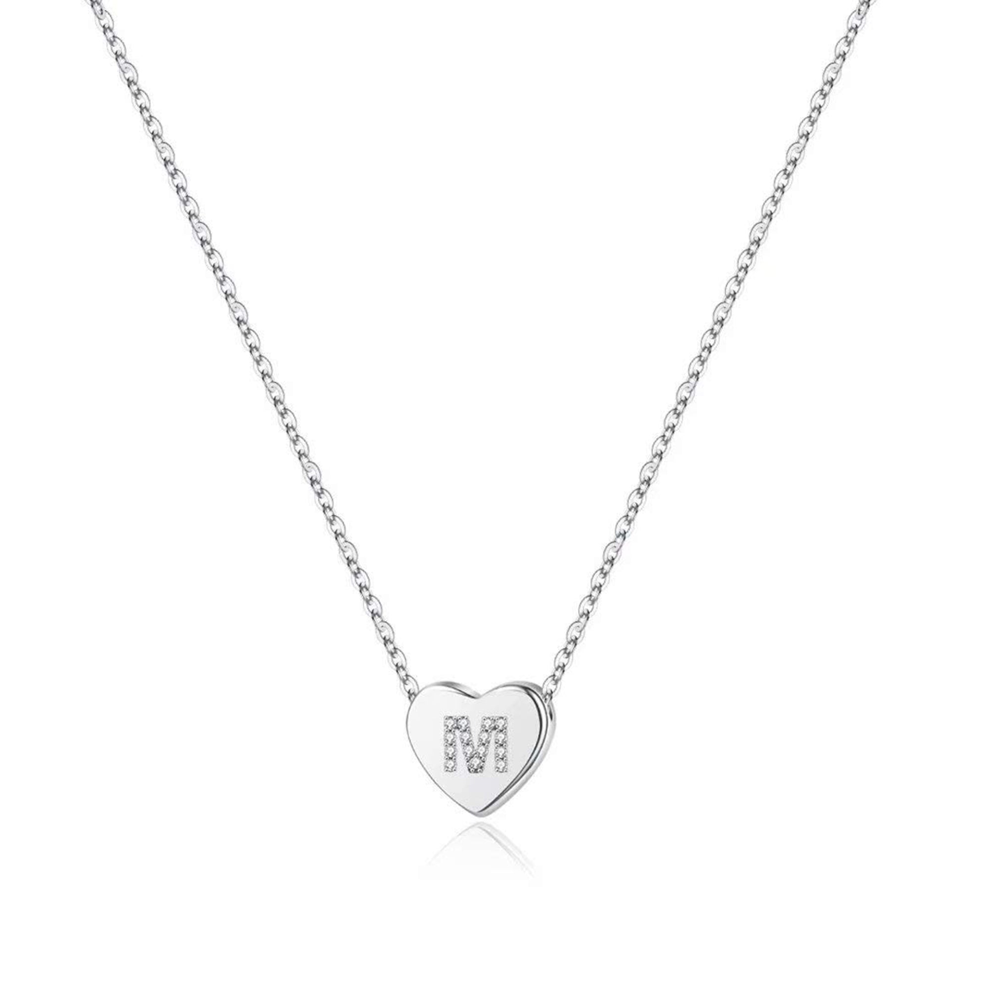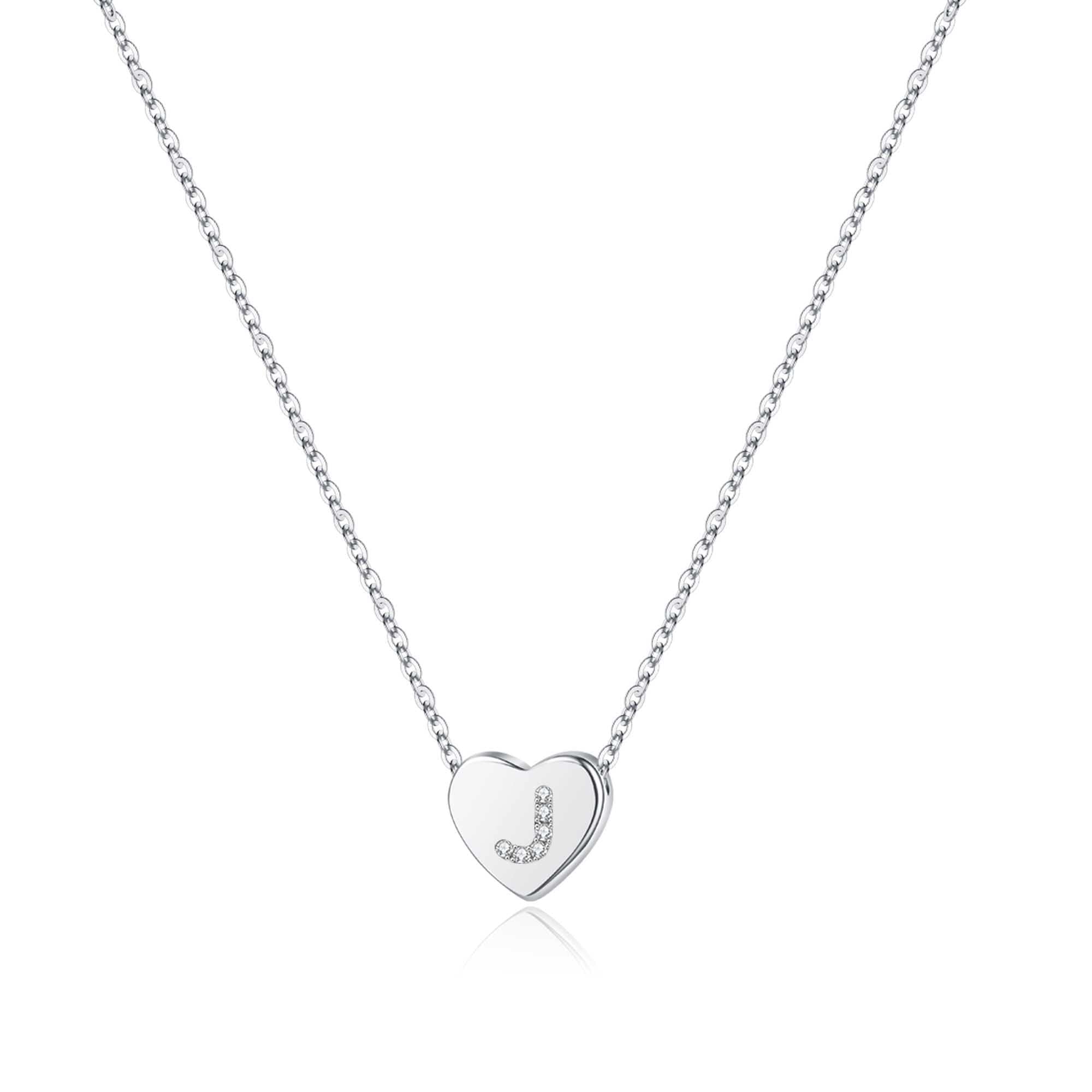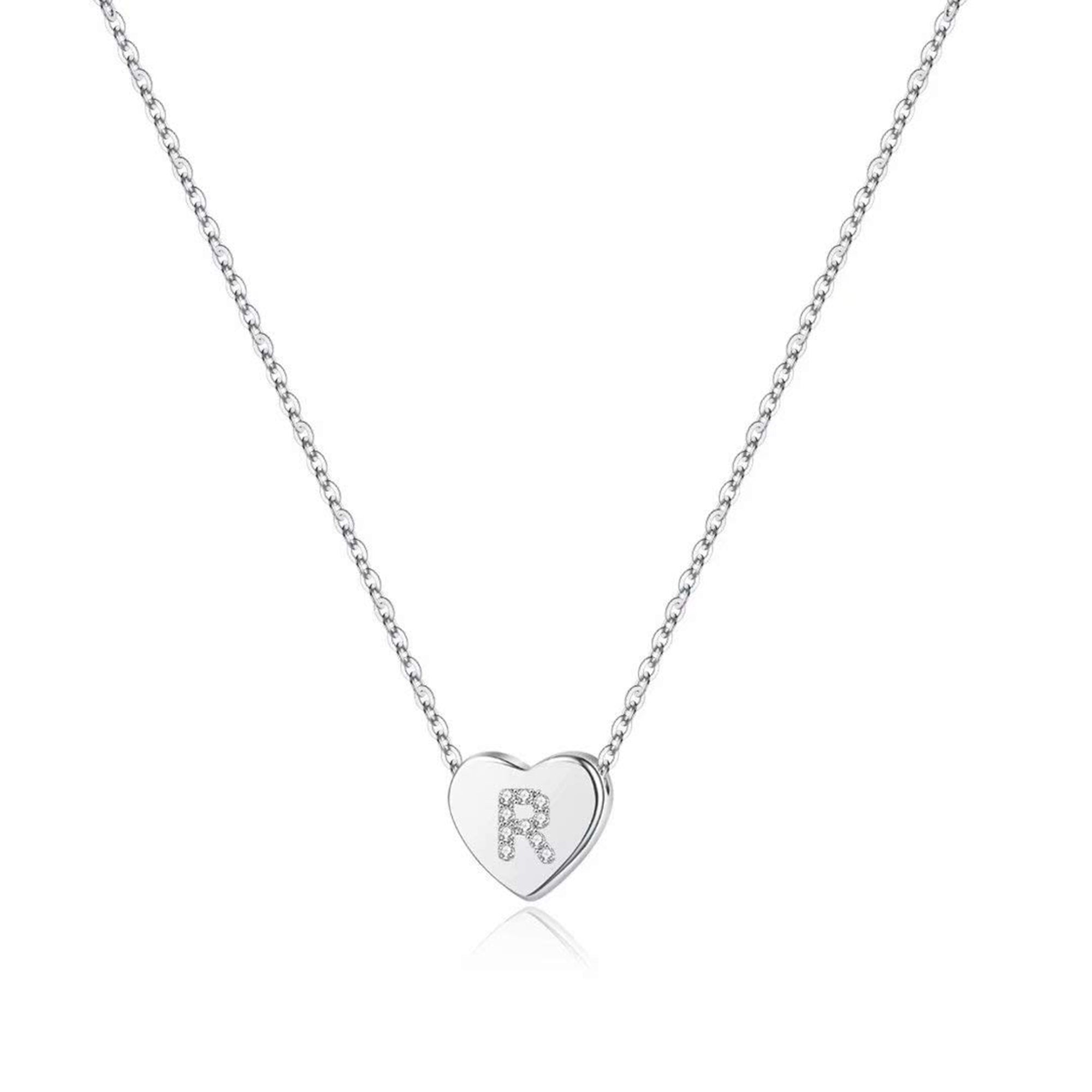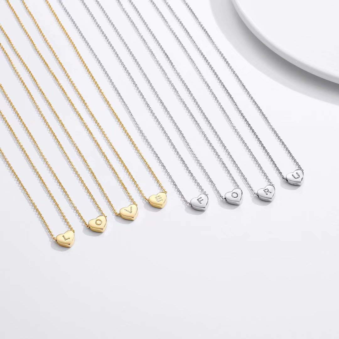 Turandoss 14K White Gold Plated Choker Cz Tiny Heart Name Pendant Necklace for Women Girls Kids Letter A-Z Cute Jewelry Personalized Birthday Gifts Gifts for Women Teen Girls