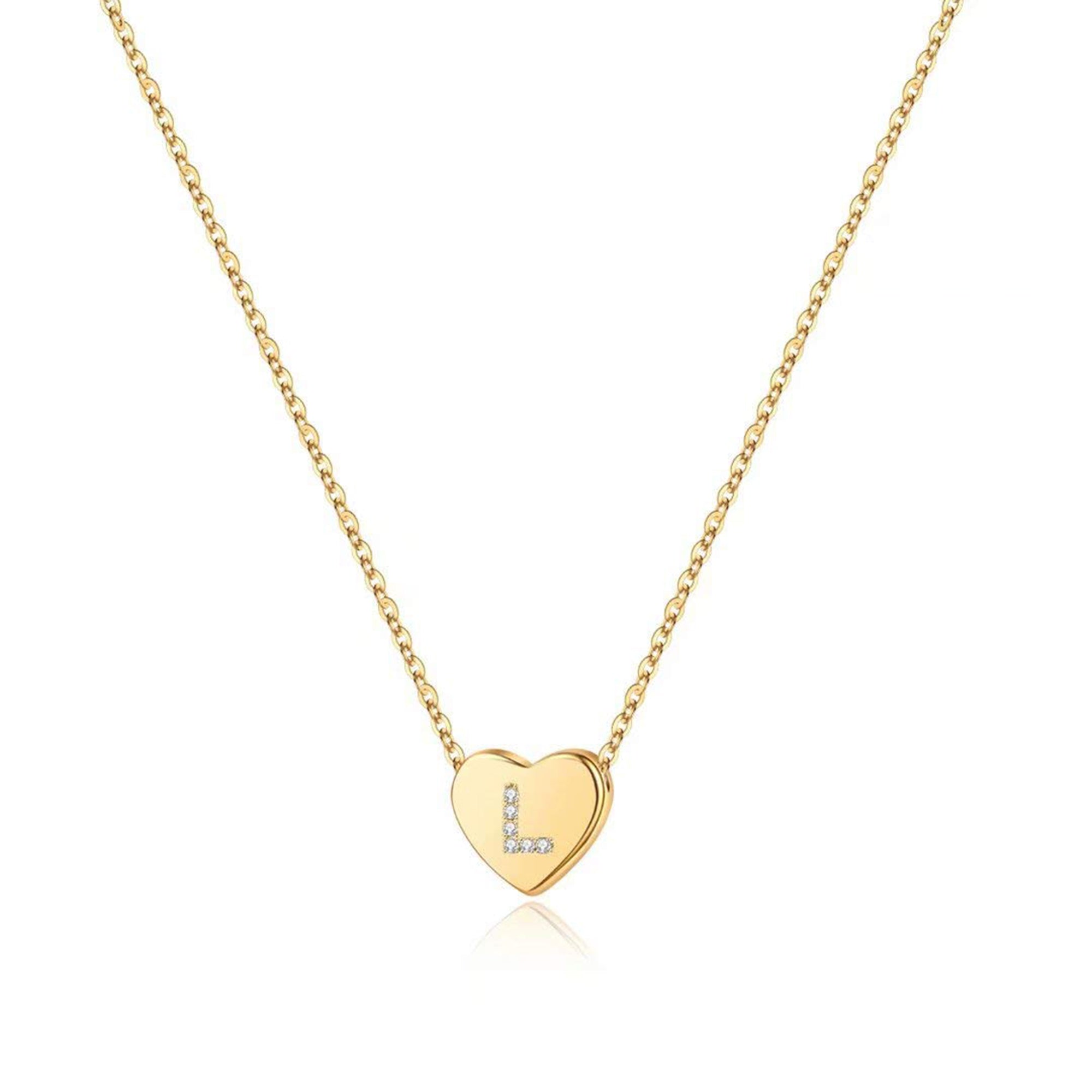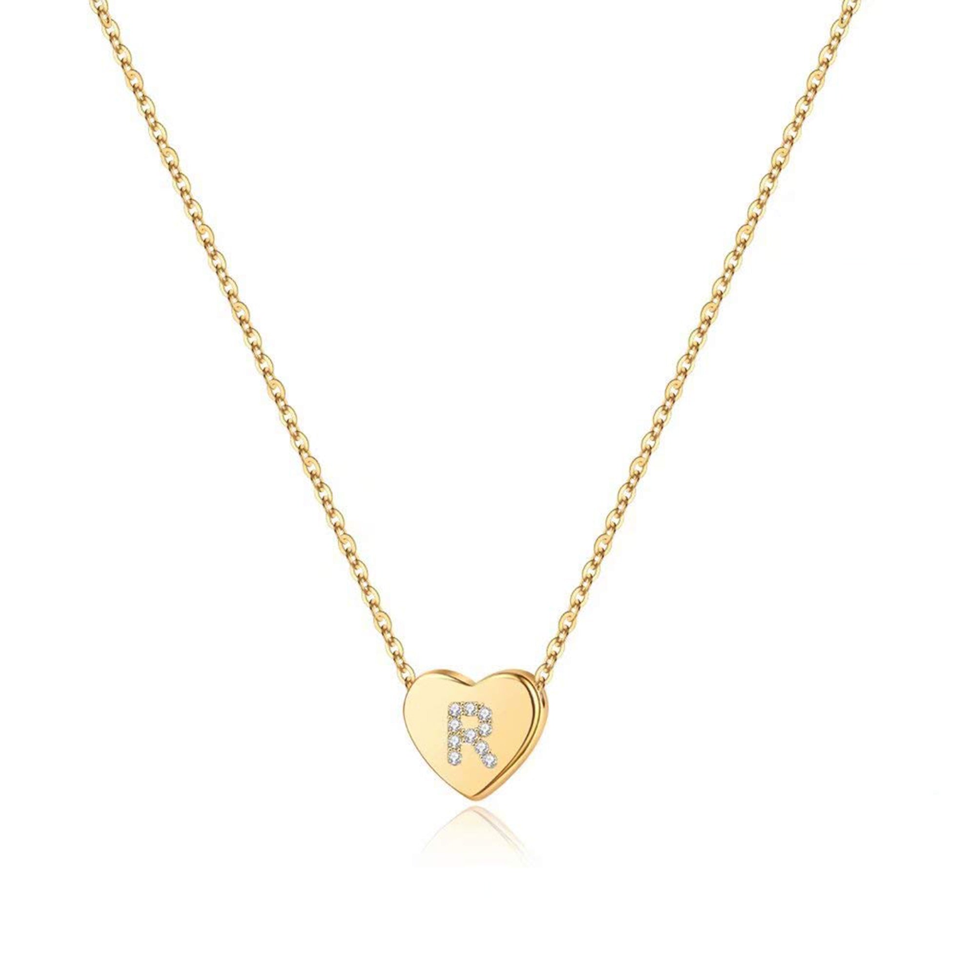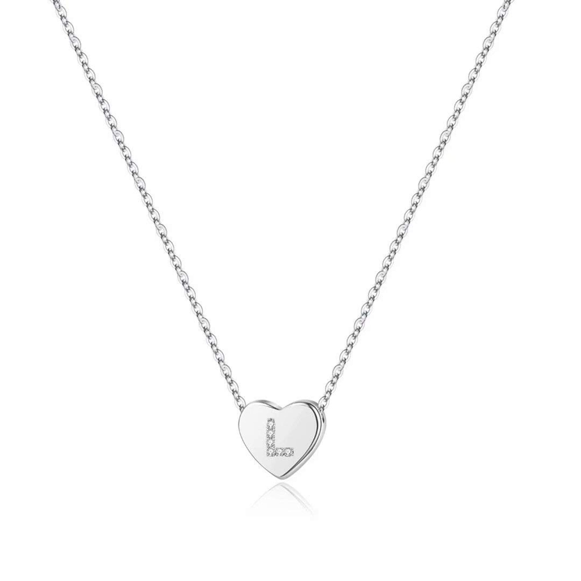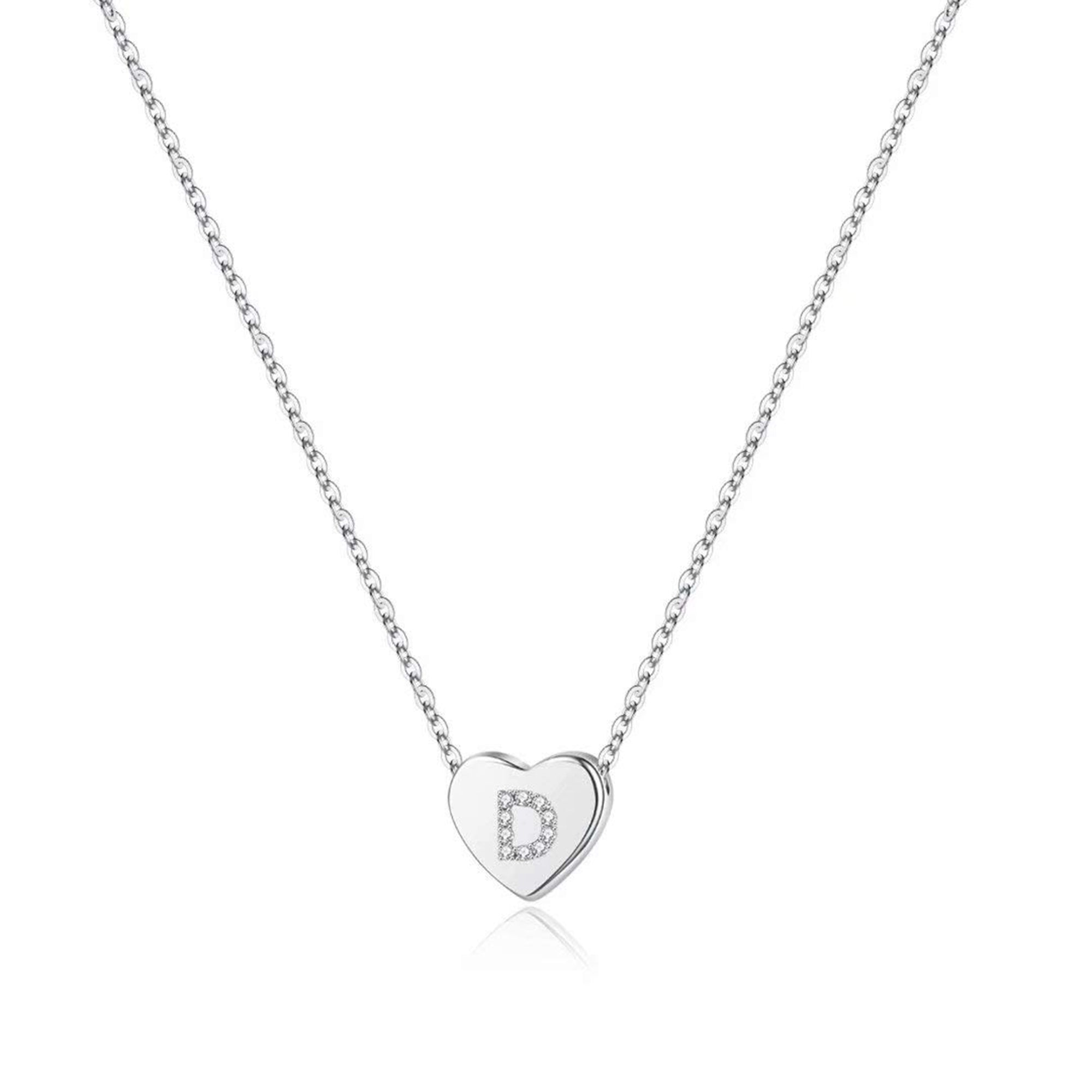 Turandoss 14K White Gold Plated Choker Cz Tiny Heart Name Pendant Necklace for Women Girls Kids Letter A-Z Cute Jewelry Personalized Birthday Gifts Gifts for Women Teen Girls