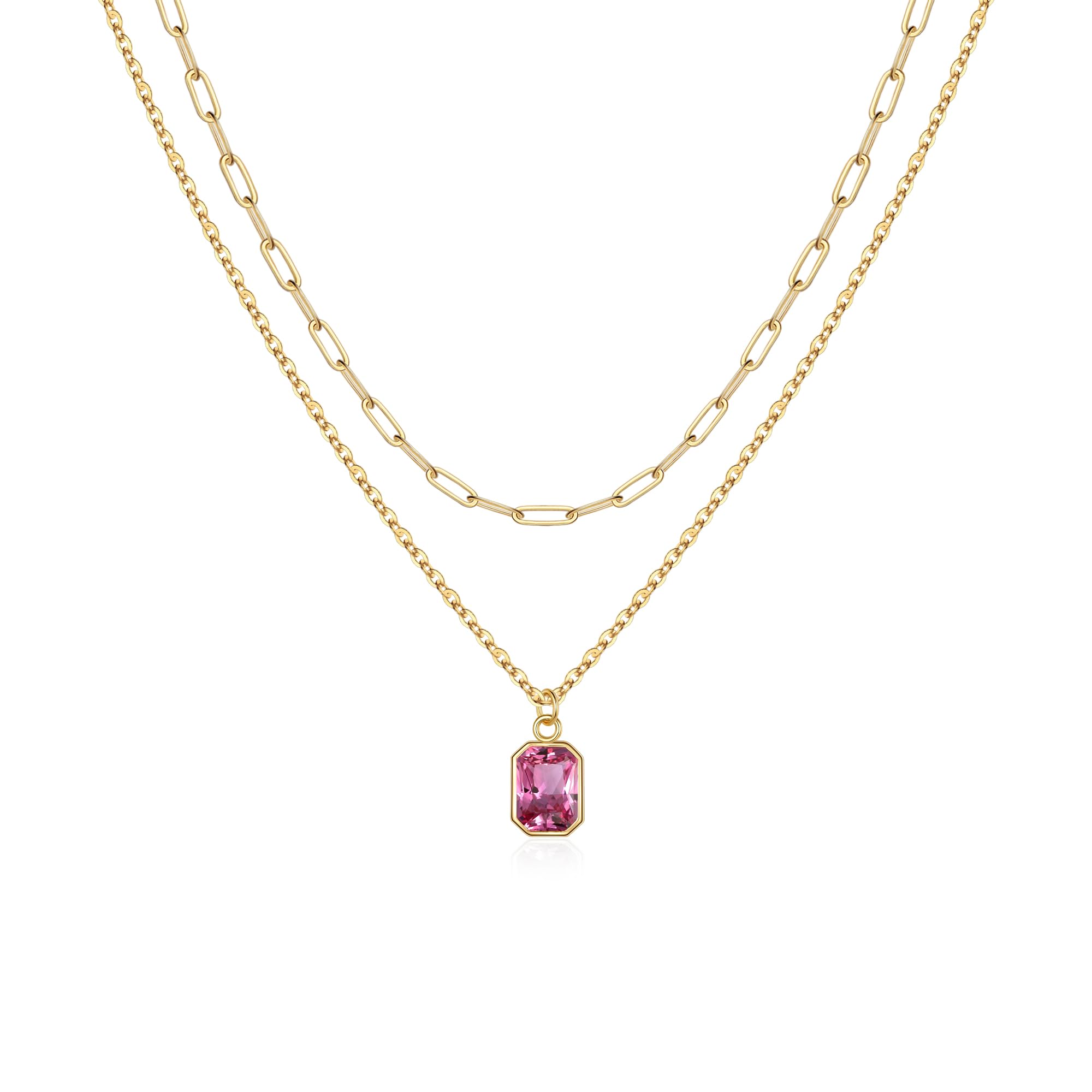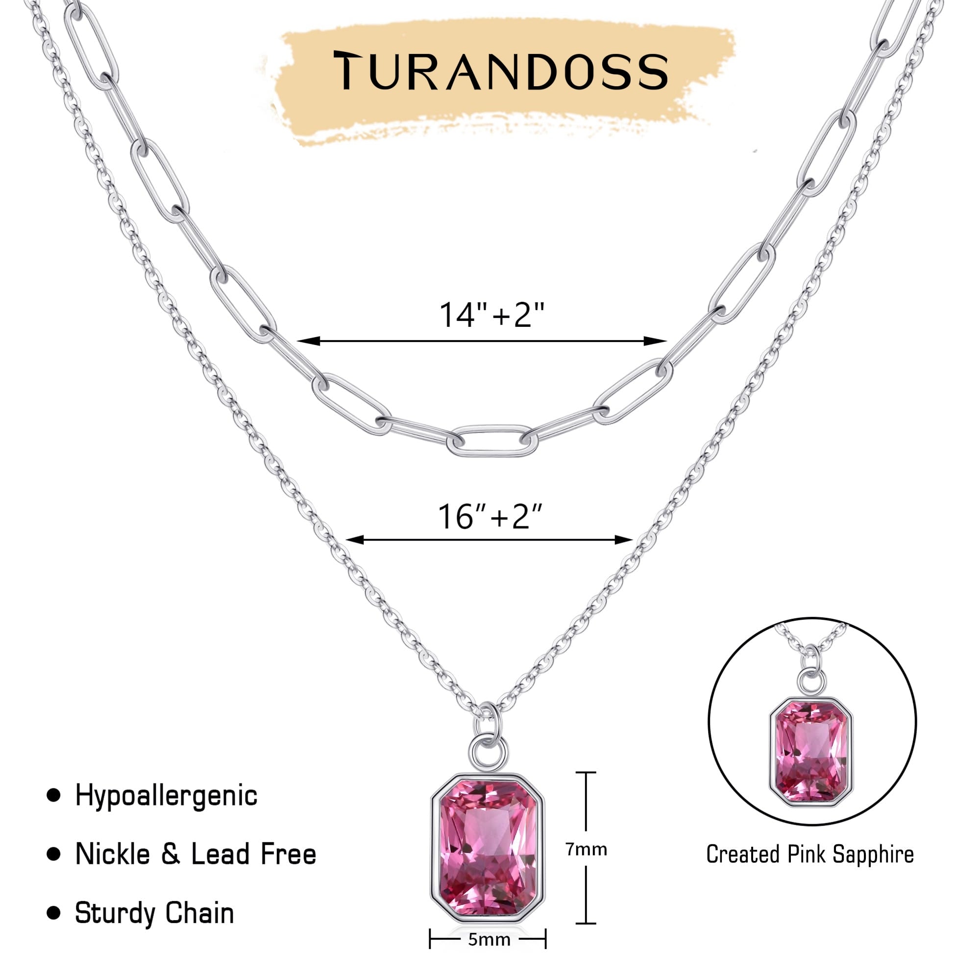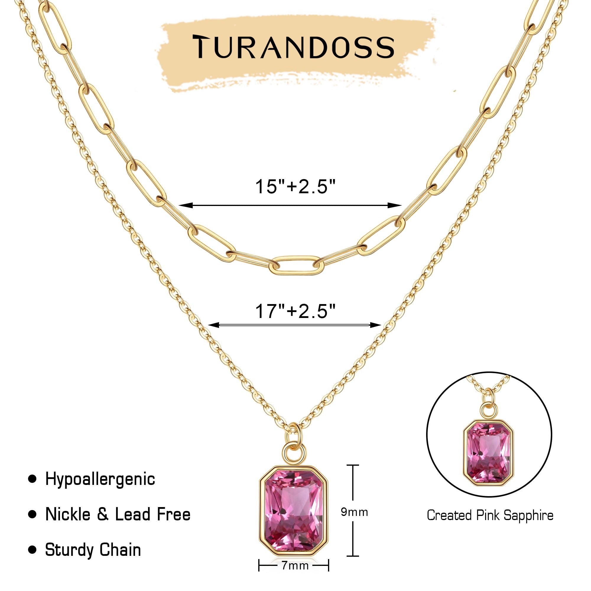 Turandoss Birthstone Necklace for Women, Pink Necklaces for Women October Birthstone Necklace Pink Sapphire Gold-Plated Layered Necklaces Personalized Birthday Gifts