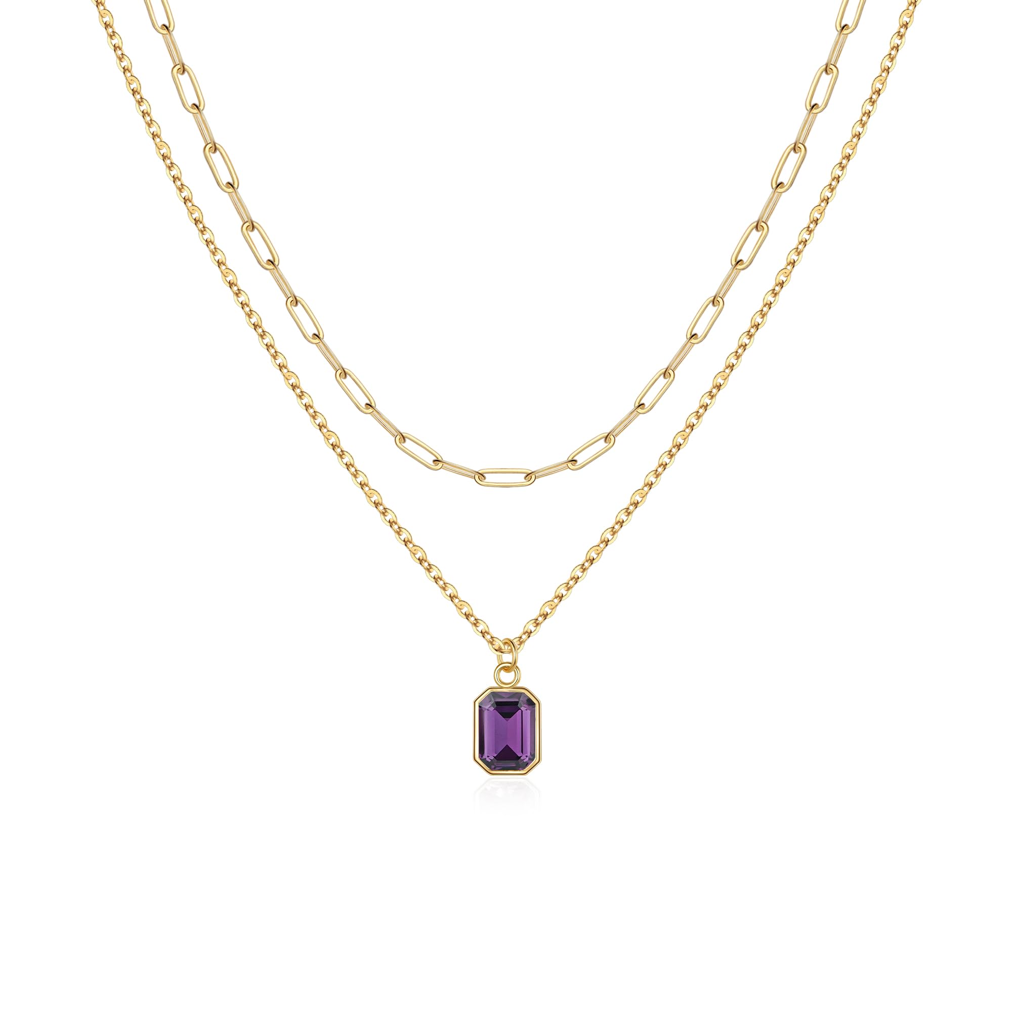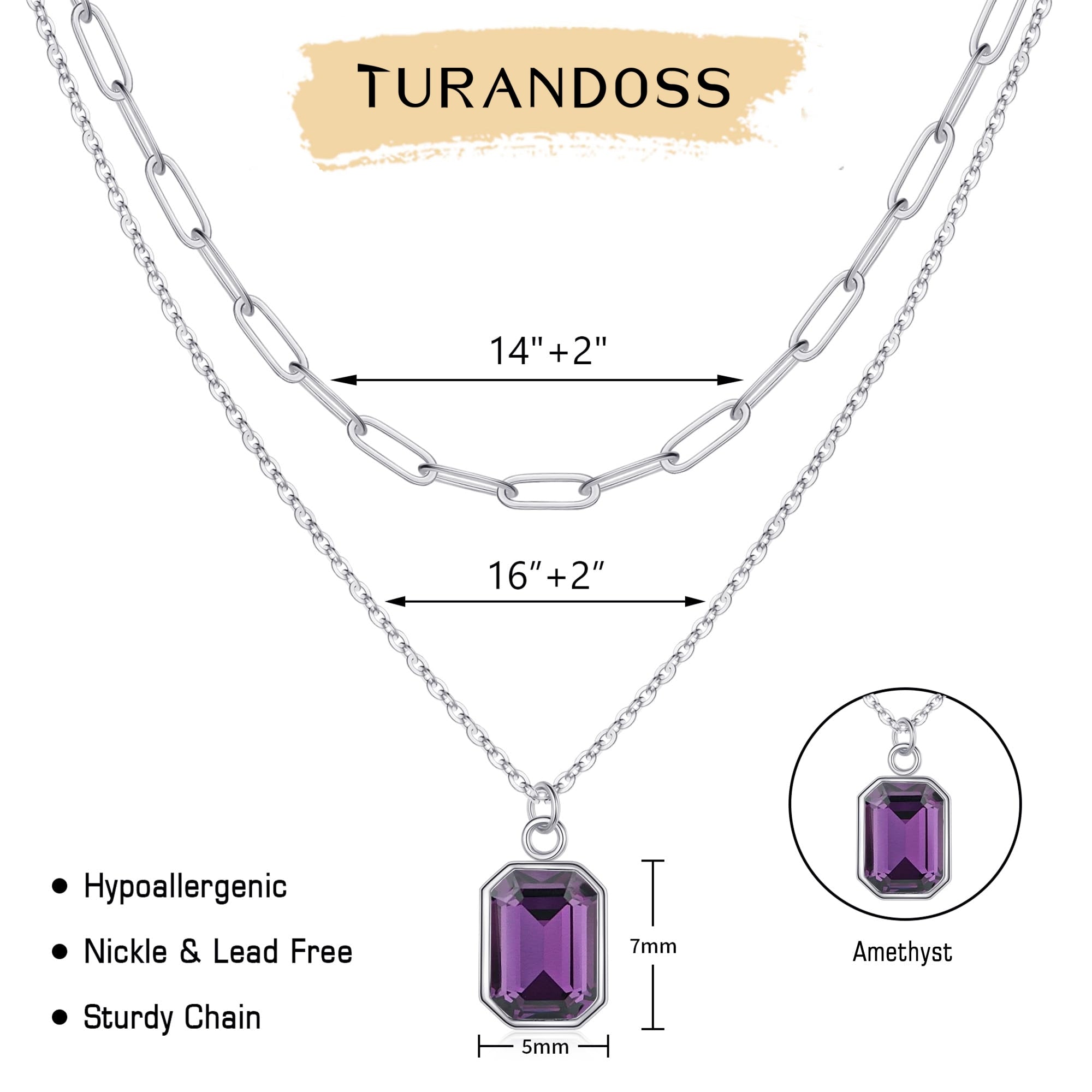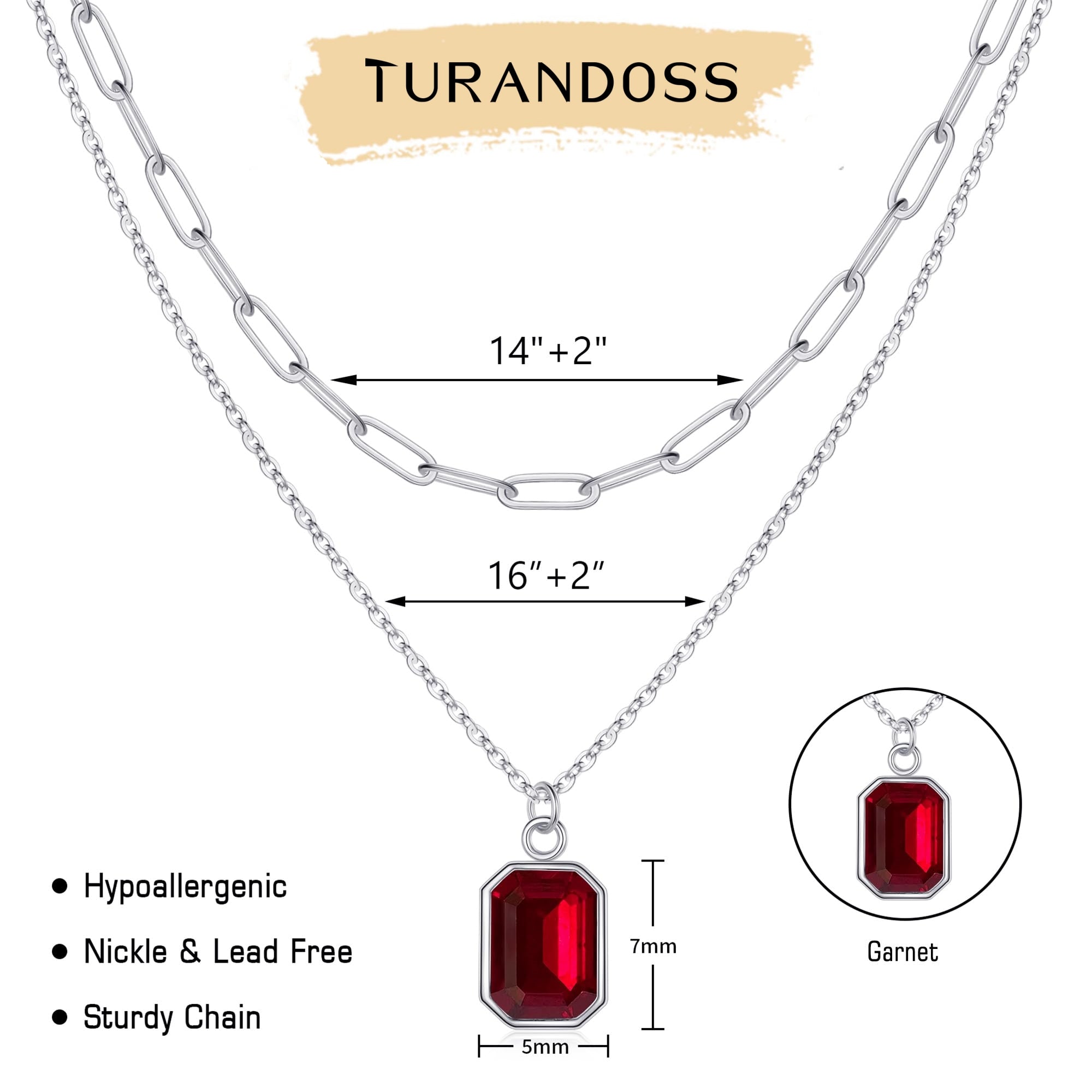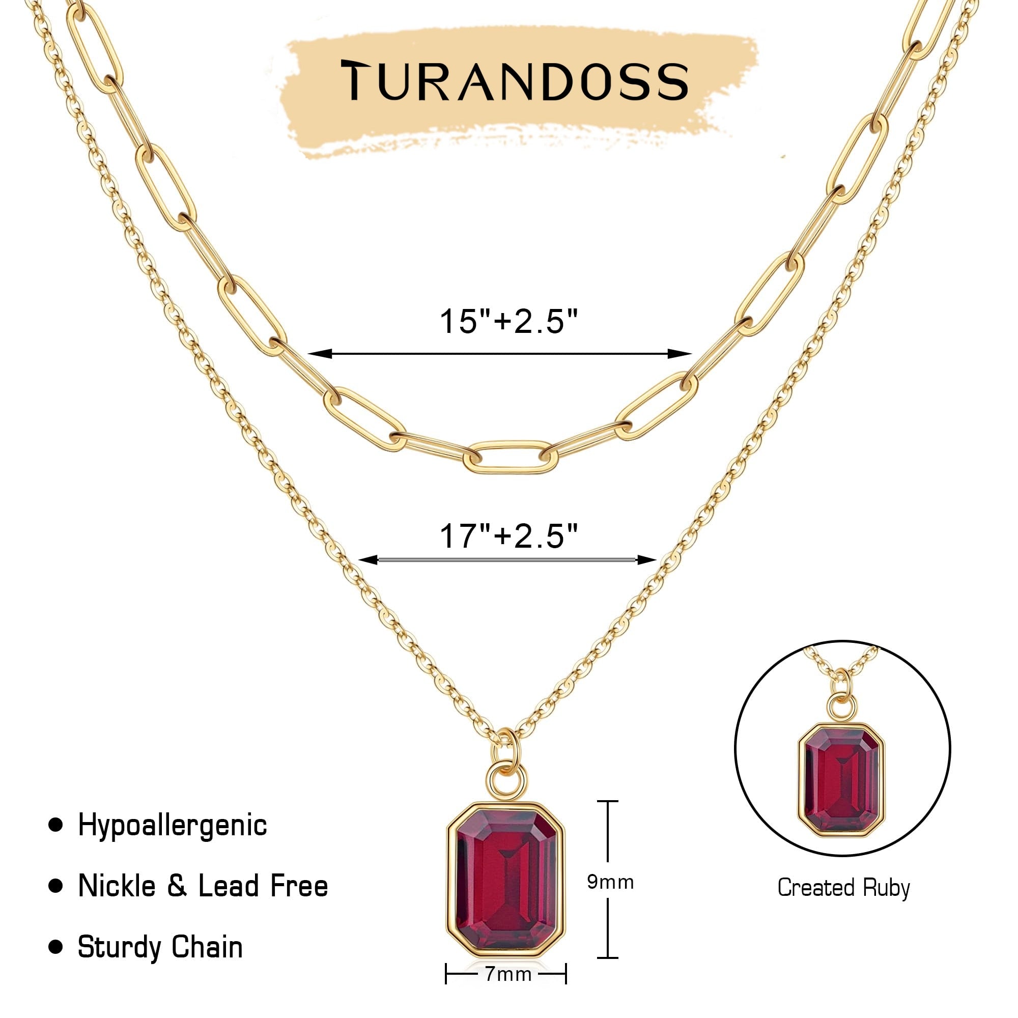 Turandoss Birthstone Necklace for Women, Pink Necklaces for Women October Birthstone Necklace Pink Sapphire Gold-Plated Layered Necklaces Personalized Birthday Gifts
