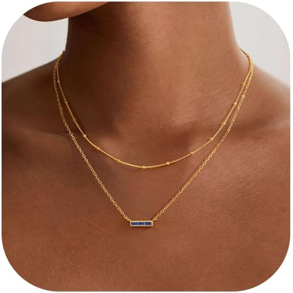 Turandoss Layered Birthstone Necklaces for Women Girls, Dainty 14K Gold Plated October Created Pink Tourmaline Birthstone Pendant Necklaces, Trendy Birthday Jewelry Gifts for Women Mothers Girls