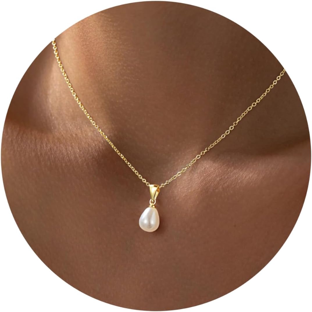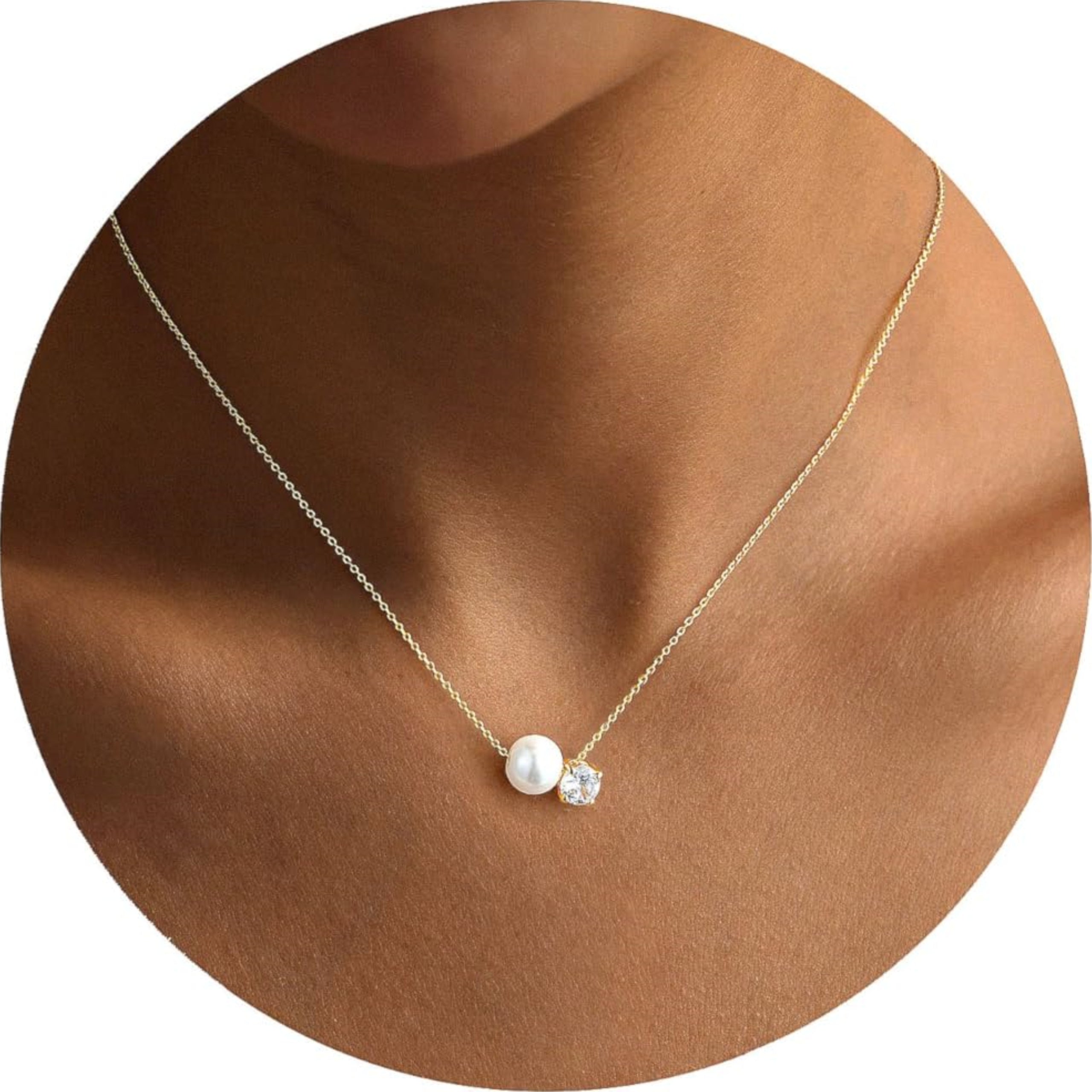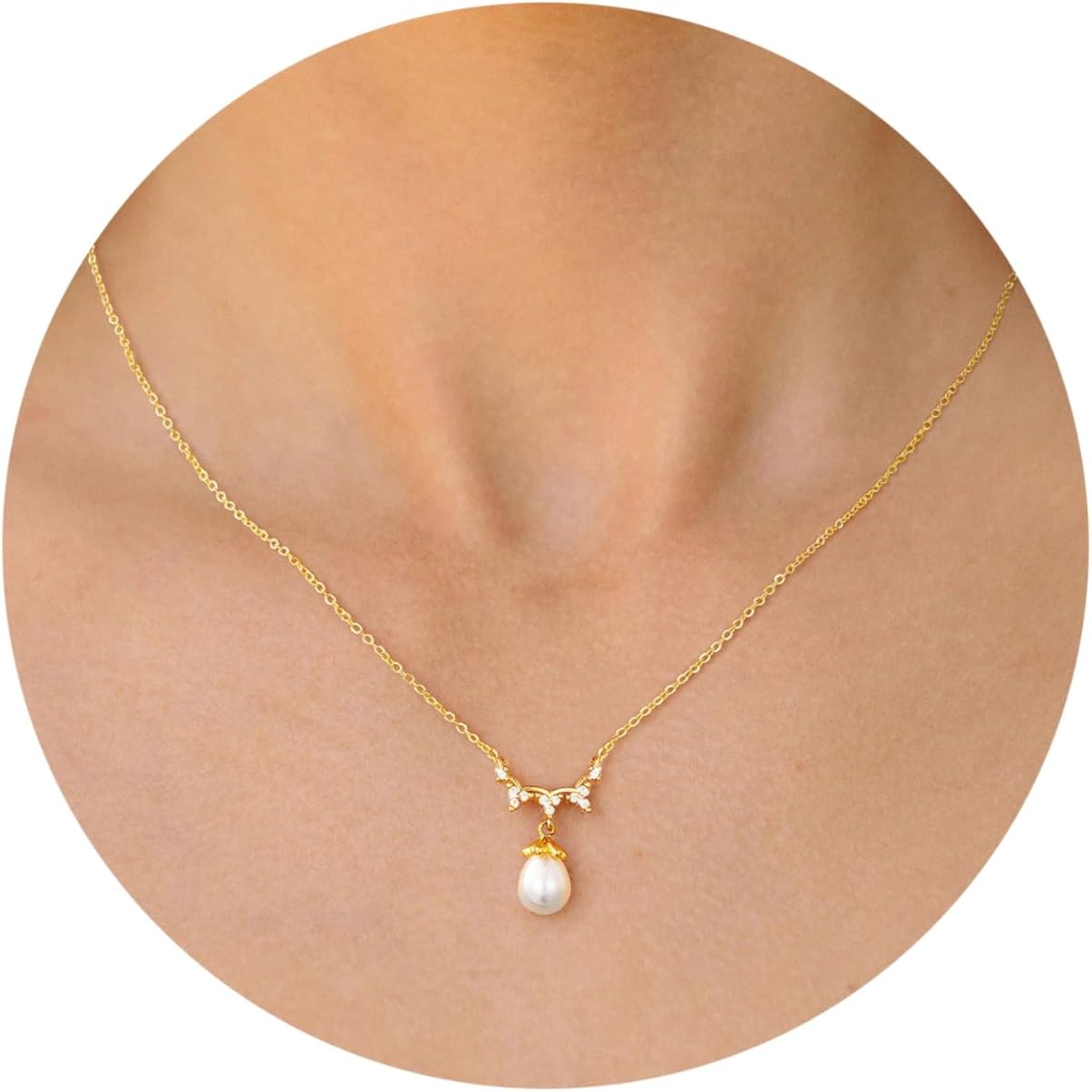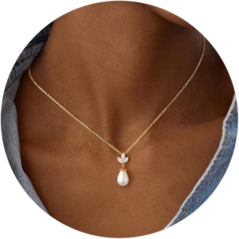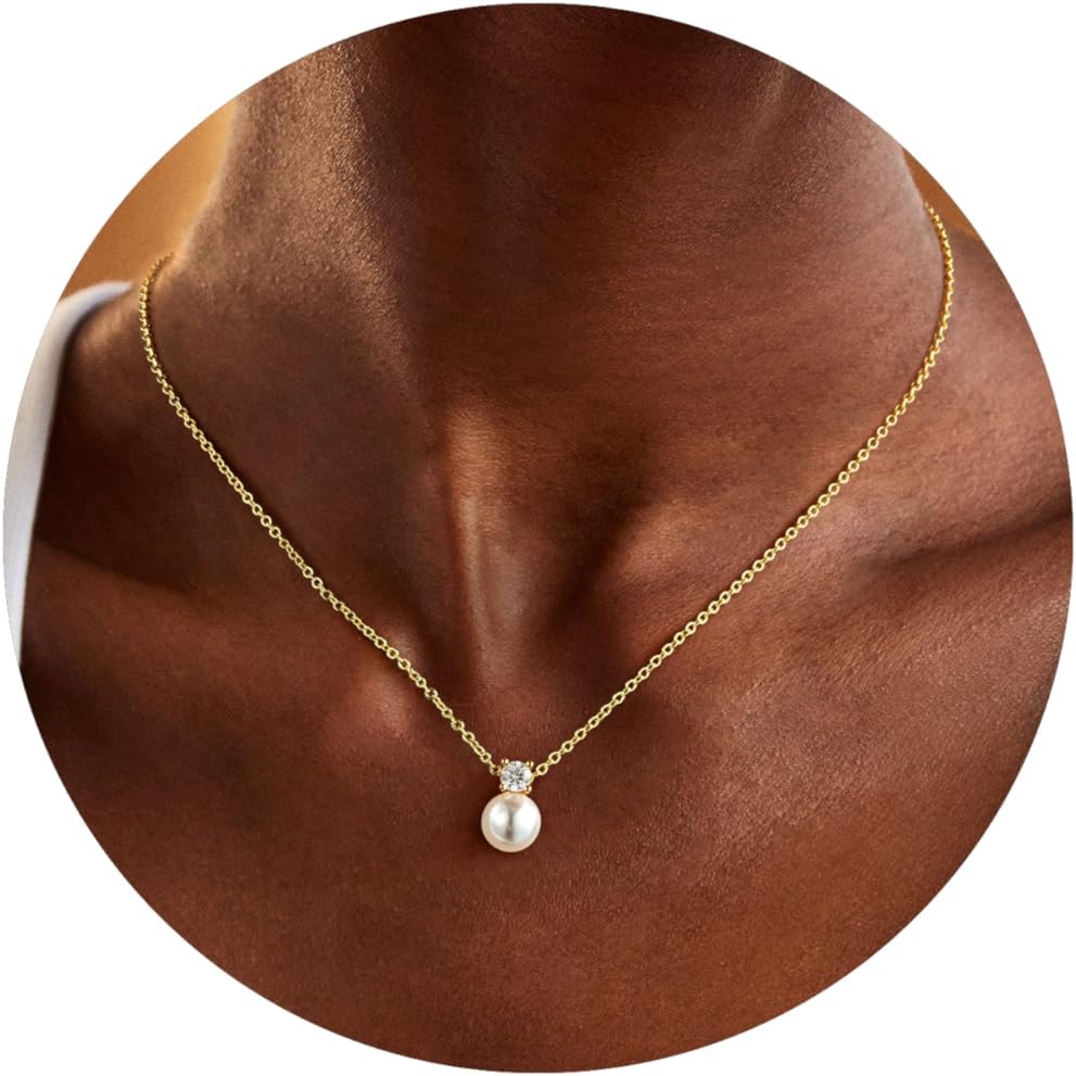 Turandoss Pearl Necklaces for Women - Dainty Gold Pearl Choker Pendant Necklace for Women Trendy Simple Elegant Gold Cubic Zirconia Bridal Wedding Necklace for Womens Jewelry Bridesmaid Proposal Gifts