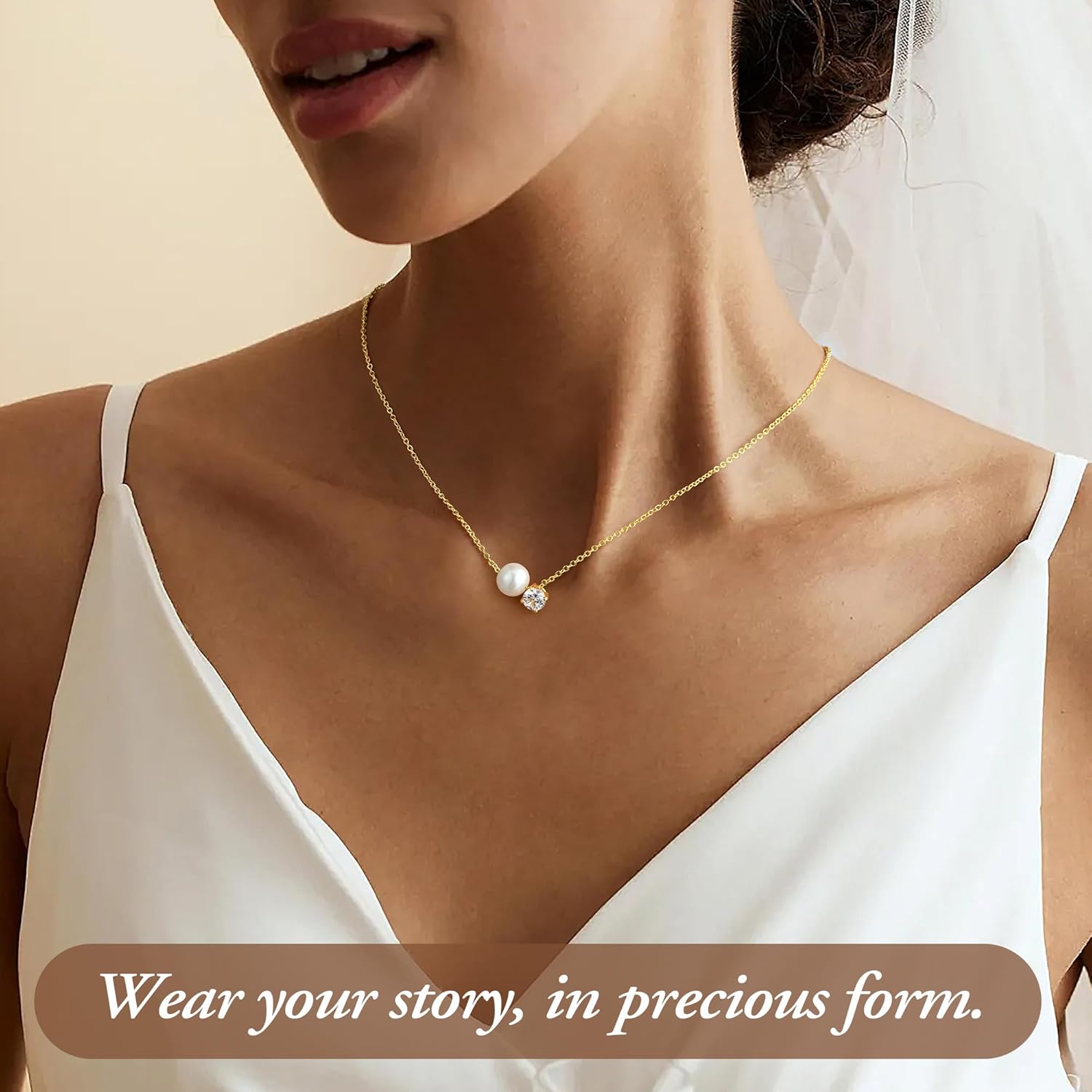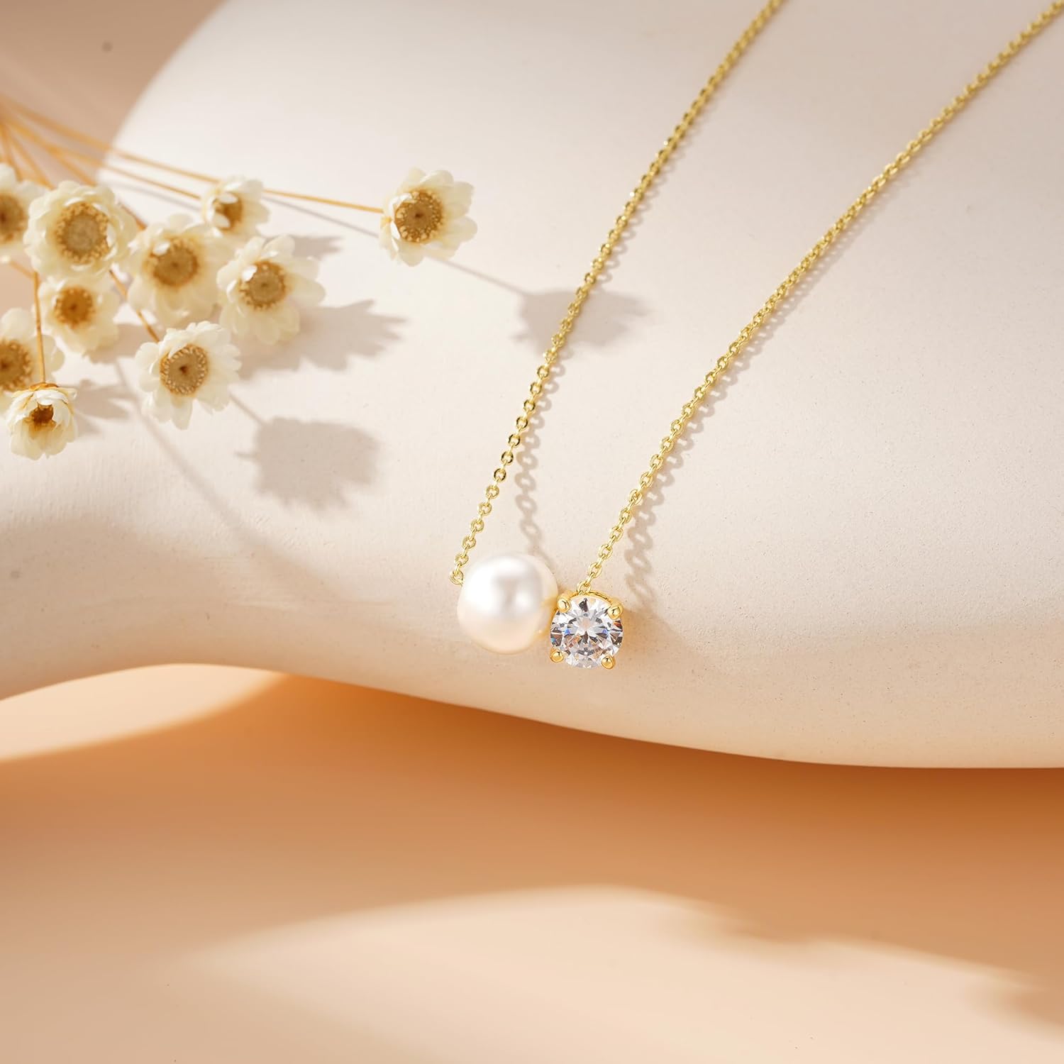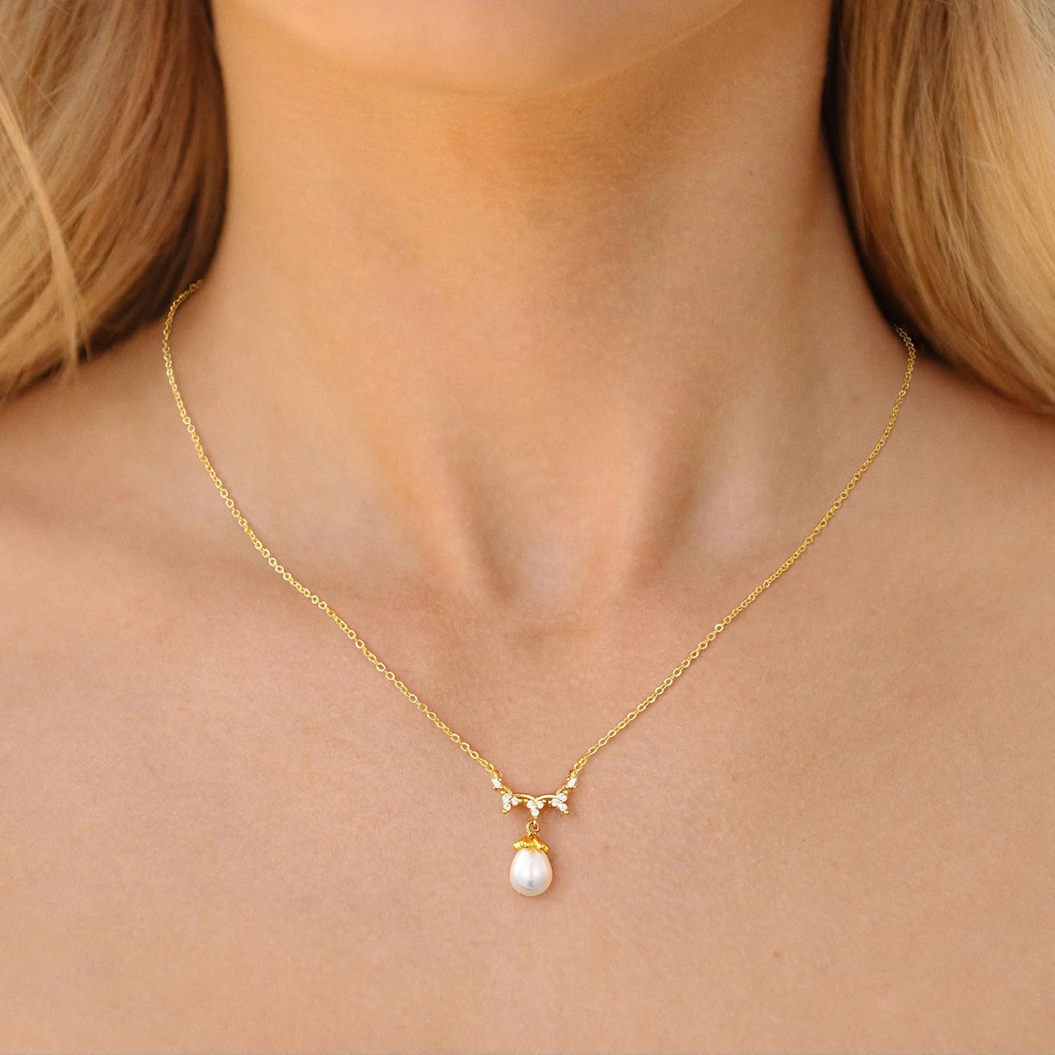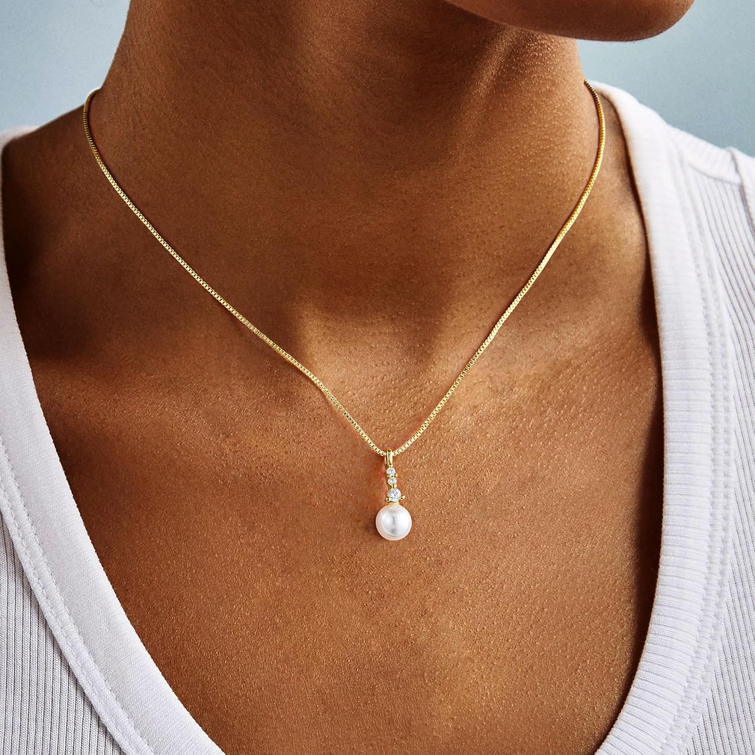 Turandoss Pearl Necklaces for Women - Dainty Gold Pearl Choker Pendant Necklace for Women Trendy Simple Elegant Gold Cubic Zirconia Bridal Wedding Necklace for Womens Jewelry Bridesmaid Proposal Gifts