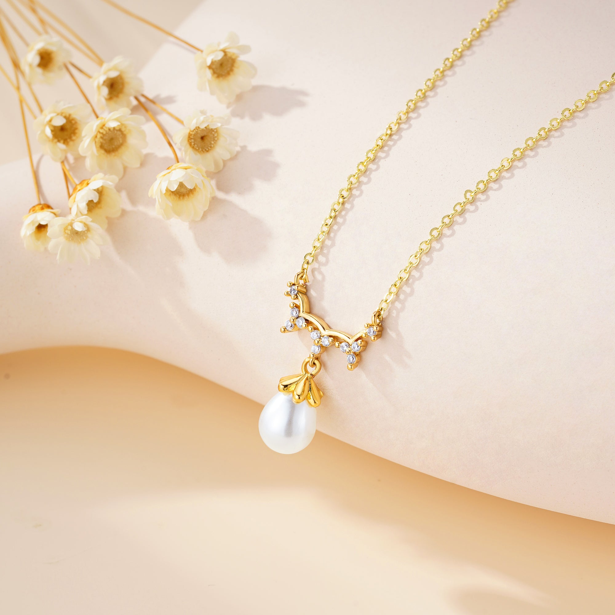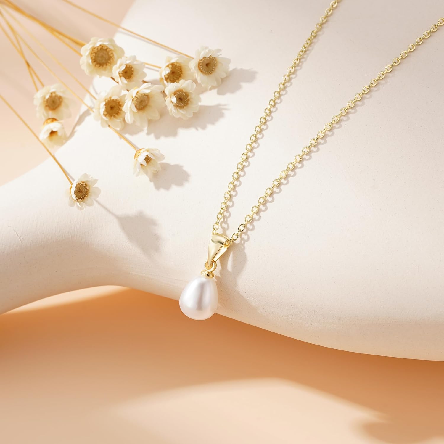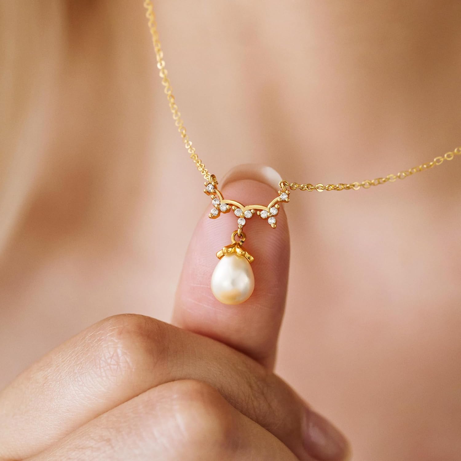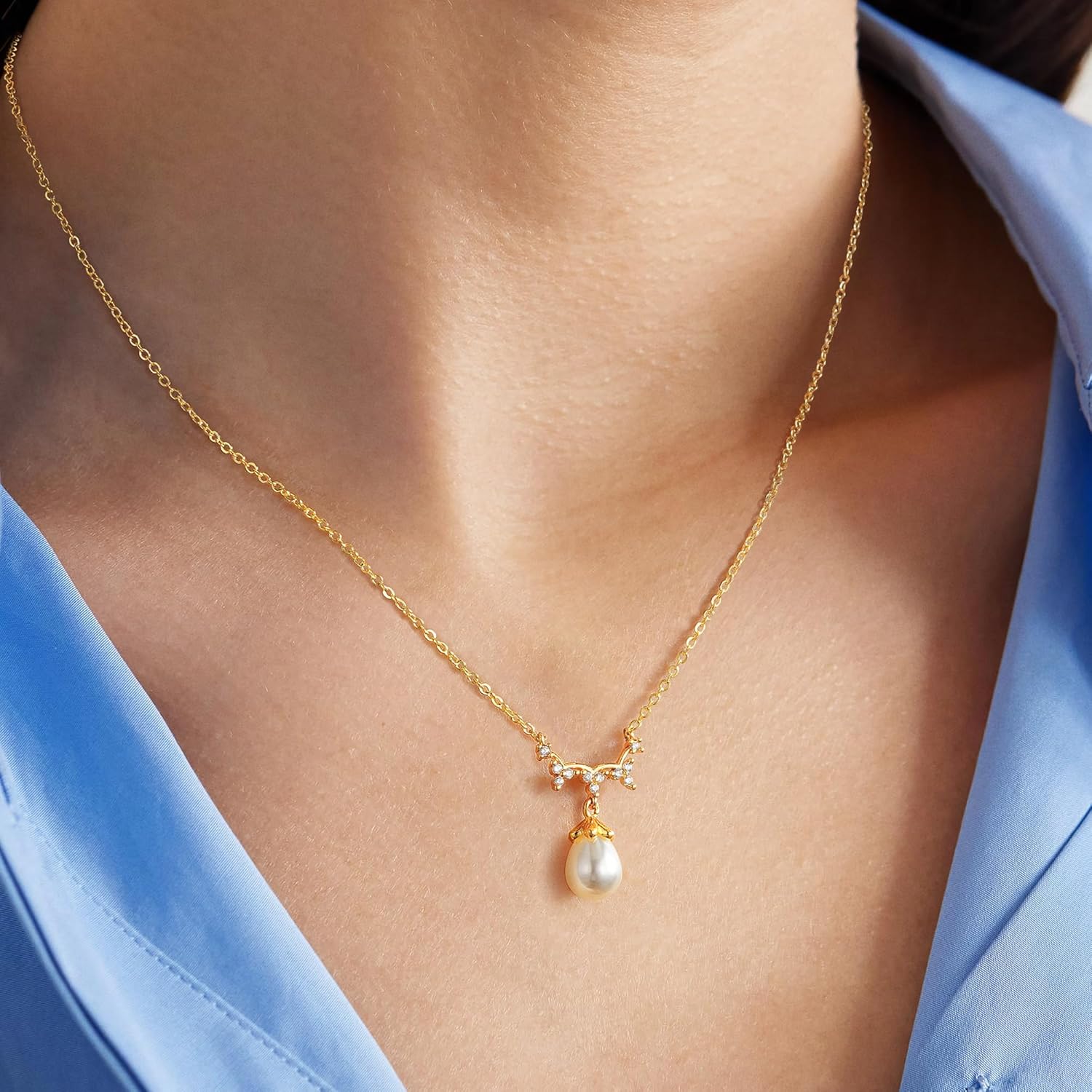 Turandoss Pearl Necklaces for Women - Dainty Gold Pearl Choker Pendant Necklace for Women Trendy Simple Elegant Gold Cubic Zirconia Bridal Wedding Necklace for Womens Jewelry Bridesmaid Proposal Gifts