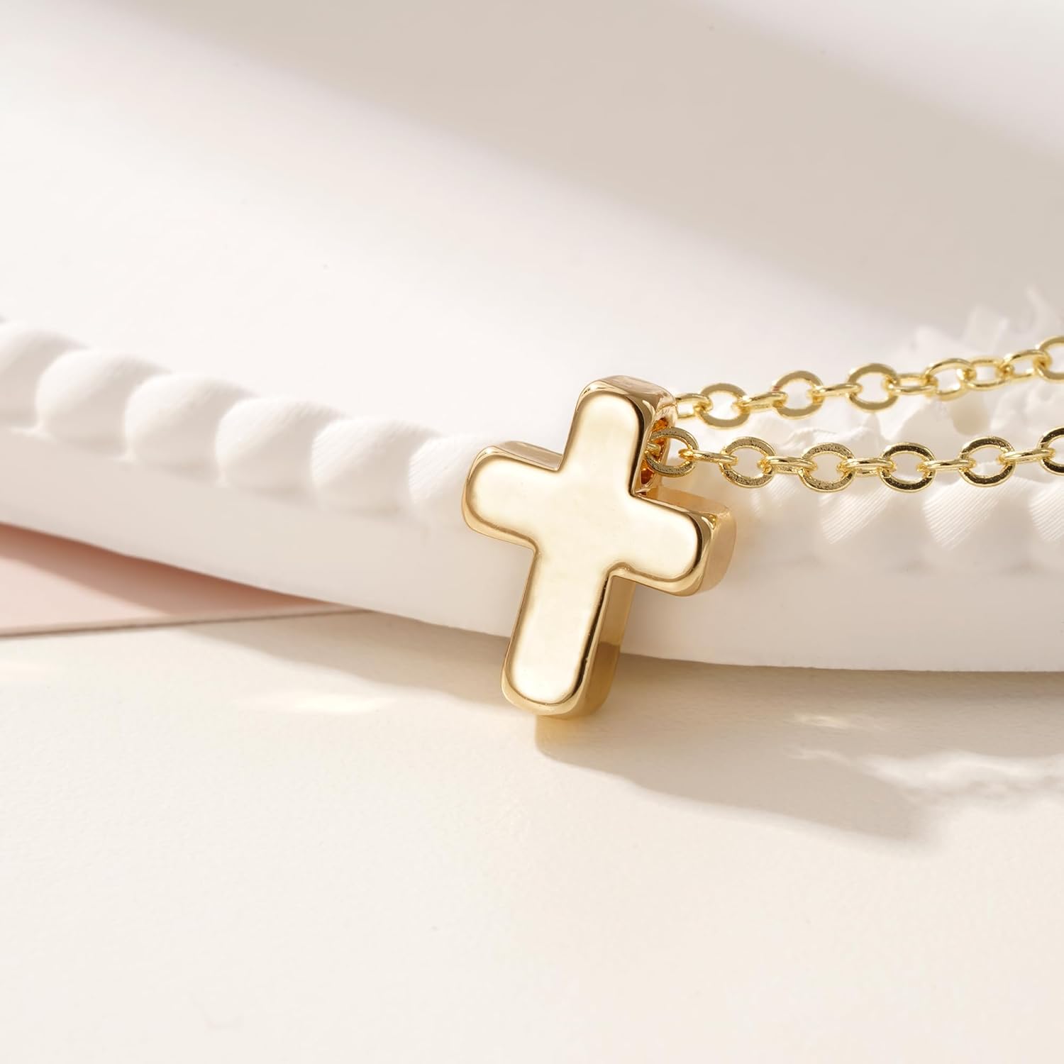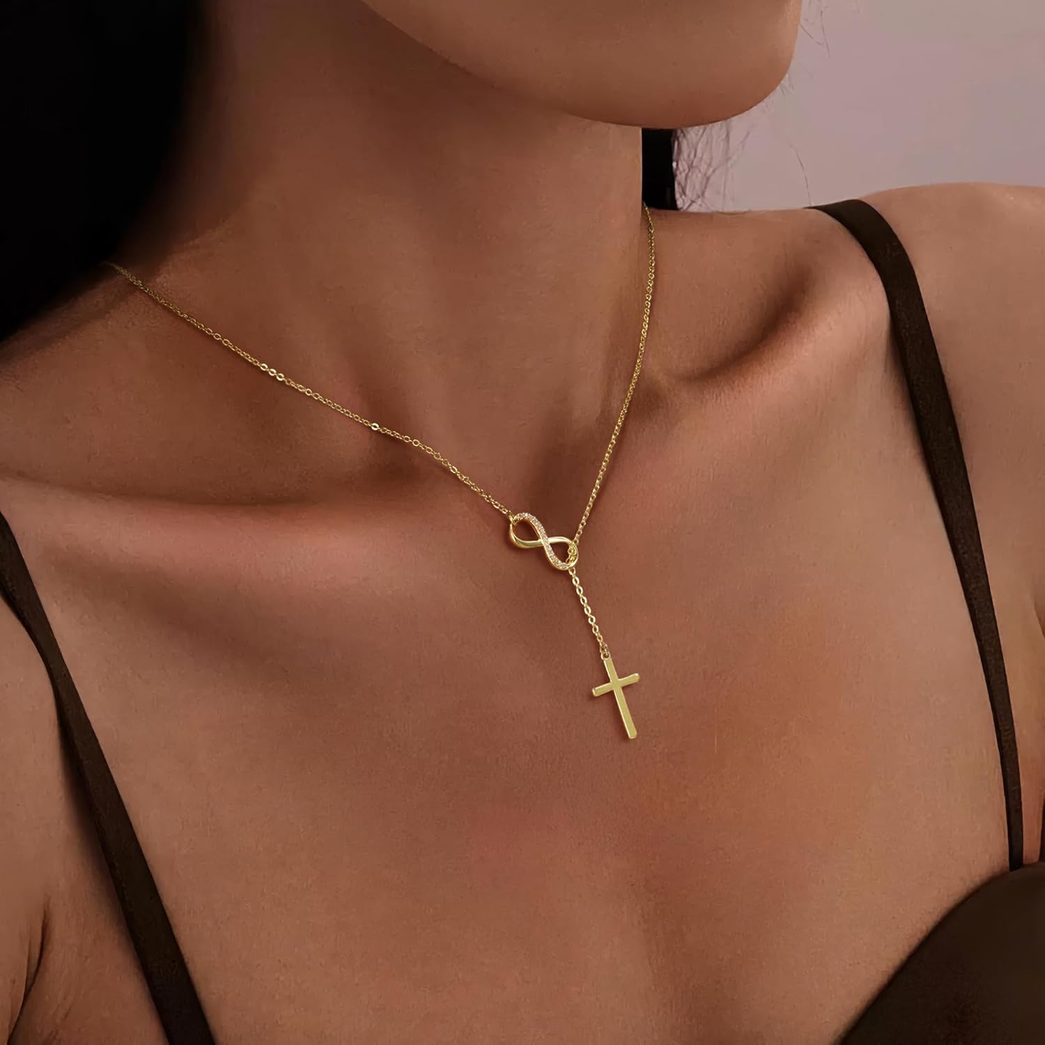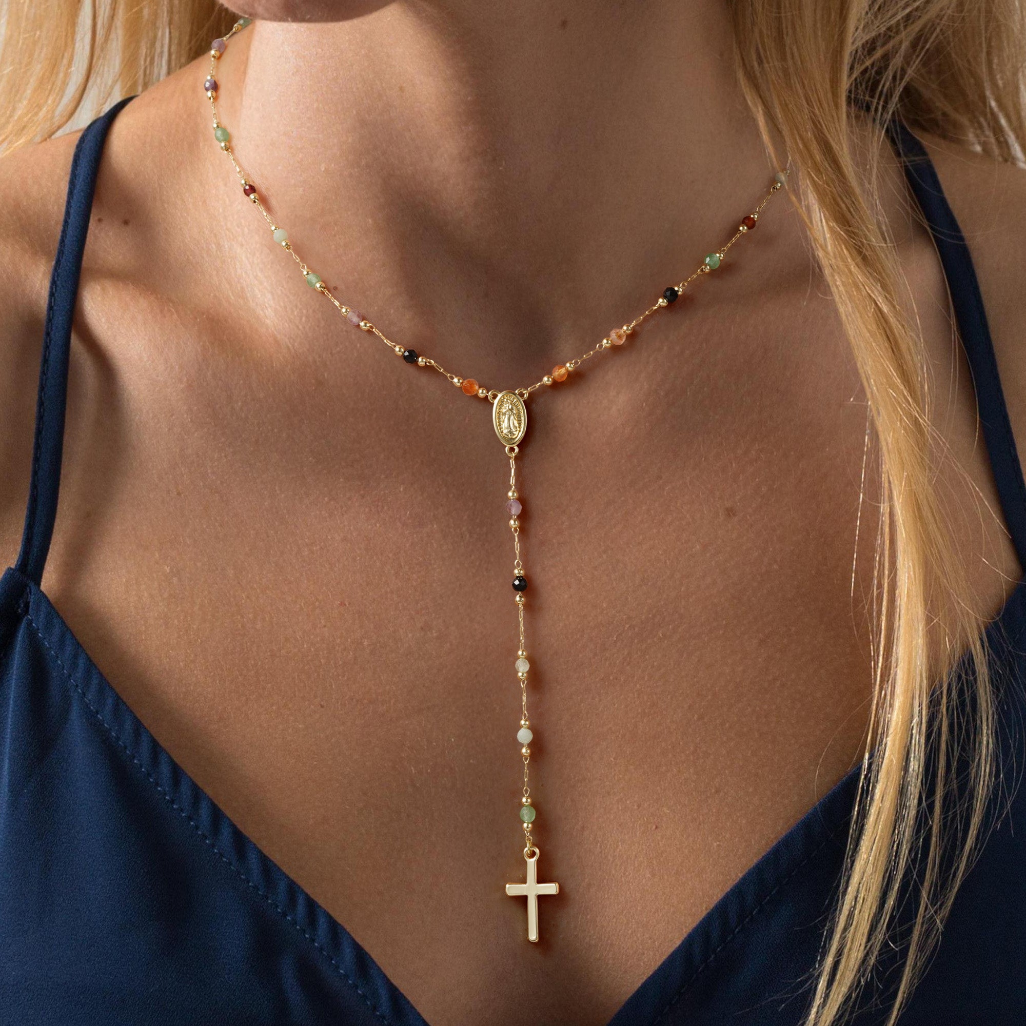 Turandoss 14K Gold Plated Cross Necklace for Women - Dainty 14K Gold Plated Plated Holy Mary Medal Cross Pendant Necklace Colorful Rosary Beaded Y Chain Necklaces for Women Baptism Gifts