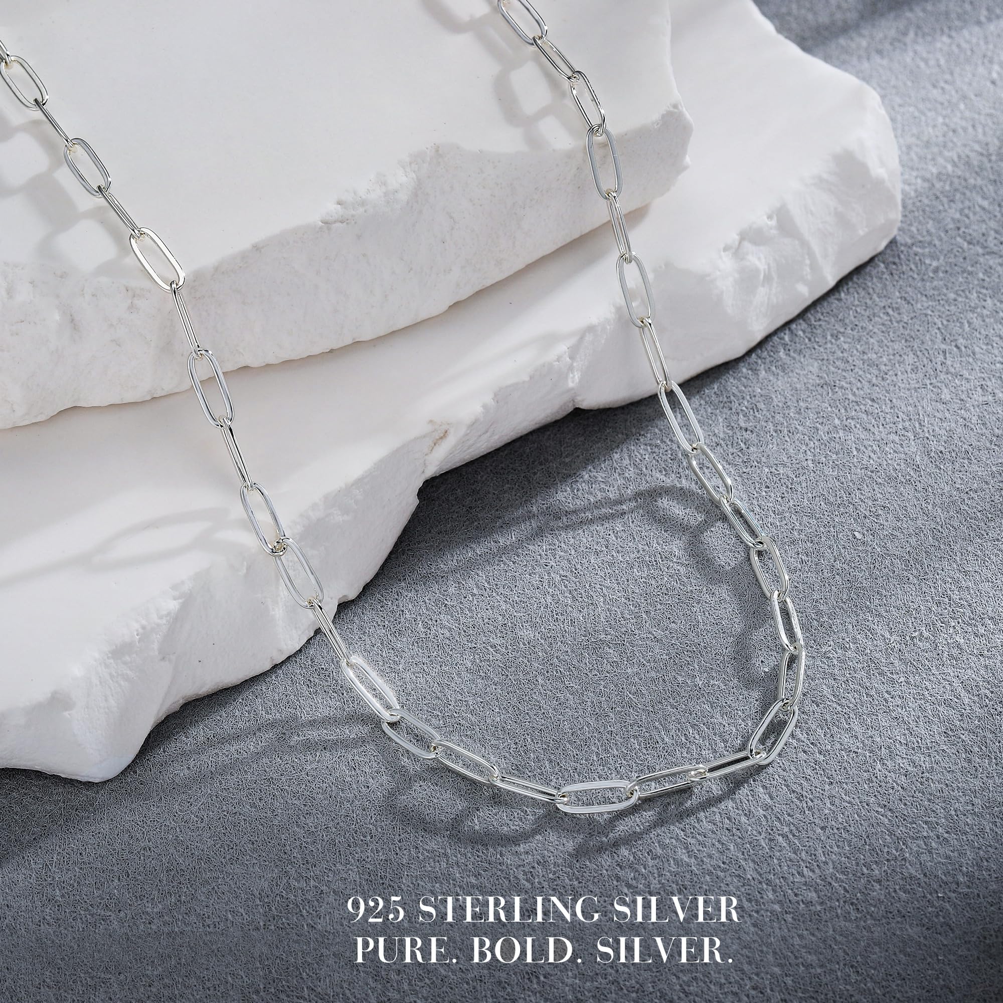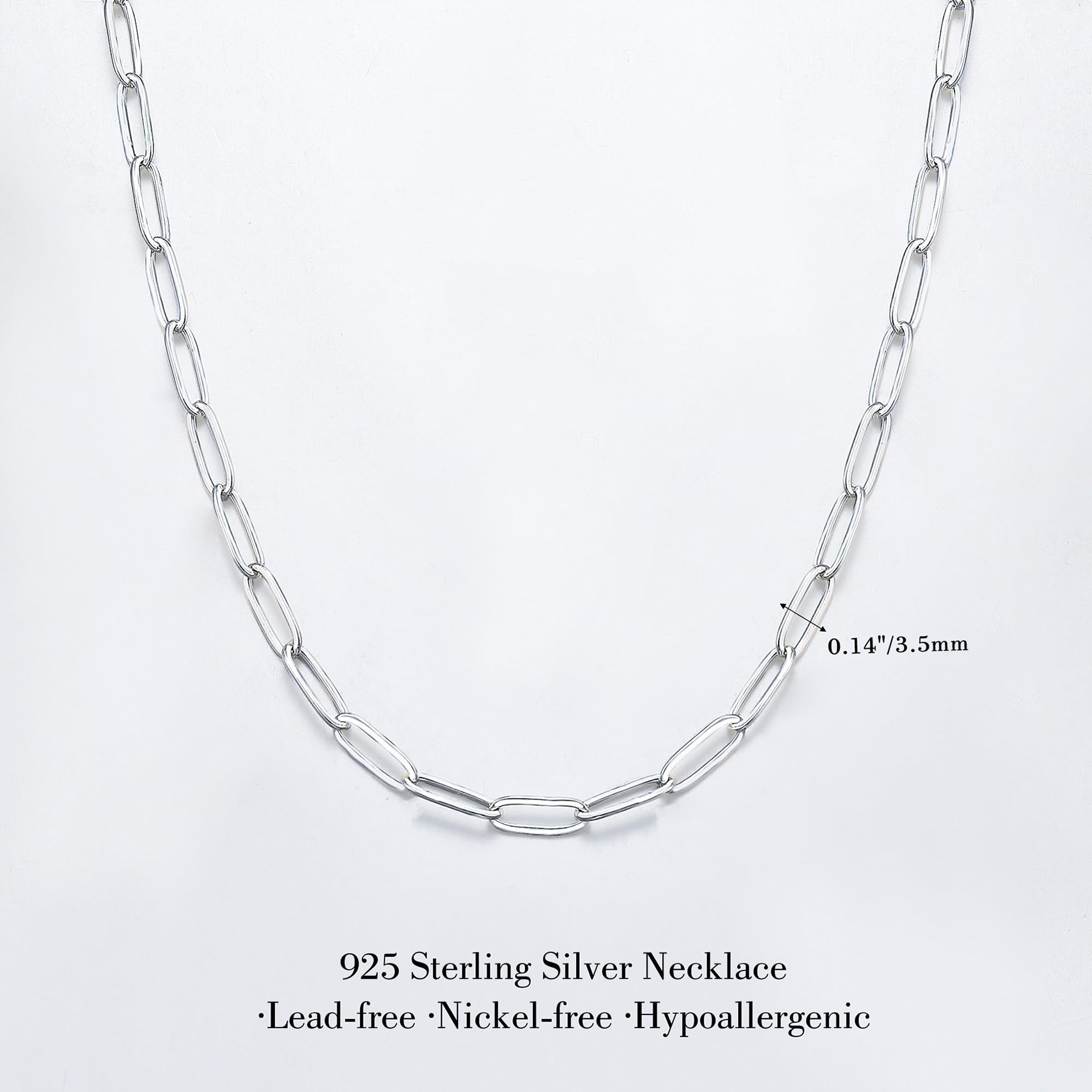 Turandoss Solid 925 Sterling Silver Chain Necklace for Women Men - 3.5Mm Sterling Silver Paperclip Necklace for Women Hypoallergenic Soft Sturdy Necklaces 16 18 20 22 24 Inches Jewelry Gifts for Her