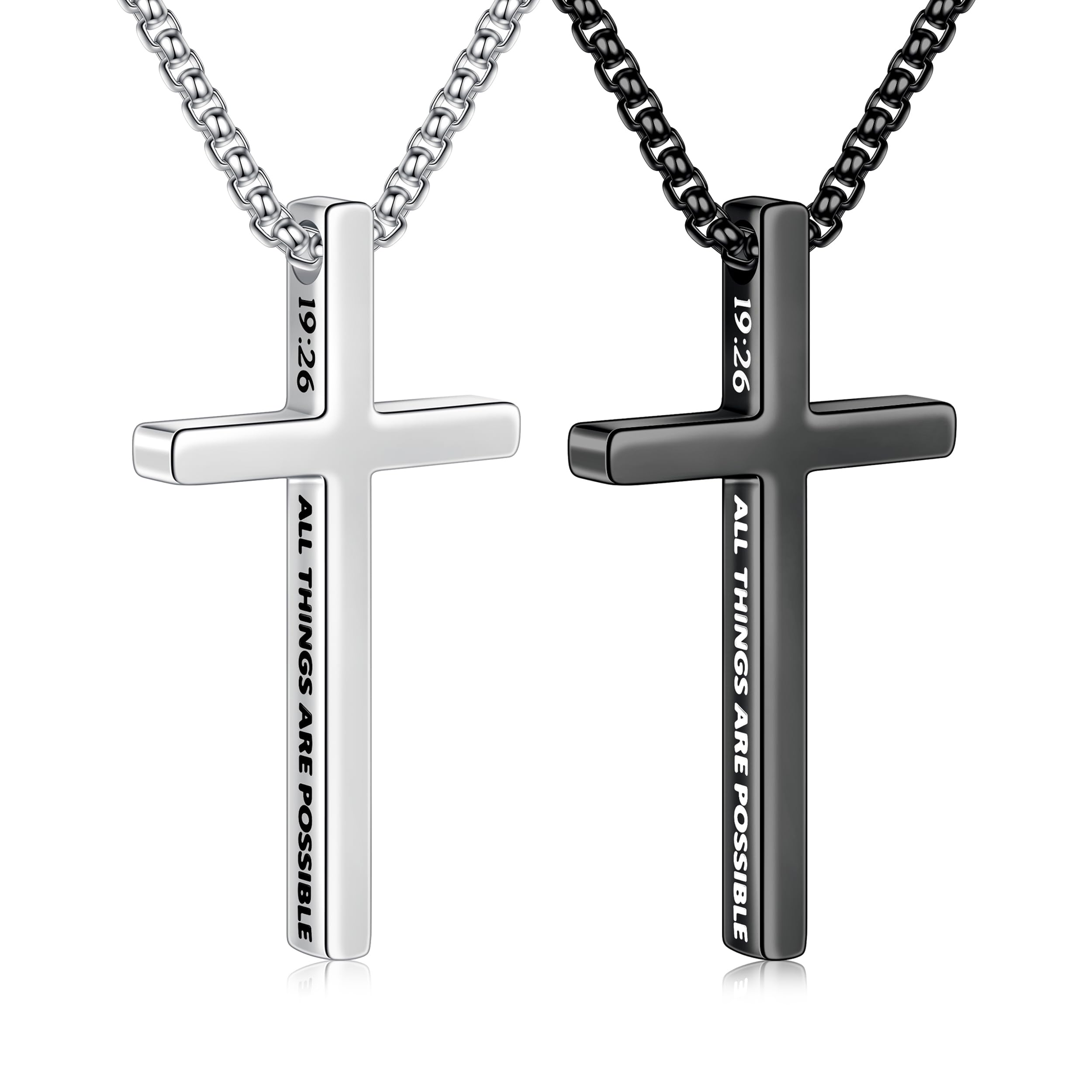 Turandoss 2 Pcs Black Silver Cross Necklace for Men - Inspirational Bible Verse Cross Chain for Men Stainless Steel Cross Pendant Necklace for Men Christmas Gifts, Box Chain 18-24 Inch