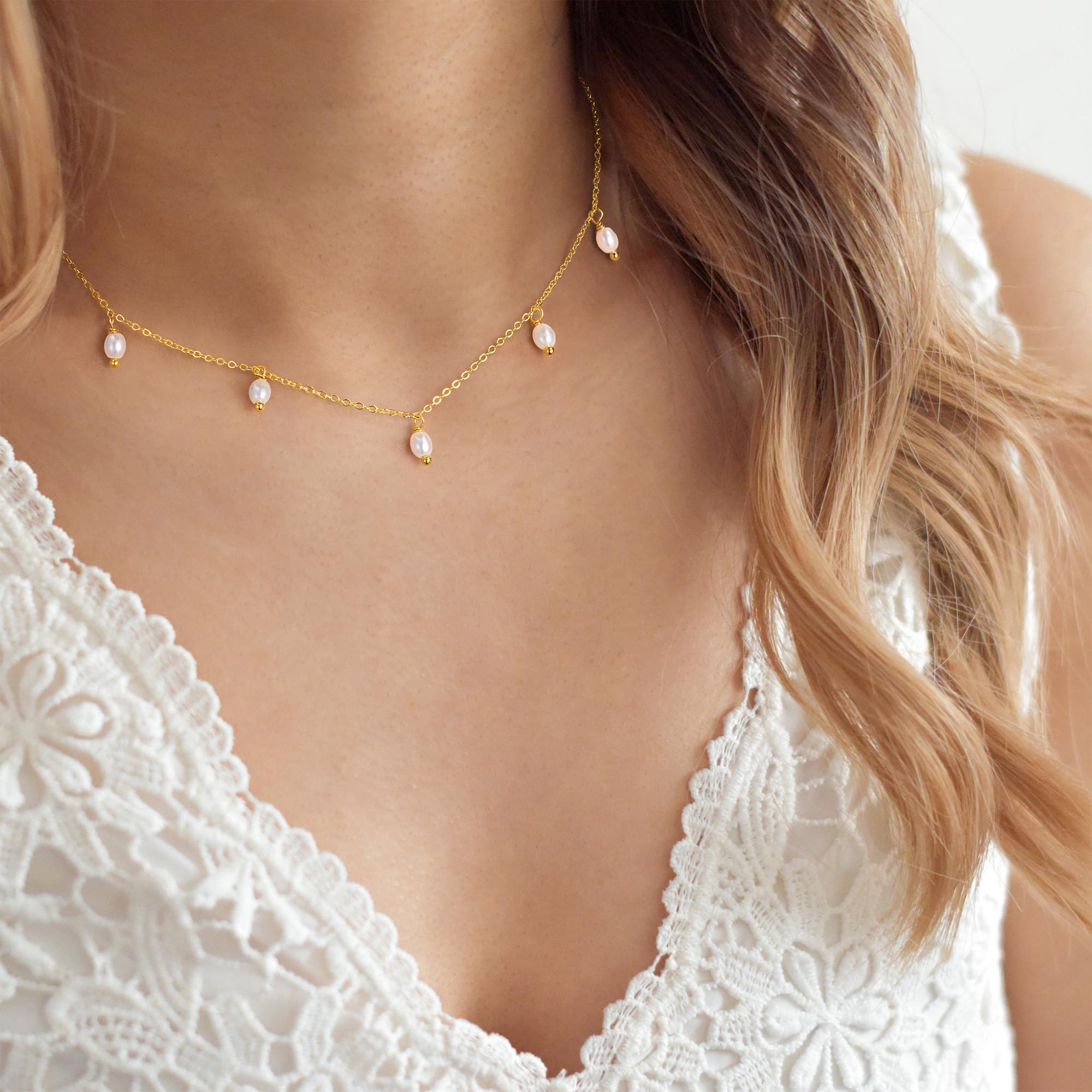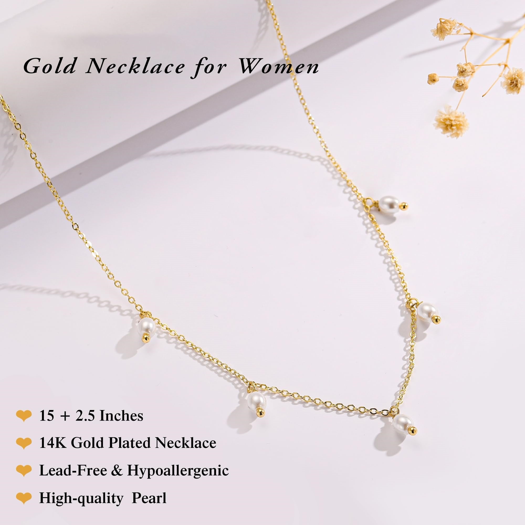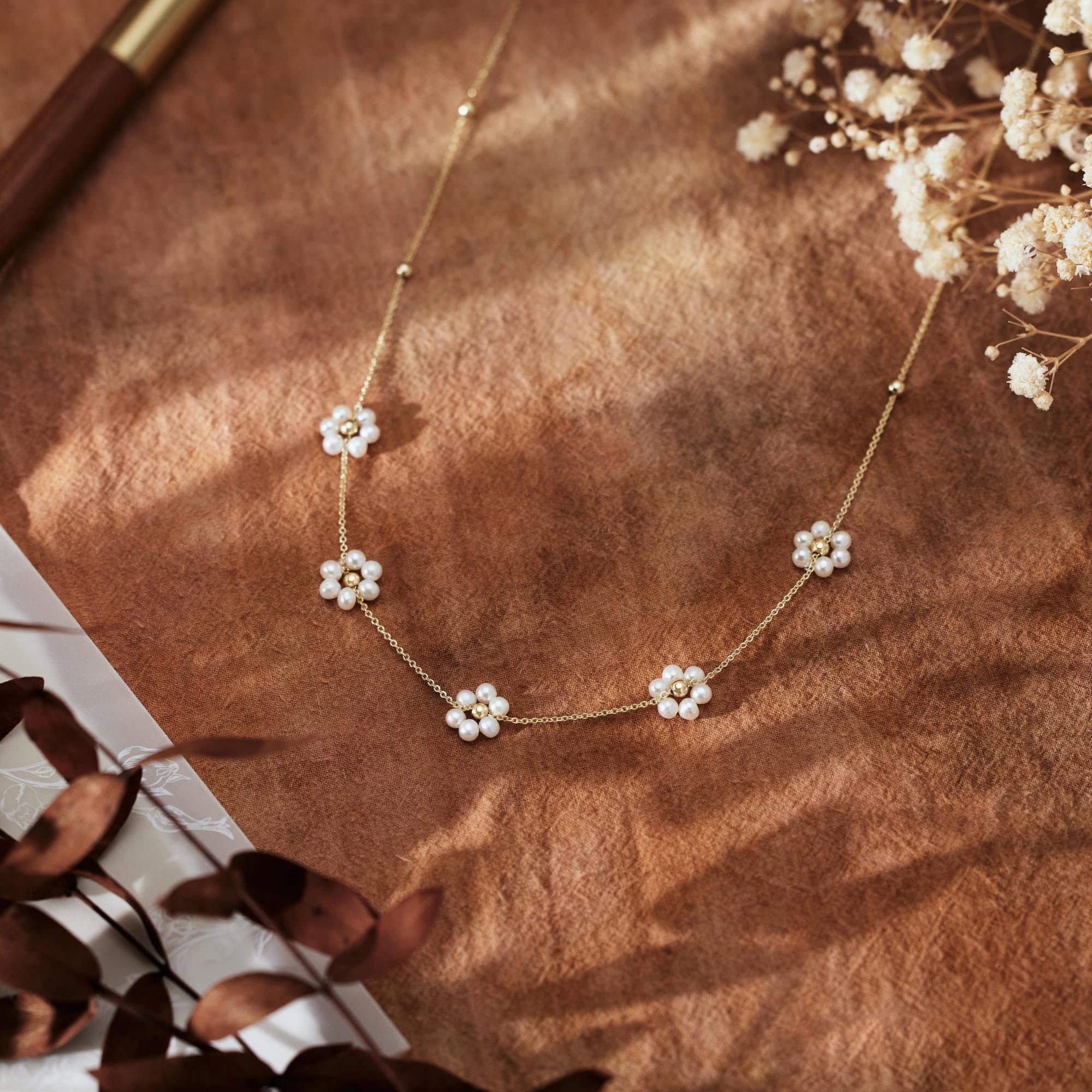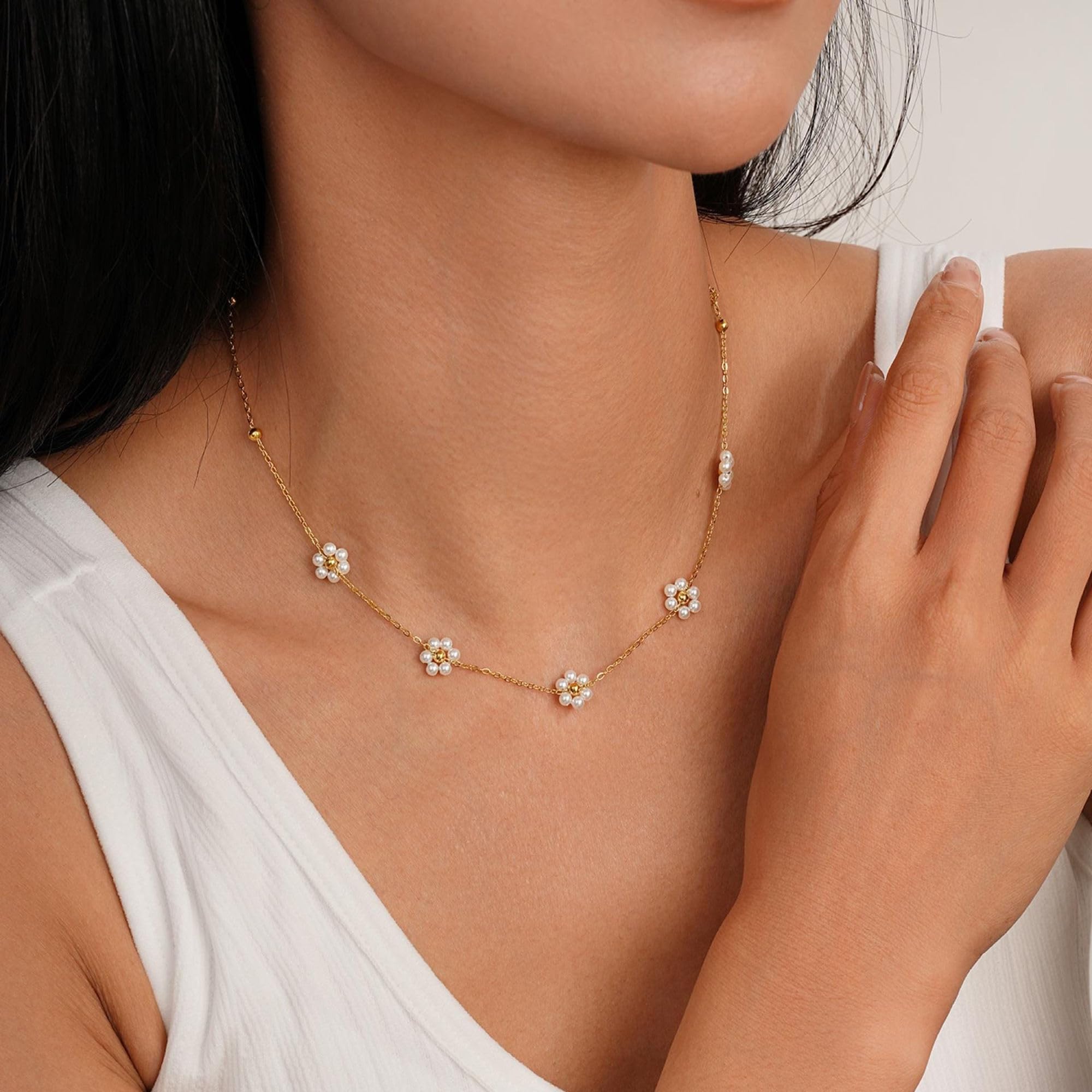 Turandoss 14K Gold Plated Pearl Daisy Pearl Choker Necklace for Women, Dainty Charm Necklace for Women Teen Girl Gifts Daisy Necklaces Station Gift for Teenage Teen Girl Christmas Gifts Trendy Stuff