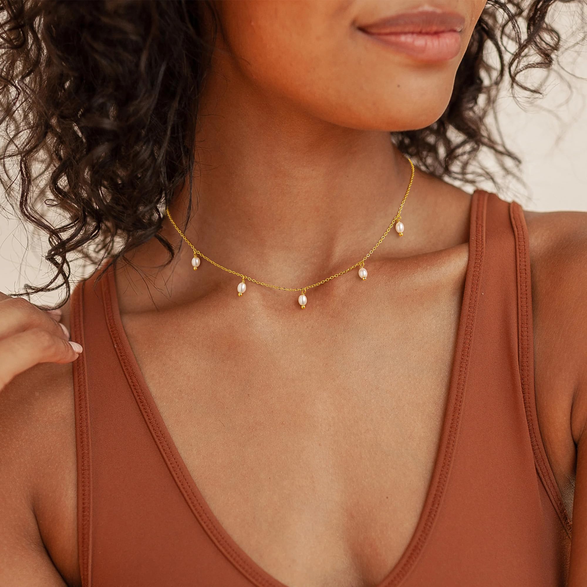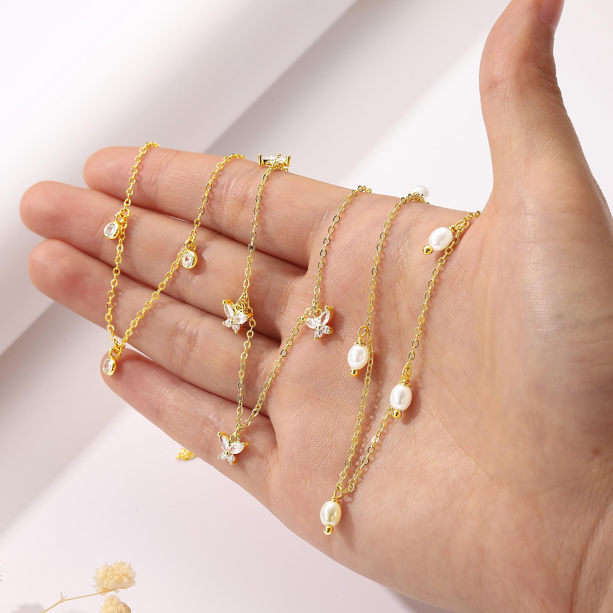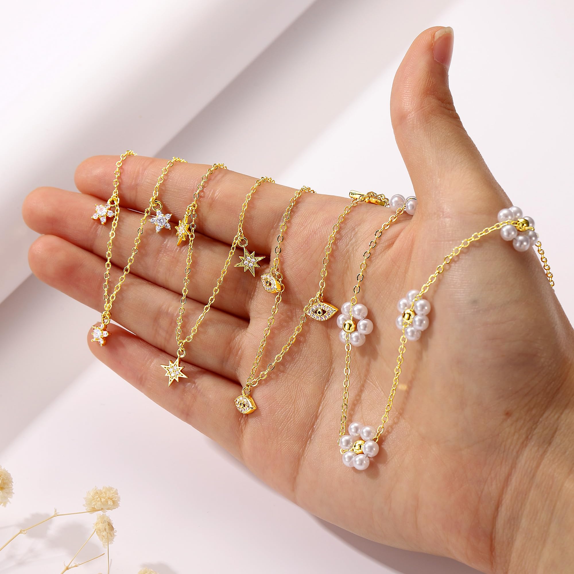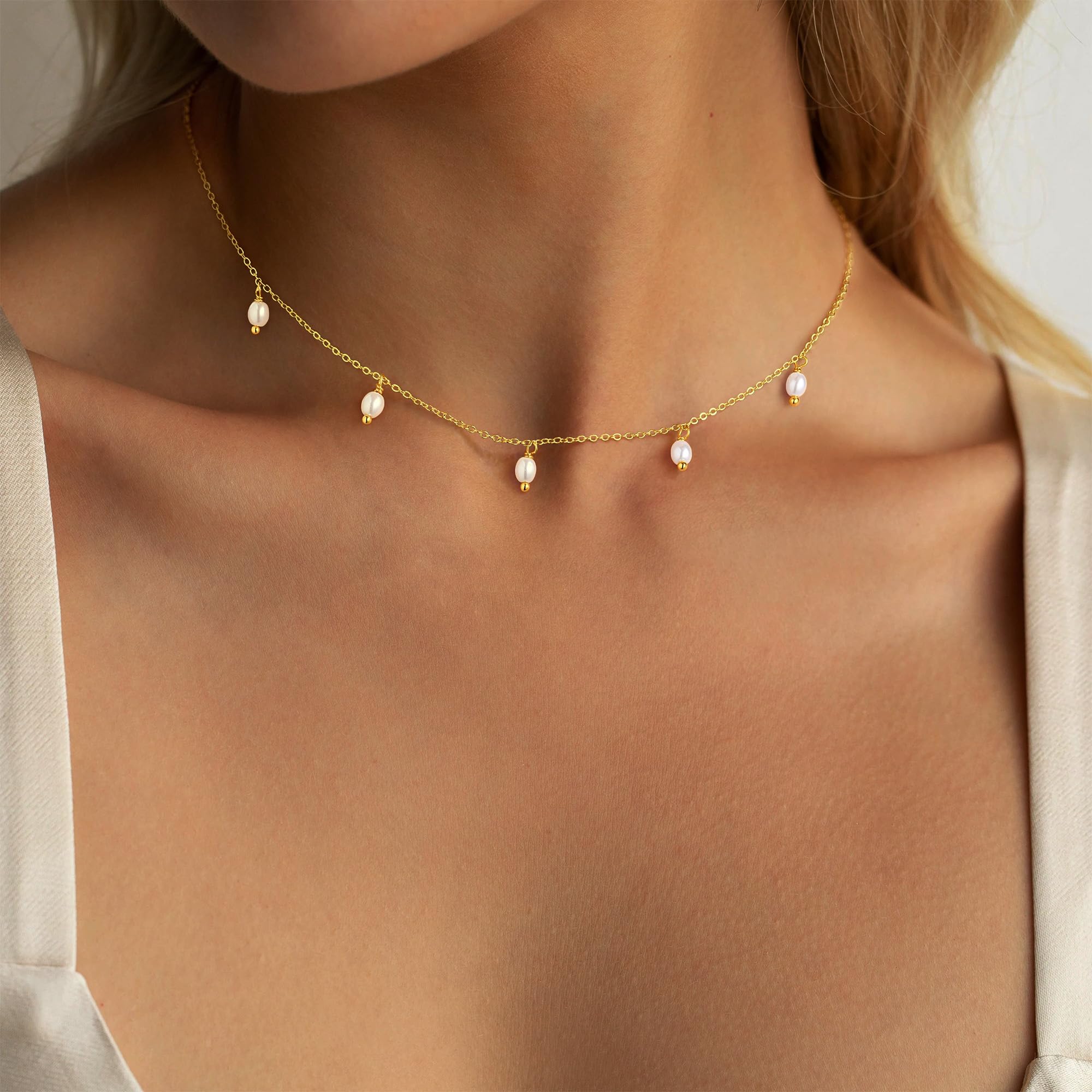 Turandoss 14K Gold Plated Pearl Daisy Pearl Choker Necklace for Women, Dainty Charm Necklace for Women Teen Girl Gifts Daisy Necklaces Station Gift for Teenage Teen Girl Christmas Gifts Trendy Stuff