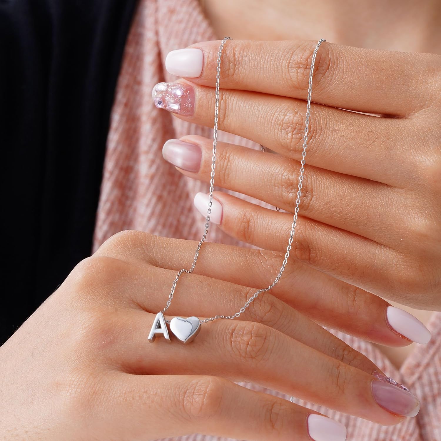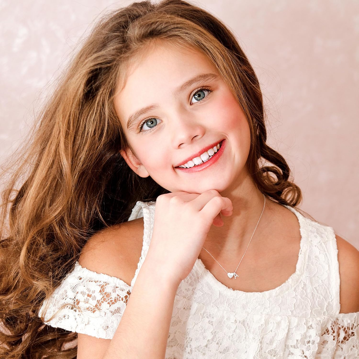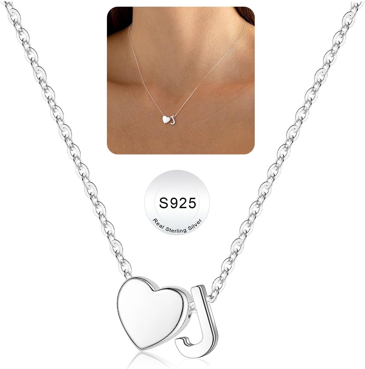 Turandoss Silver Heart Necklaces for Girls Trendy, S925 Sterling Silver Tiny Heart Initial A Necklace Dainty Heart Birthday Friendship Gifts for 5 6 7 8 9 10 Years Old Girls Jewelry