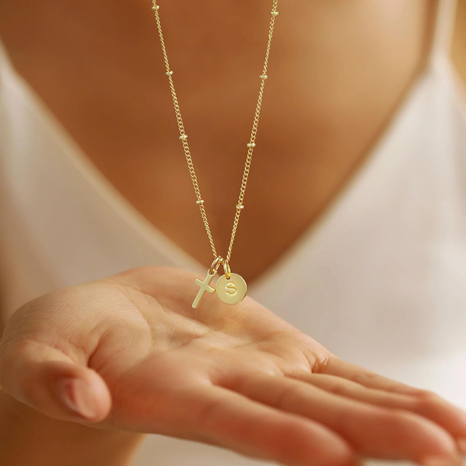 Turandoss 14K Gold Plated Cross Initial Disc Necklace for Women Girls - Dainty Letter A-Z Coin In Pendant Jewelry Cute Stuff for Teen Girls, Personalized Christian Gifts for Women Girls
