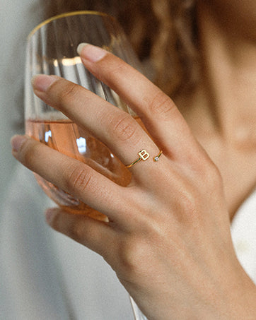 This stylish open letter ring is crafted from copper and features a unique design. The ring boasts a 14K gold and swimming pool color combination. The prominent letter, measuring 6mm in height and 1.5mm in thickness, sits atop the band. Below the letter, a single 2.5mm round white zircon adds a touch of sparkle. This eye-catching ring is a perfect accessory for adding a touch of elegance to any outfit. The combination of the copper metal and the zircon creates a sophisticated and modern look. The design is simple yet elegant, making it a versatile piece for everyday wear or special occasions. The ring's comfortable fit and durable construction ensure long-lasting wear.